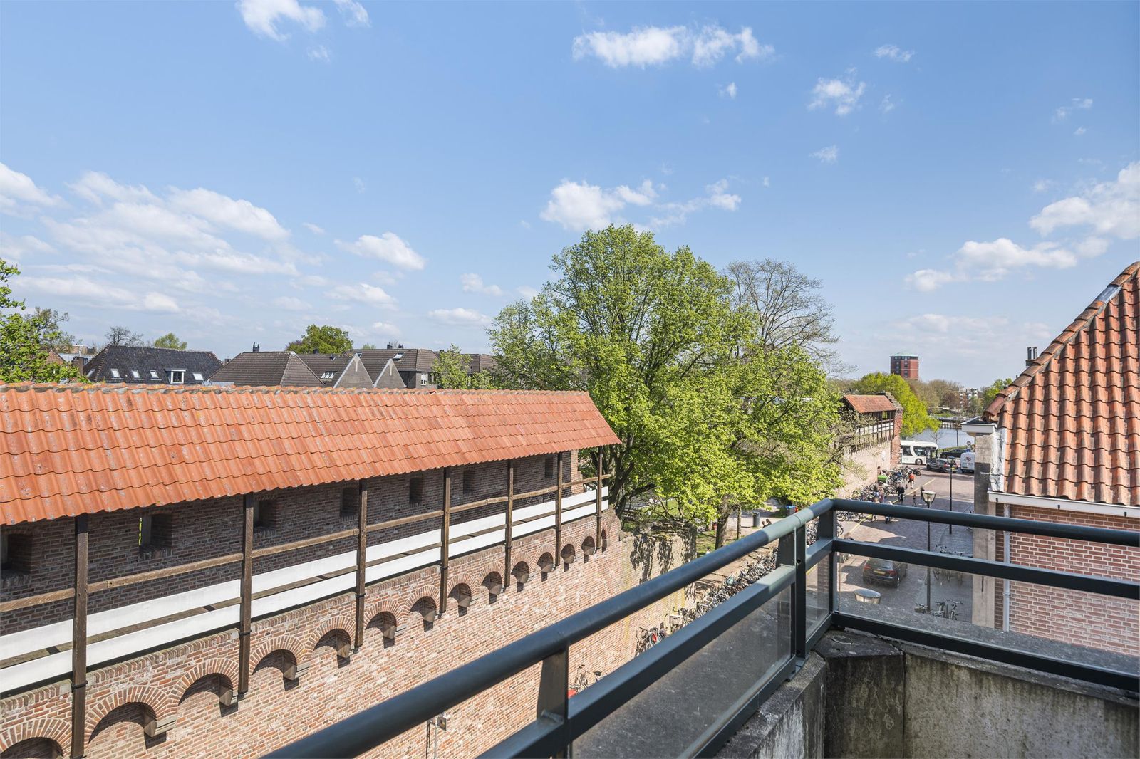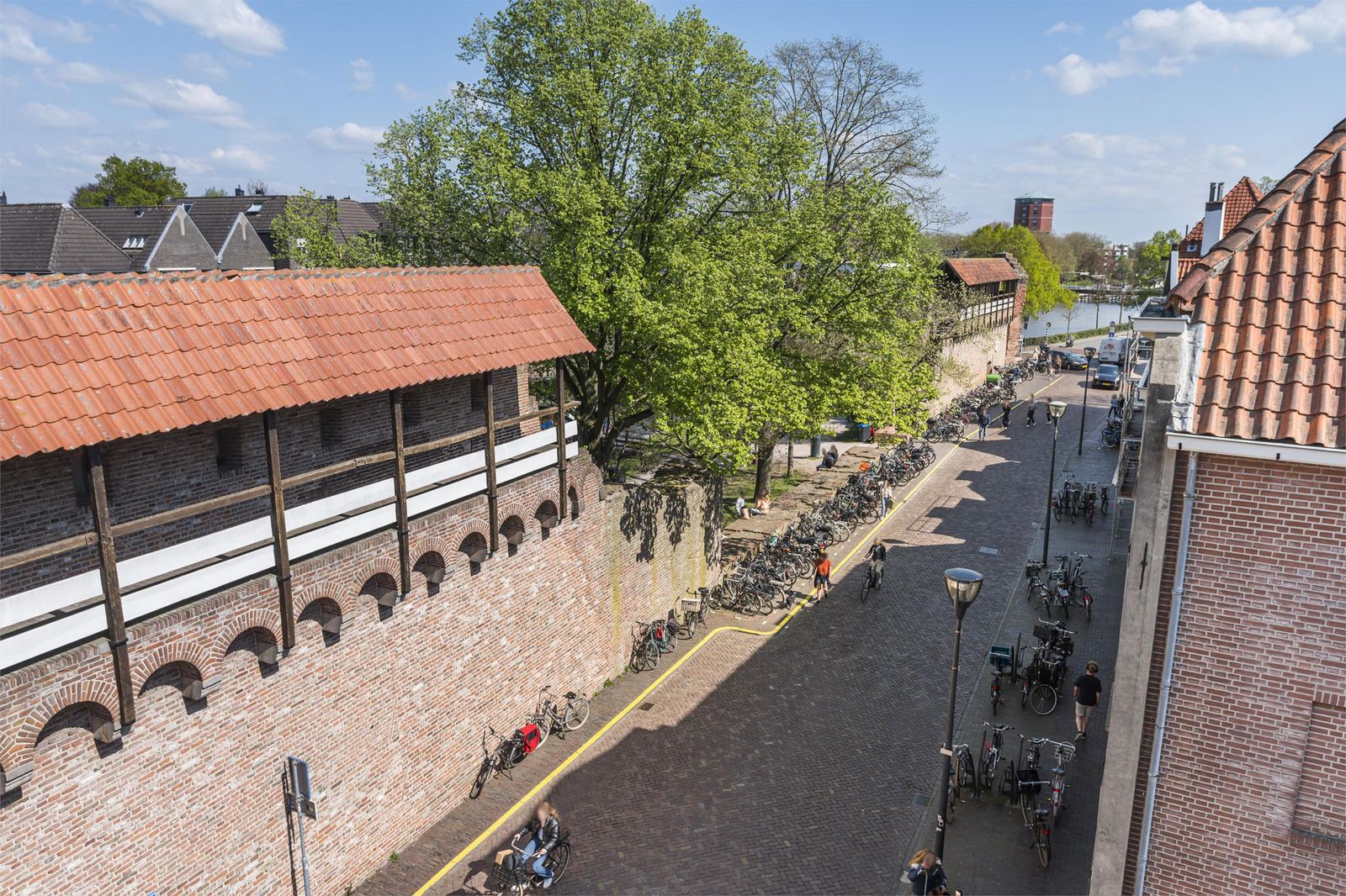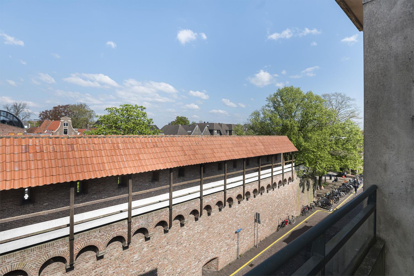 Bij binnenkomst valt meteen de royale woonkamer op, met grote ramen die zorgen voor veel natuurlijk licht en een fraai uitzicht op de karakteristieke stadsmuur. De moderne open keuken sluit hier naadloos op aan en is van alle gemakken voorzien – ideaal voor gezellige diners of borrels met vrienden.