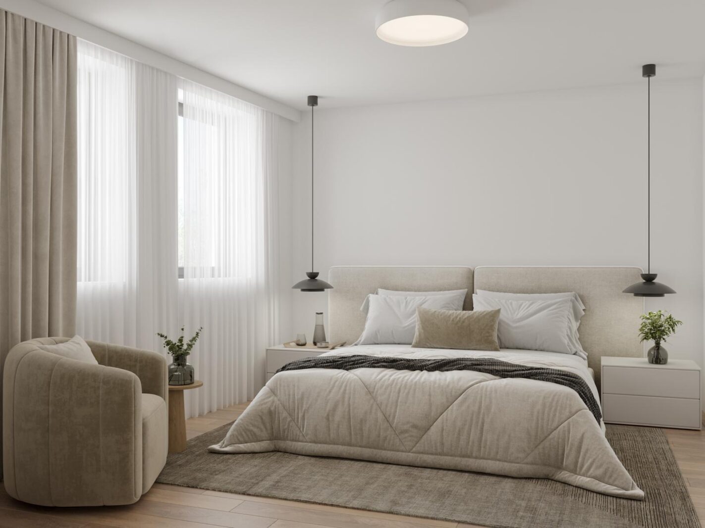 - Ruime slaapkamers en moderne badkamer: Twee comfortabele slaapkamers en een badkamer met inloopdouche, wastafelmeubel en designradiator.