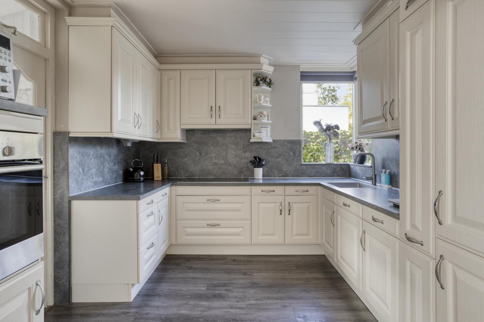 De uitgebouwde woonkamer heeft prettig ruime afmetingen en een open verbinding met de keuken.