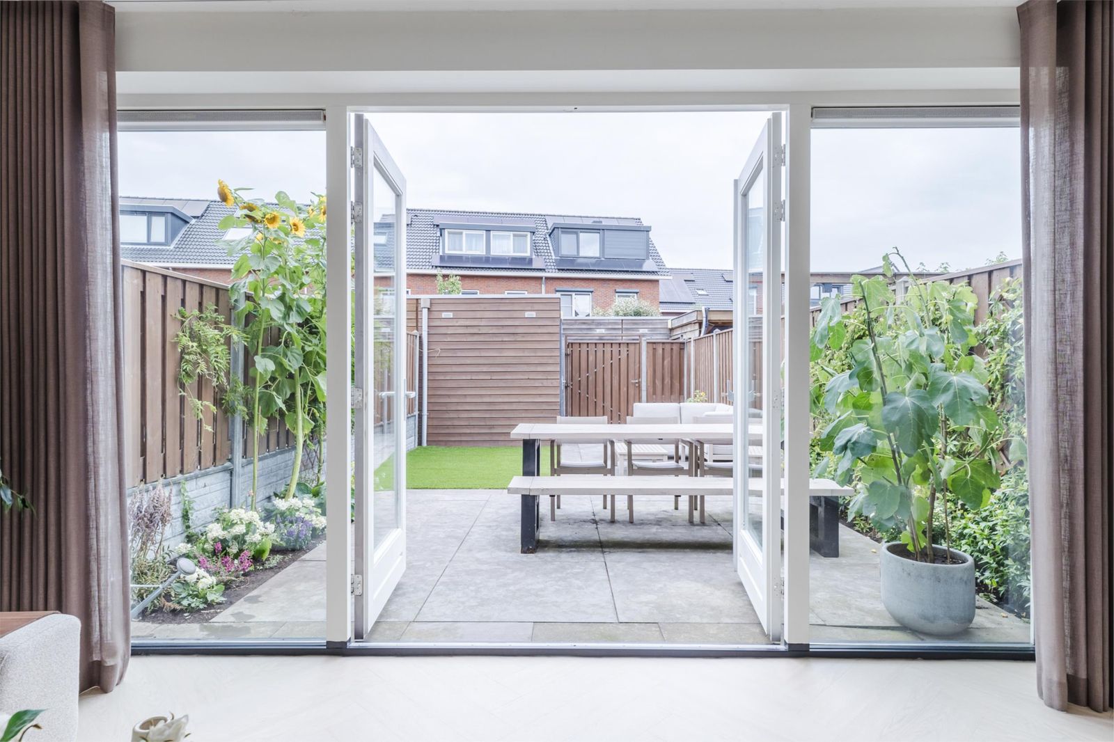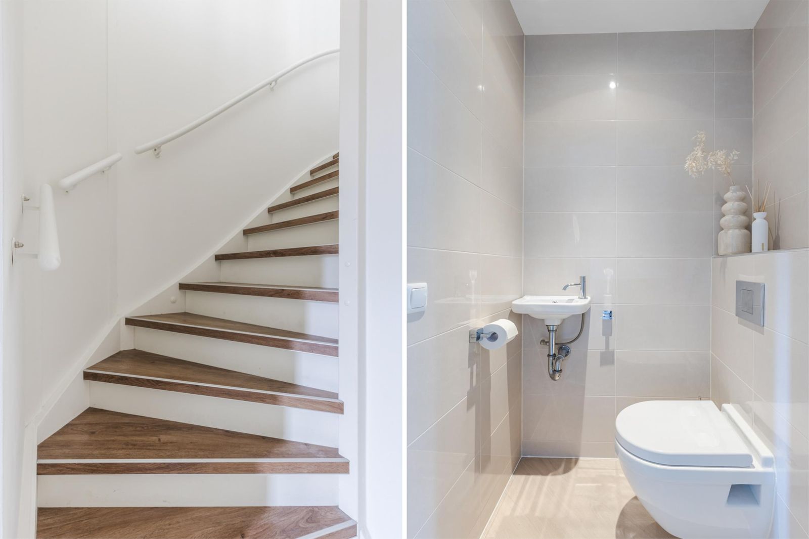 Via de voortuin bereikt u de entree. De hal geeft toegang tot het separate toilet en de ruime woonkamer. De tuingerichte woonkamer biedt volop ruimte voor een royale zithoek en heeft een prettige lichtinval door de grote raampartijen aan de achterzijde. De moderne open keuken aan de voorzijde is uitgerust met diverse nieuwe inbouwapparatuur (2024) en biedt uitzicht op de straat. Vanuit de woonkamer heeft u directe toegang tot de diepe achtertuin.