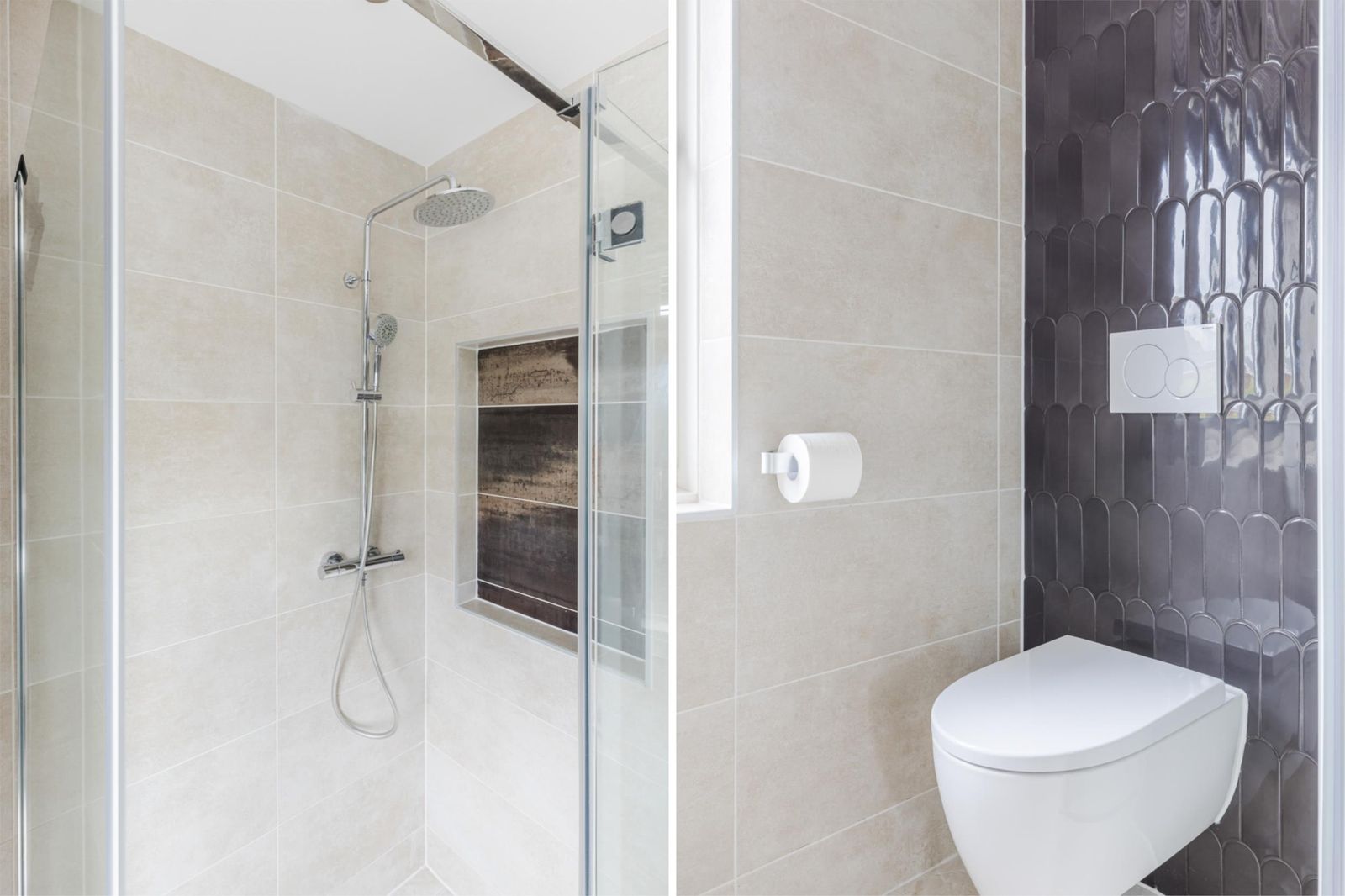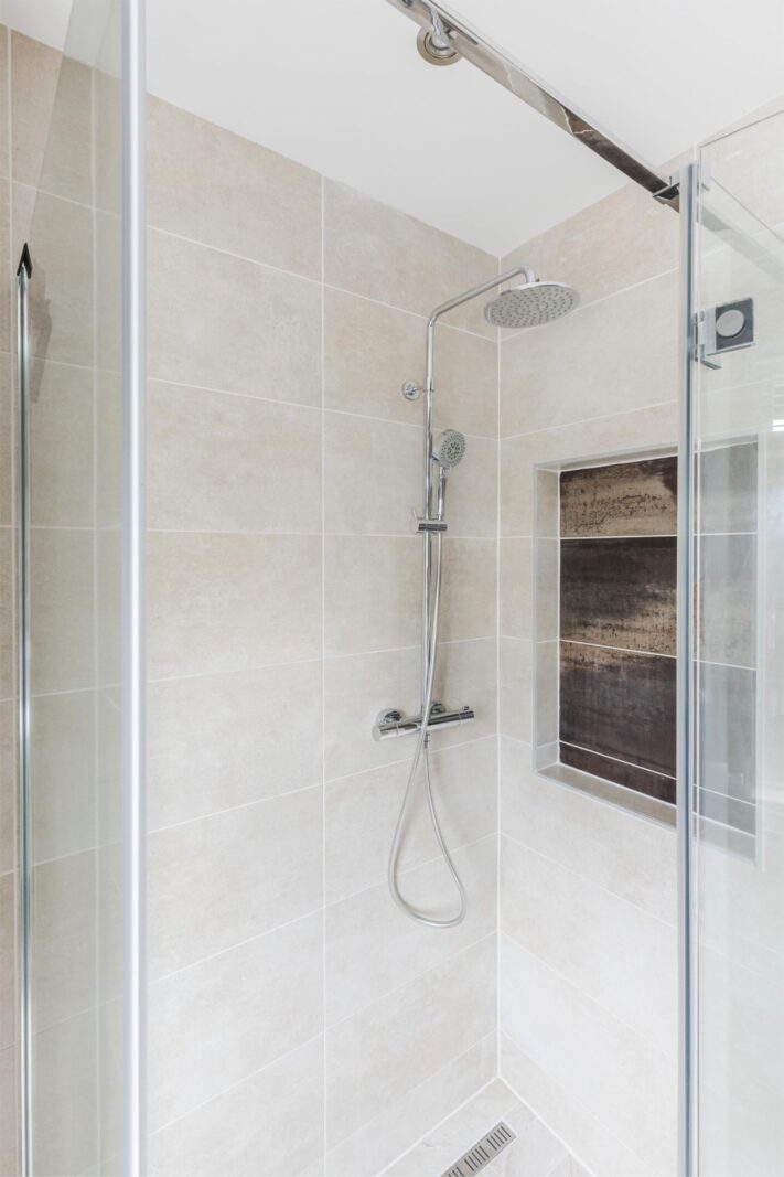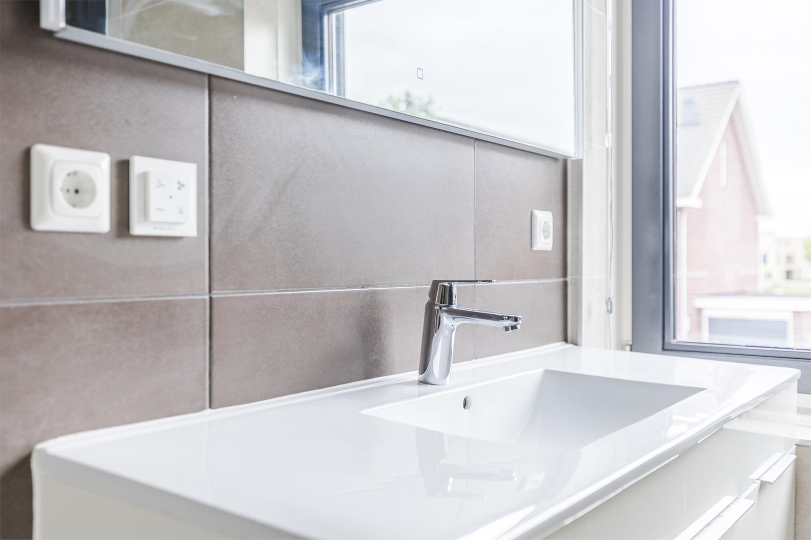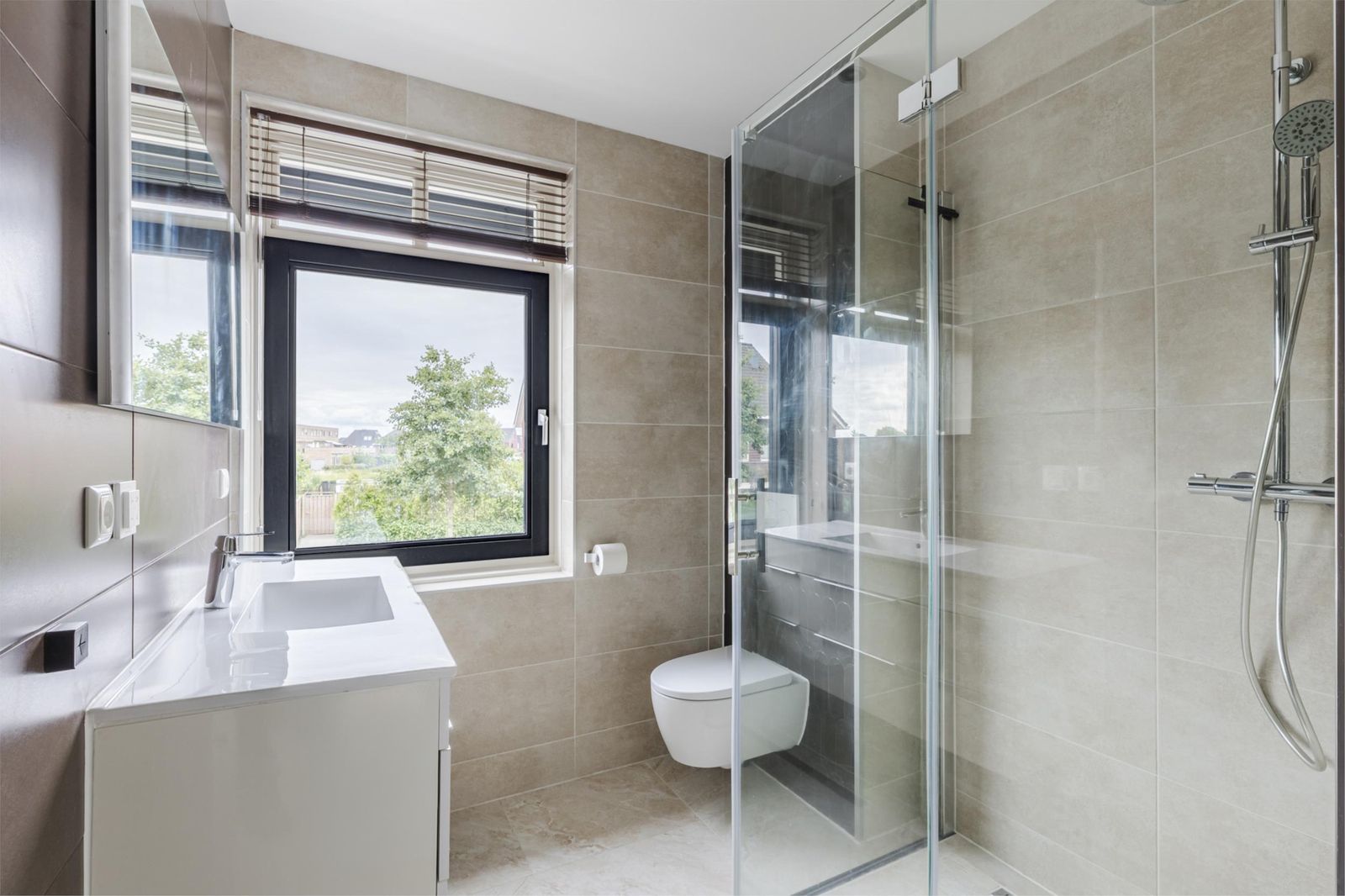 Op deze verdieping bevinden zich drie slaapkamers, allen voorzien van HR-glas en rolluiken. De moderne badkamer is stijlvol afgewerkt met een inloopdouche, wastafelmeubel, toilet, comfortabele vloerverwarming en rolluiken.
