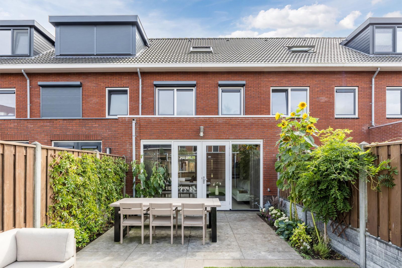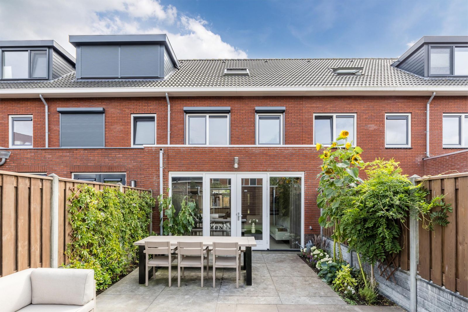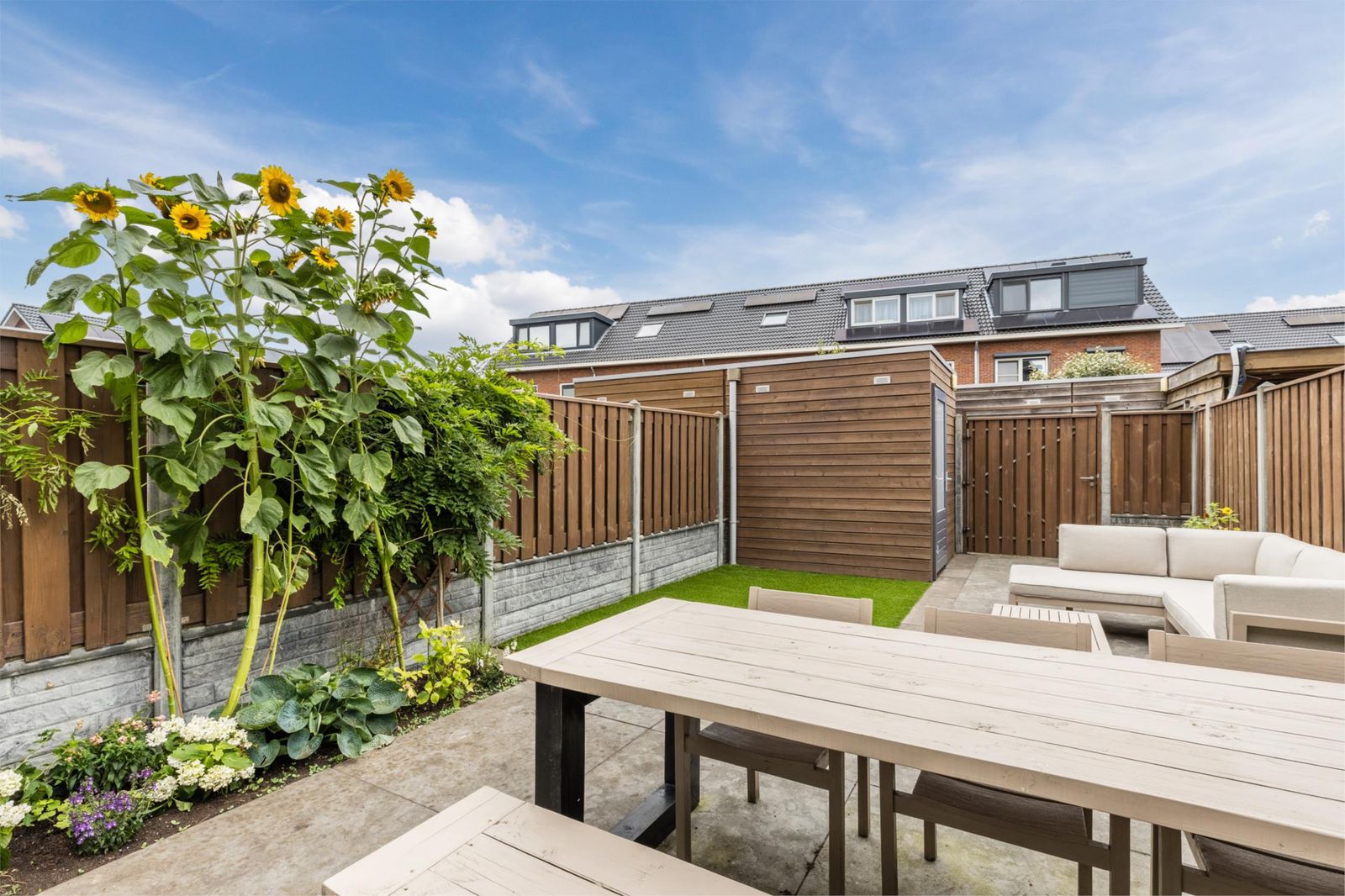 • Grote achtertuin, gelegen op het noorden. Voorzien van berging, extra brede poort en toegang tot achtergelegen steeg.