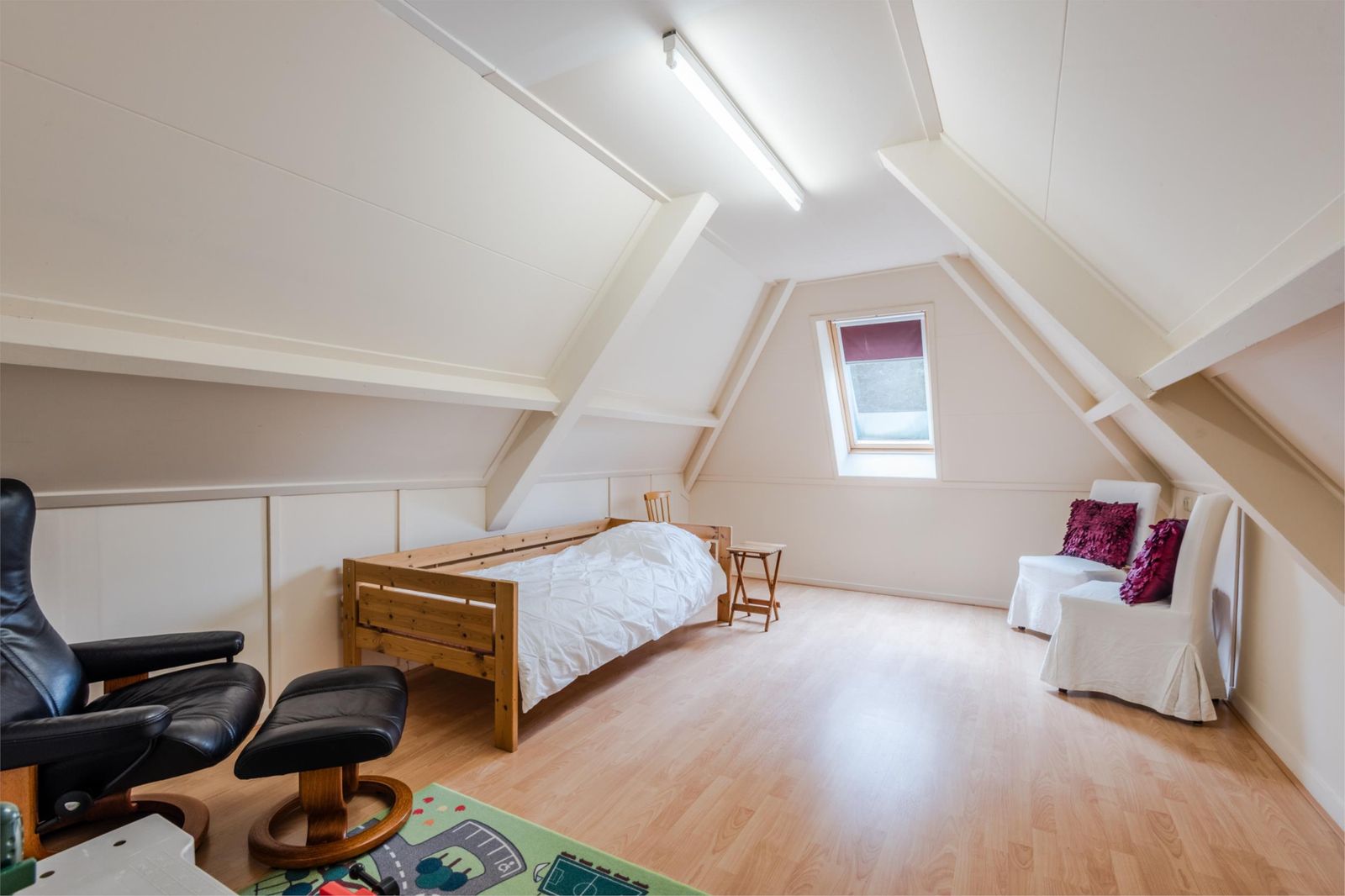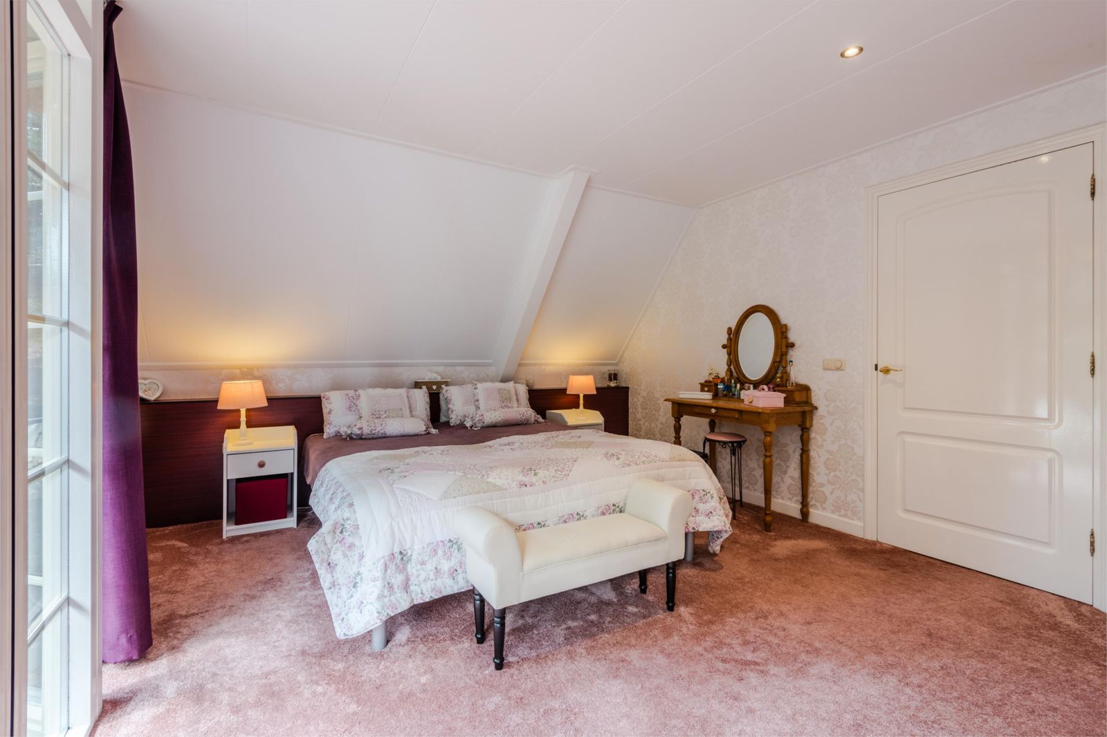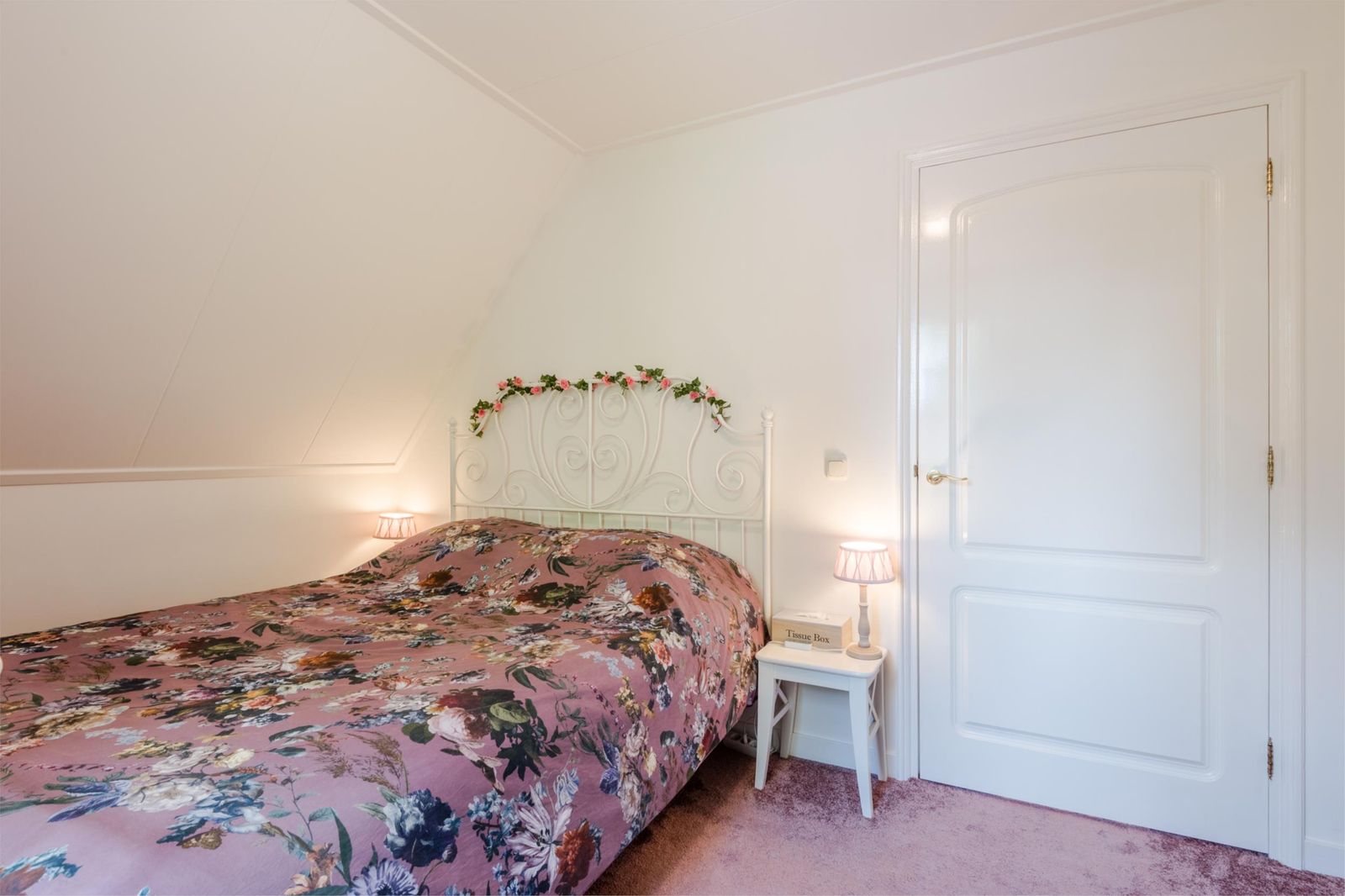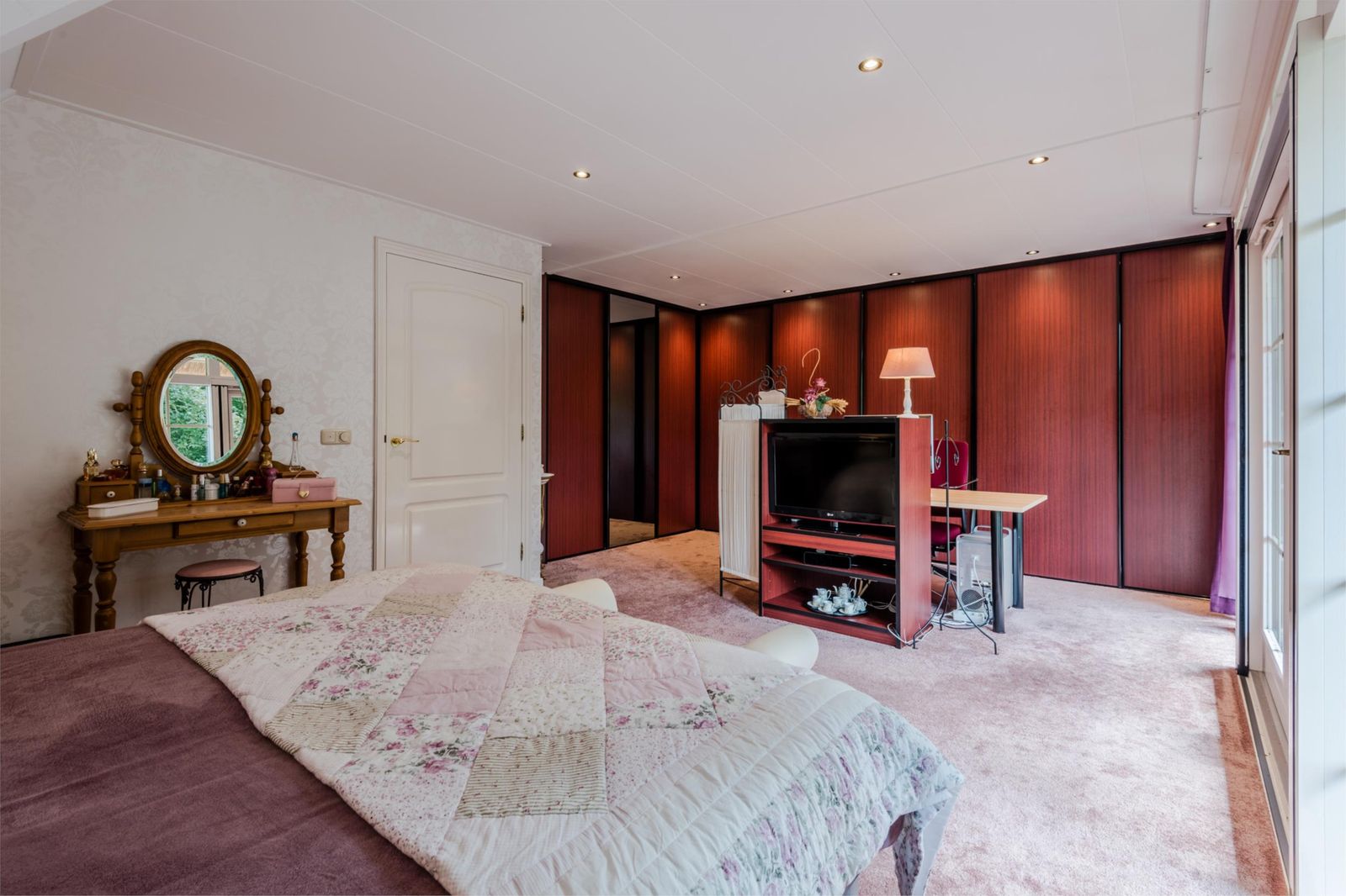 De riante masterbedroom bevindt zich aan de achterzijde van de woning en heeft een grote raampartij met dakterras en uitzicht op de fraaie tuin. De slaapkamer heeft een grote vaste kastenwand waarin elke garderobe past!