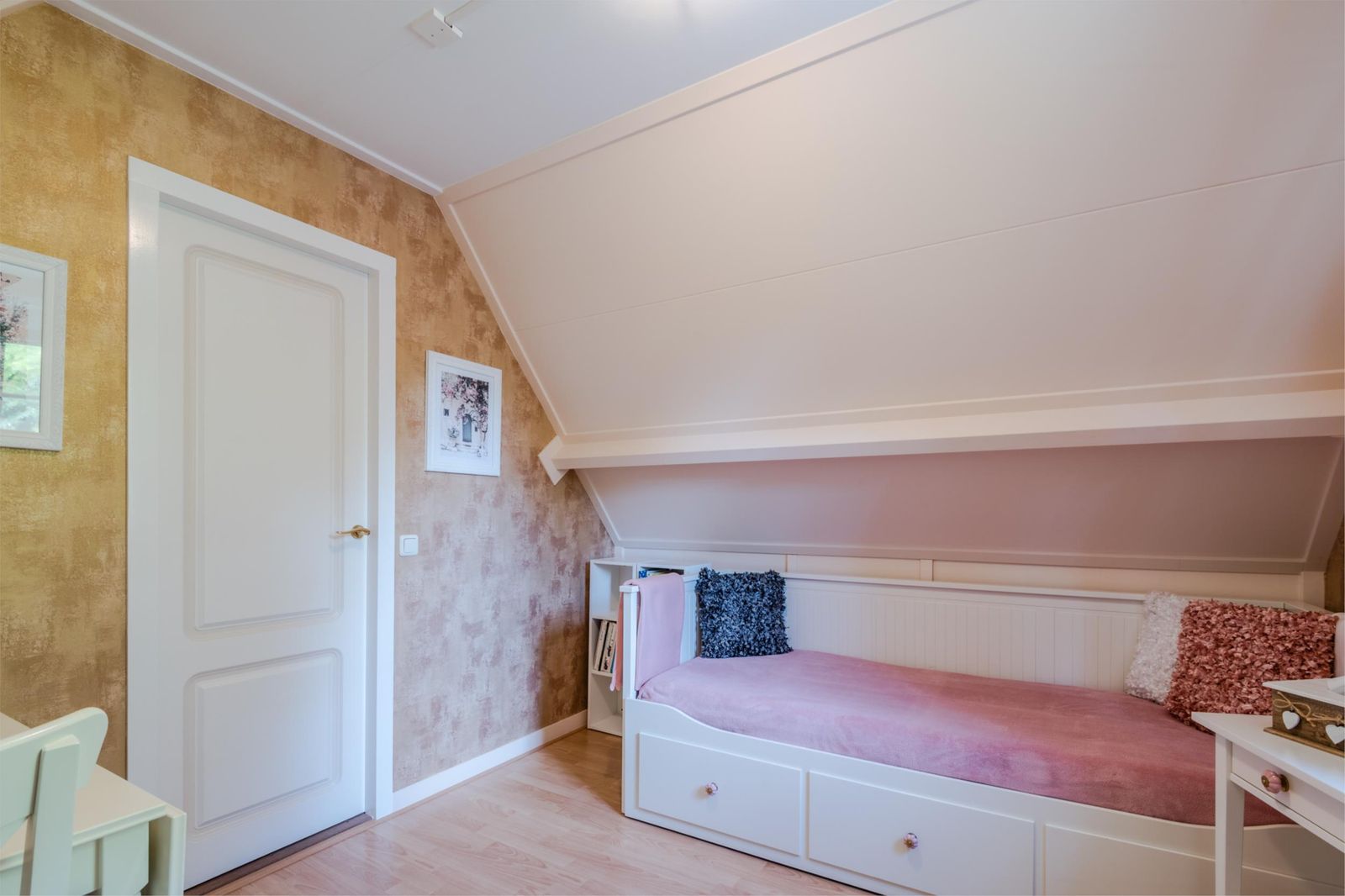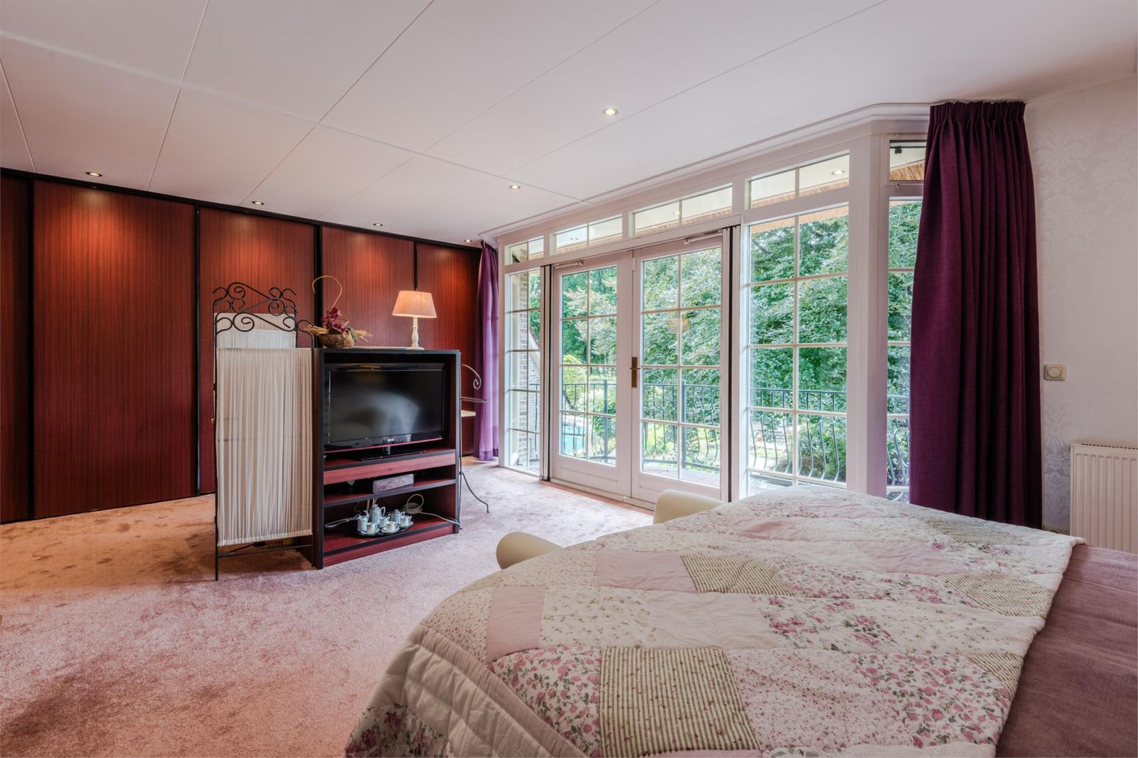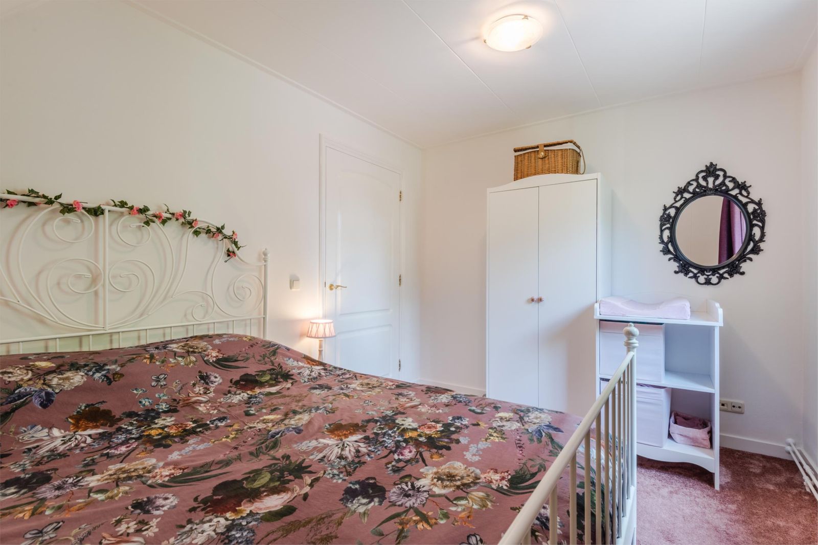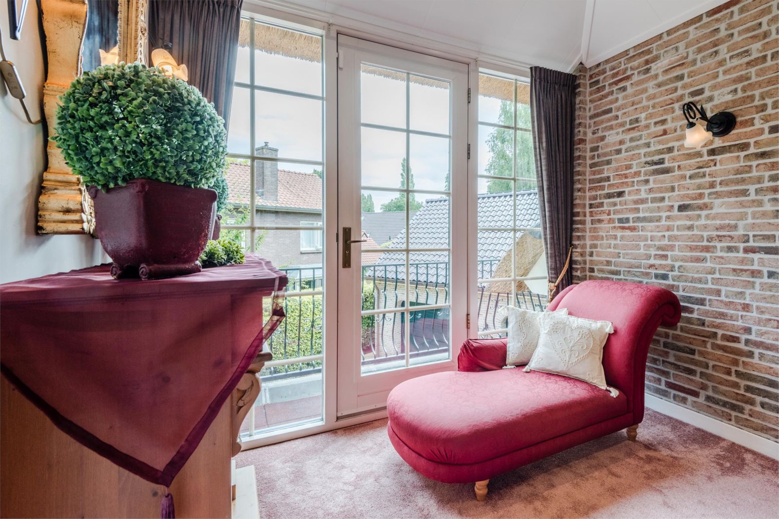De riante masterbedroom bevindt zich aan de achterzijde van de woning en heeft een grote raampartij met dakterras en uitzicht op de fraaie tuin. De slaapkamer heeft een grote vaste kastenwand waarin elke garderobe past!