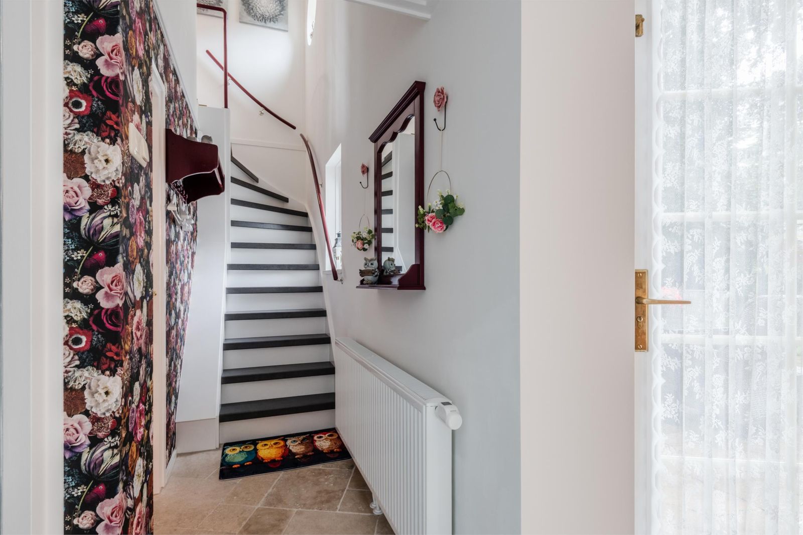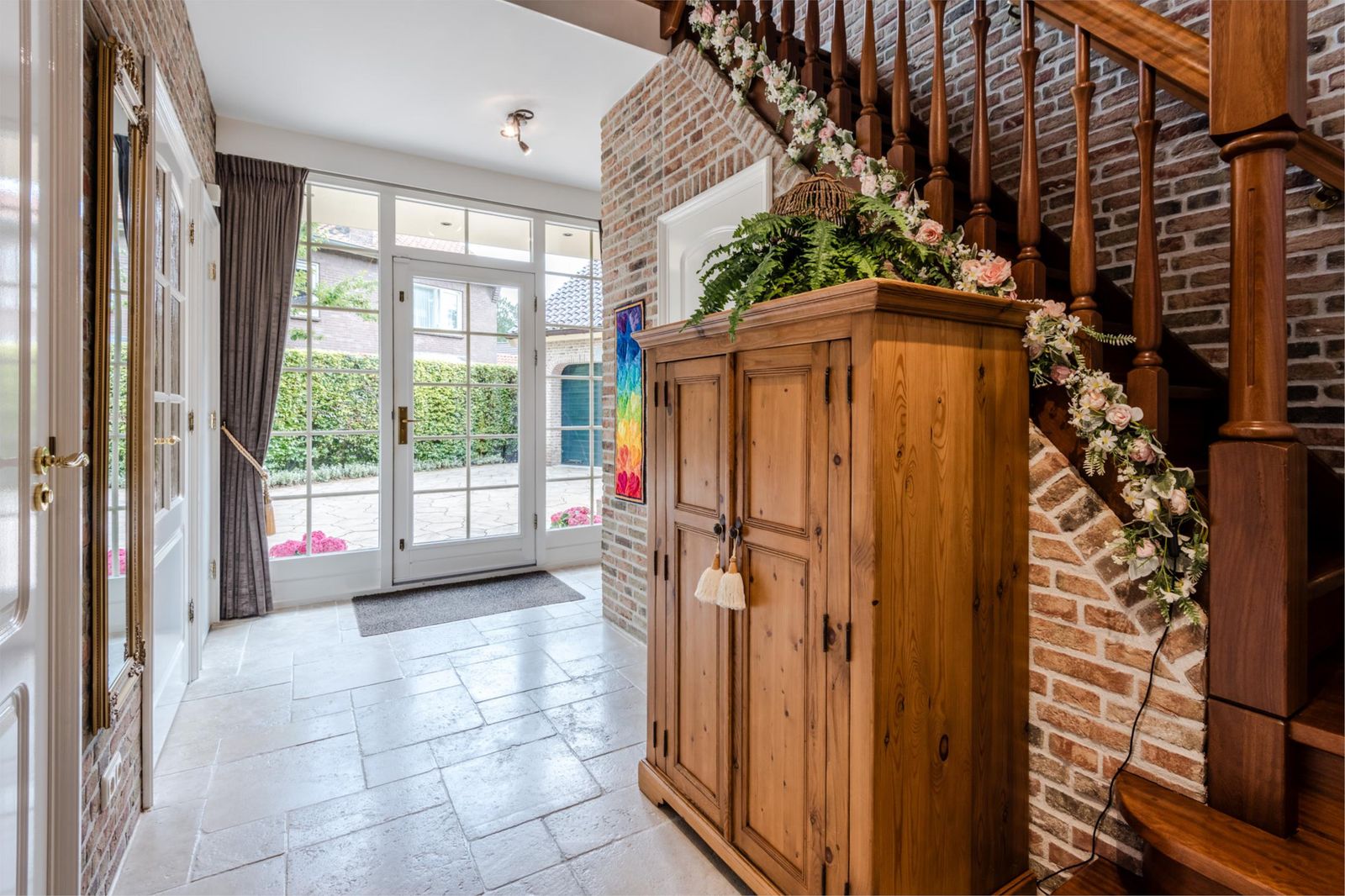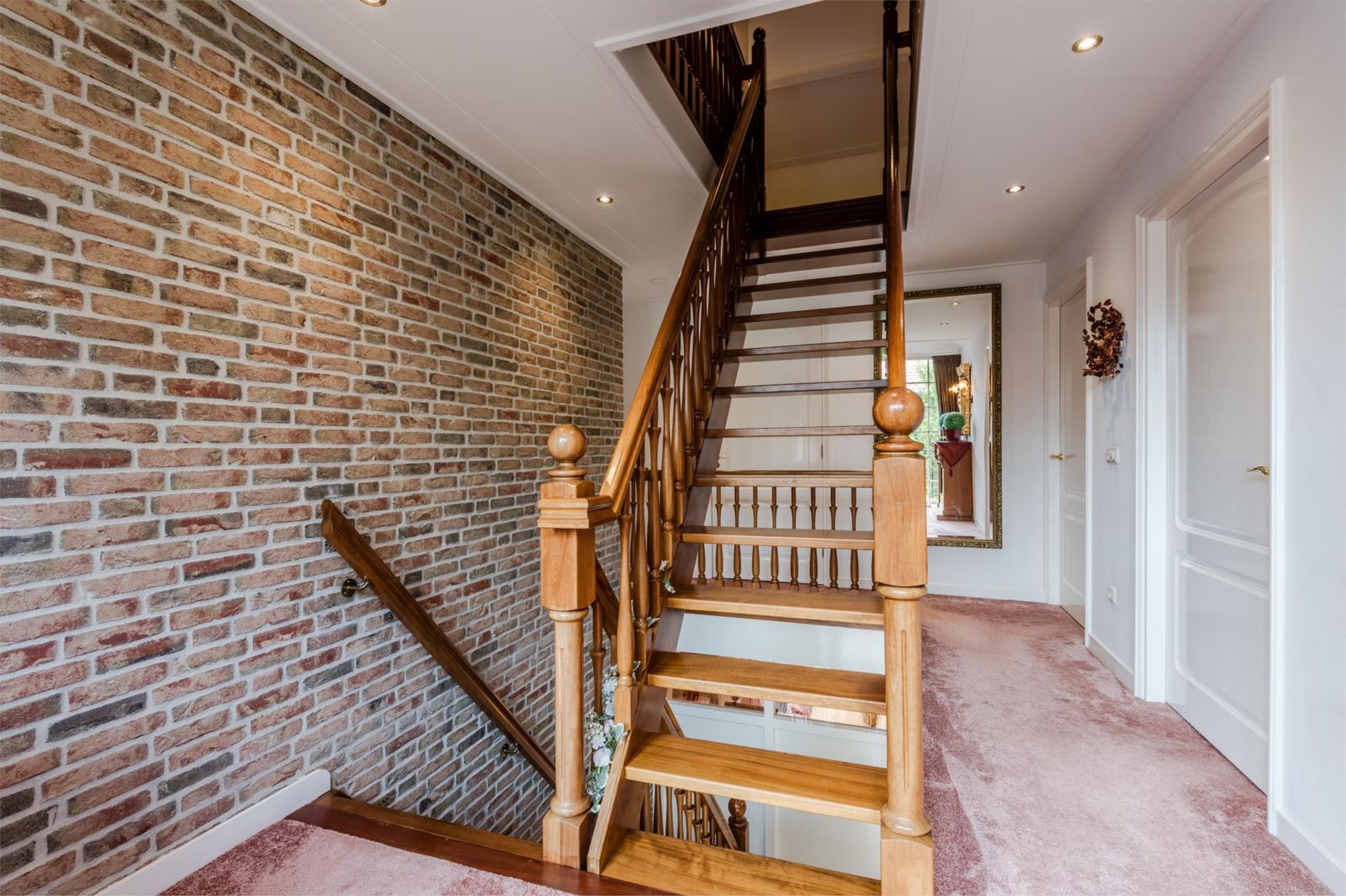 De statige entree is voorzien van fraaie pilaren en ontsluit de hal waarin een hardhouten trap met vide een echte blikvanger is. Op de vloer ligt een Mexicaans marmeren vloer in zachte kleurstelling. Vanuit de hal is het moderne toilet met wandcloset te vinden, als ook de kelderkast, meterkast, garderobe en voormalige keuken (geschikt te maken voor kantoor aan huis, wasruimte, bijkeuken of slaapkamer).