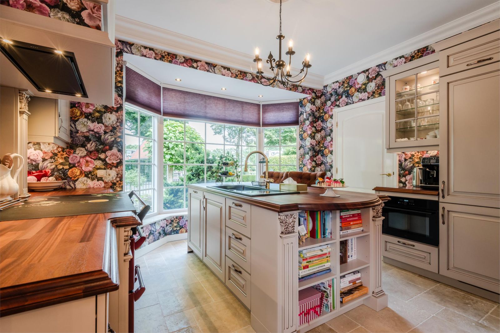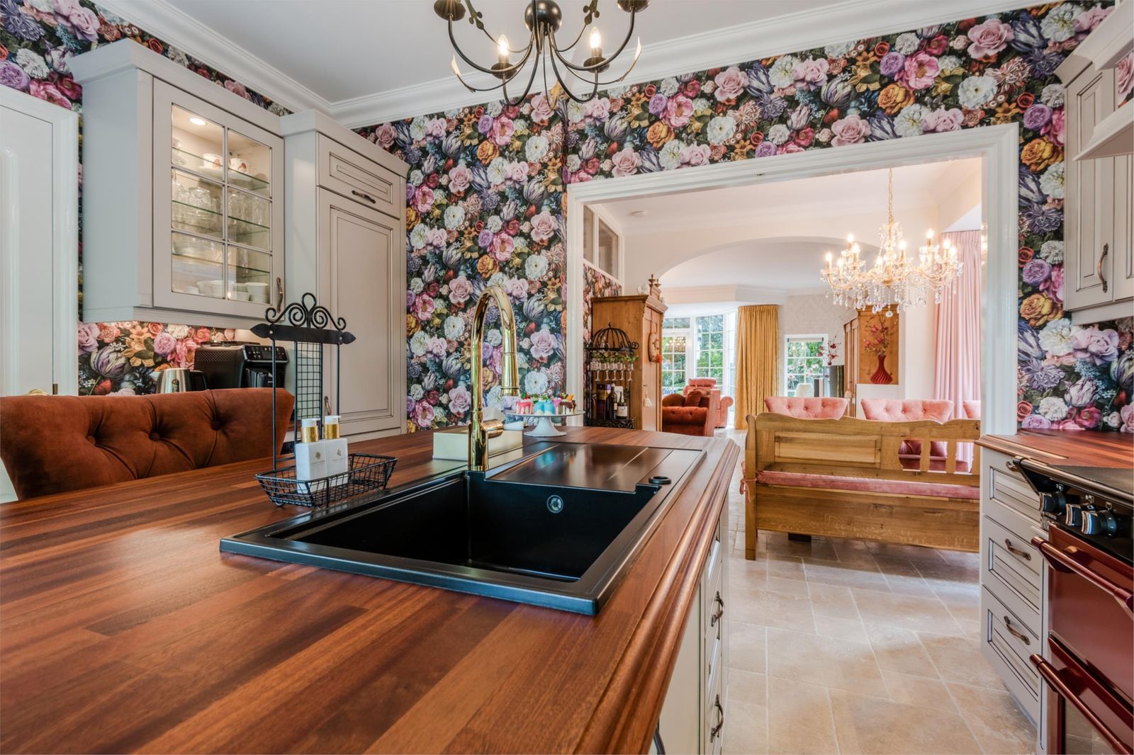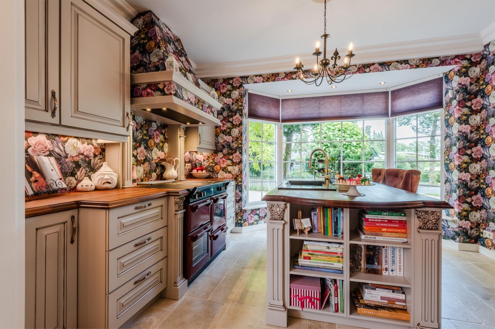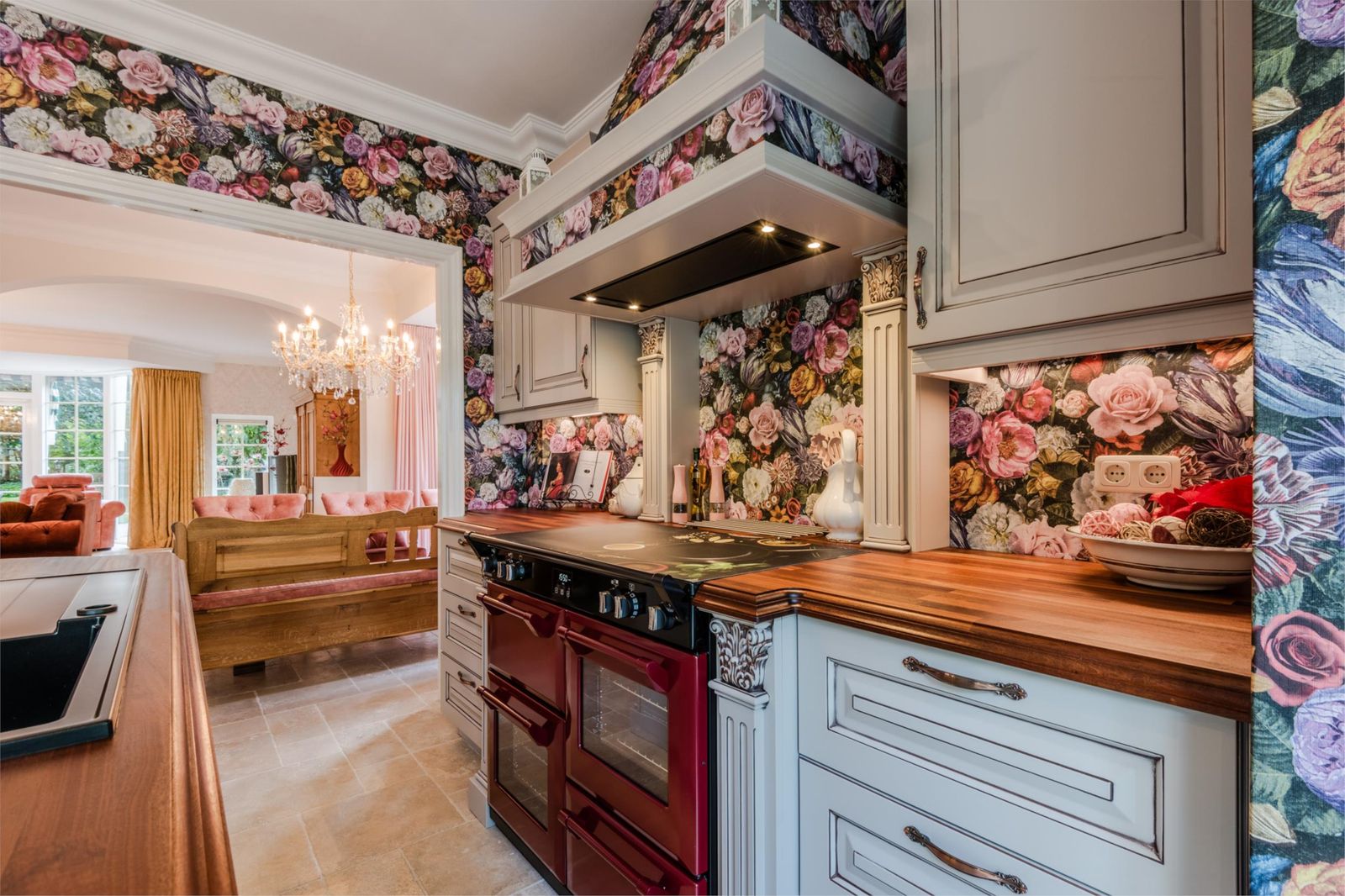 In 2024 is in de oude voorkamer een nieuwe landelijke keuken gerealiseerd waardoor woonkamer, eetkamer en keuken nu één geheel vormen. De keuken is voorzien van een spoeleiland, Stoves fornuis met 5 pits inductie en 4 ovens, grote schouw met Novy afzuigkap, Siemens vaatwasser met Zeolith droogsysteem, Liebherr koel-vries combinatie met Bio-fresh systeem, magnetron, massief houten mahonie aanrechtbladen en diverse zeer fraaie en sierlijke ornamenten/pilasters. Vanuit de keuken is de technische ruimte te betreden waarin ook nog bergruimte is.