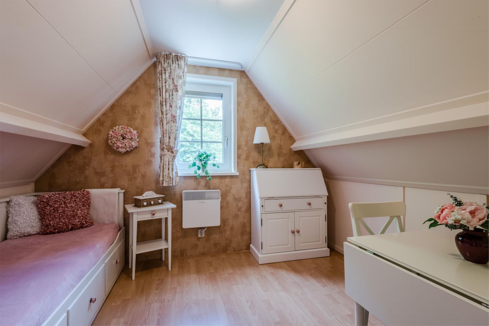 De vaste hardhouten trap loopt door tot de zolder en via een hal zijn twee slaapkamers te bereiken. De kleinere kamer aan de voorzijde heeft een gevelraam en de grote kamer achter heeft een dakraam. Beide kamers zijn voorzien van knieschotten met opbergruimte. Deze kamers zijn ook prima voor andere doeleinden dan slapen in te zetten.