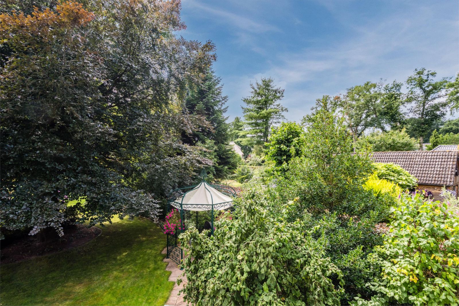 De tuin is voorzien van stroompunten en waterpunten (via een eigen bron) en op afstand bedienbare verlichting (inclusief tuinhuisverlichting). De eigen bron is ook met een sierlijke handpomp te bedienen. Voor de bestrating is gebruik gemaakt van gekleurde betontegels met een organische vorm die prachtig past bij de natuurlijke omgeving en het karakter van het landhuis. Het perceel is grotendeels afgeschermd met een beukenhaag.