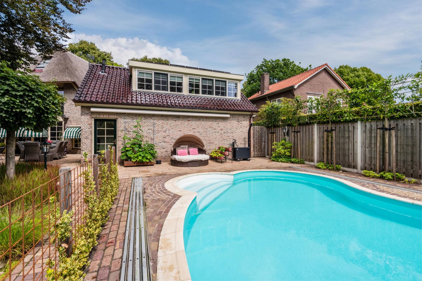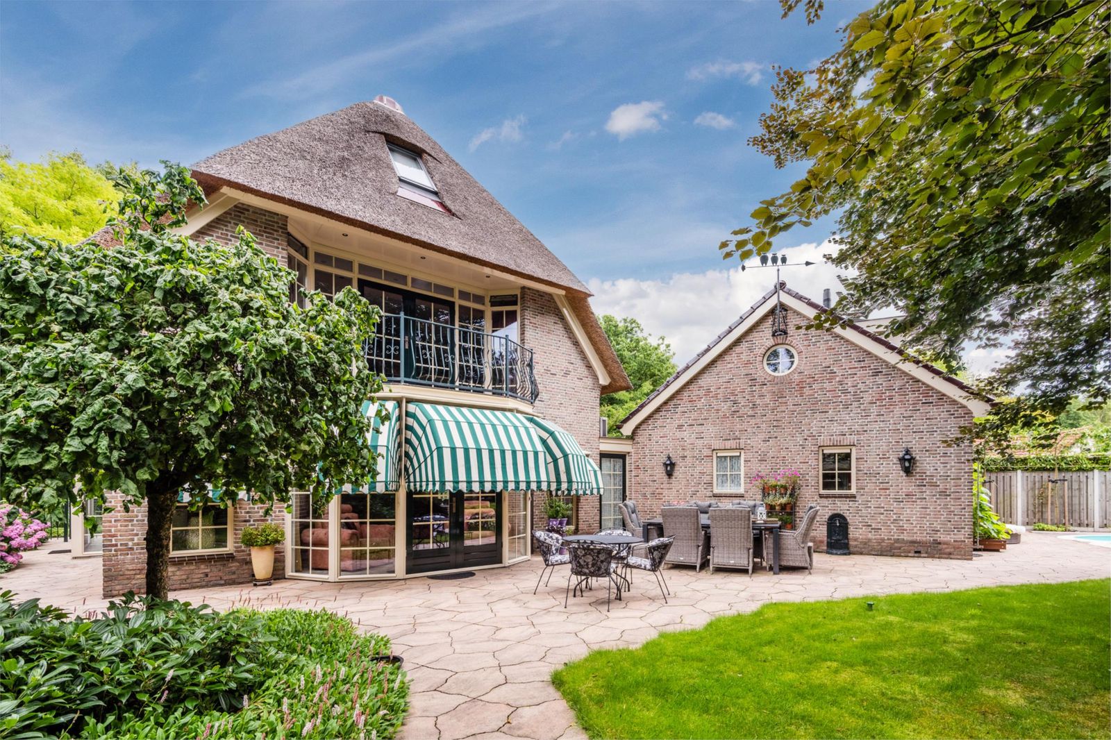Aan de groene rand van het geliefde dorp Epe bevindt zich dit riante onder architectuur gebouwde landhuis met rieten kap en dubbele garage op een ruim perceel (1385 m2). Wordt één met de natuur in de fraai aangelegde tuin met riant tuinhuis en geniet van het luxe verwarmde overdekte buitenzwembad. Geniet dagelijks van de seizoenen, het buitenleven en het rijke gevoel van ruimte en privacy – en dat alles op slechts een steenworp afstand van het charmante dorpshart van Epe.