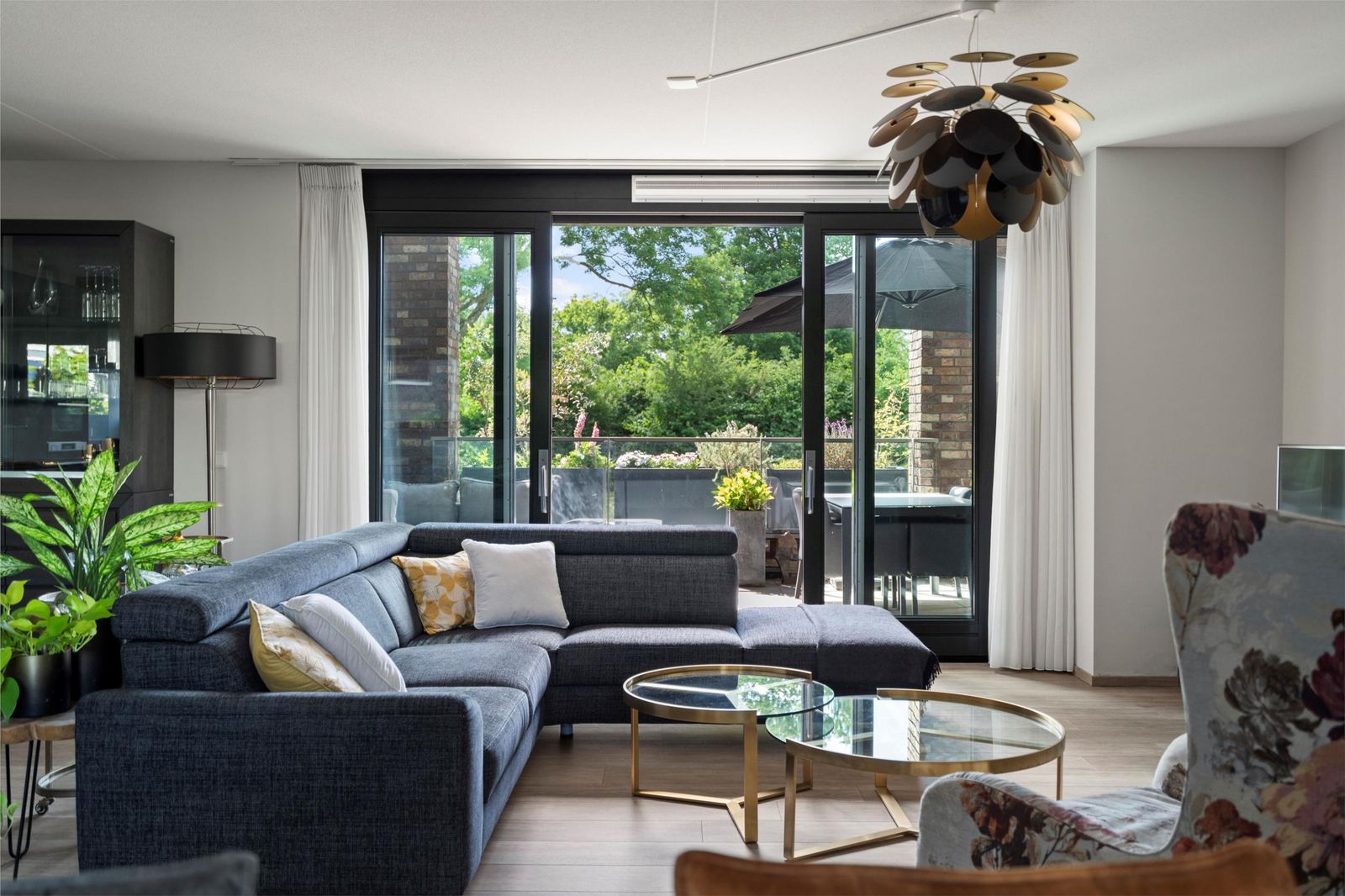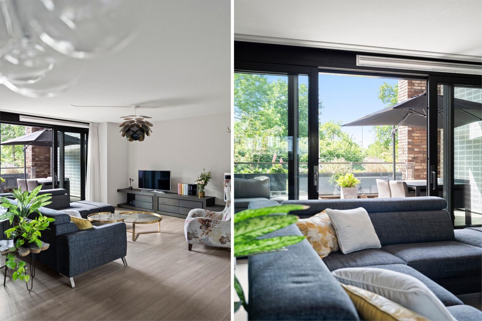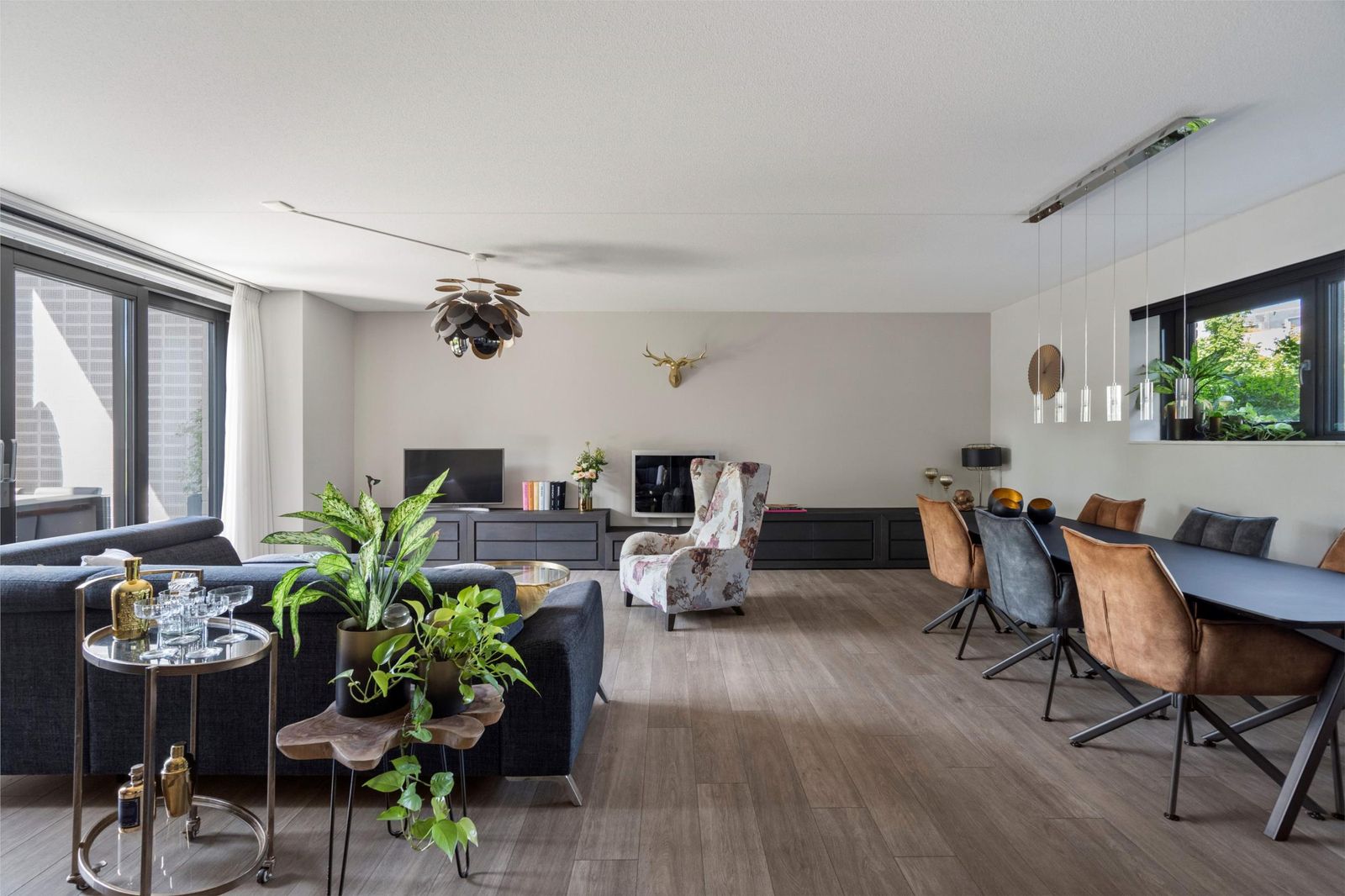 •Lichte woonkamer met grote raampartijen en plek voor een royale zithoek én eettafel