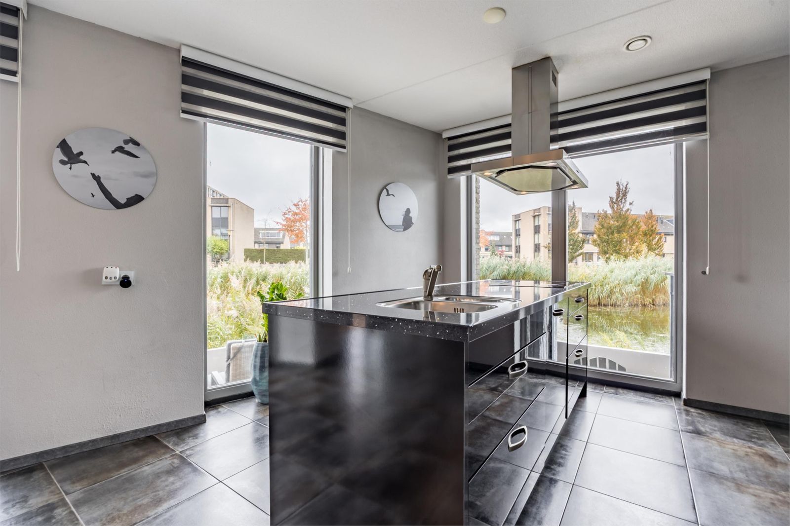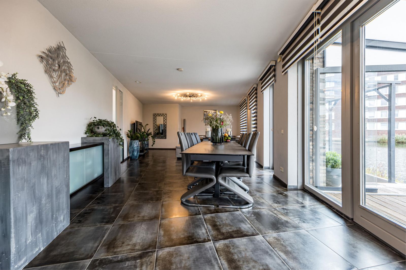 Welkom bij deze bijzondere, brede hoekwoning aan het water: oorspronkelijk met atelierruimte op de begane grond en nu getransformeerd tot een indrukwekkende living van ca. 17 meter diep met open keuken en kookeiland.