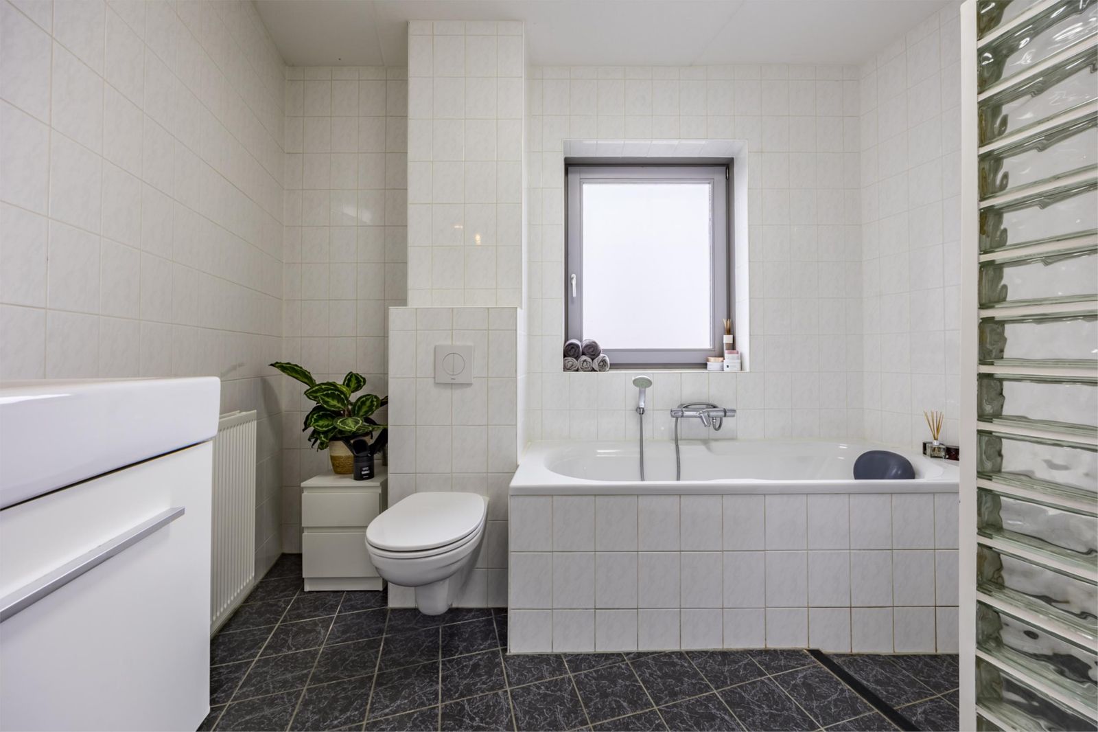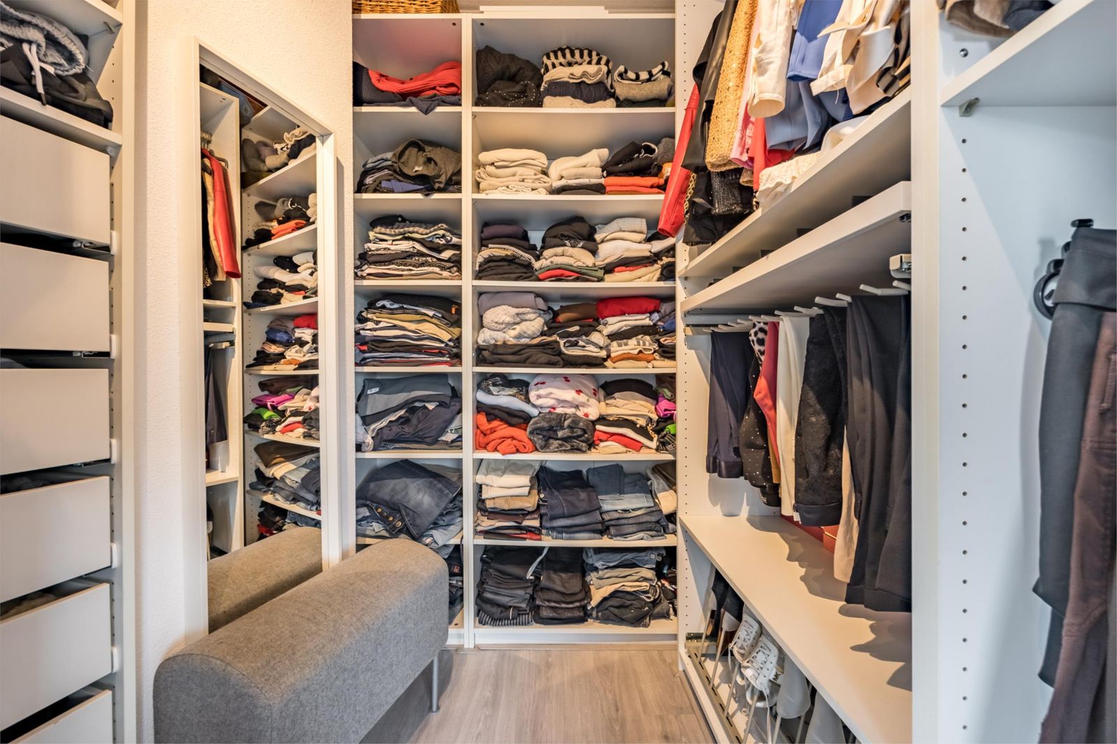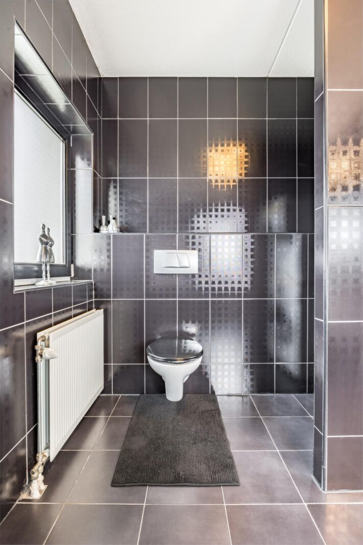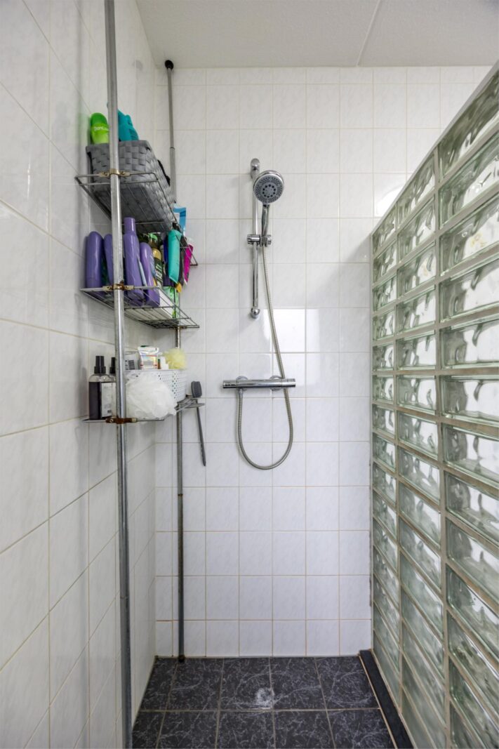 De 3e verdieping is een volwaardige slaapverdieping met een ruime vijfde slaapkamer inclusief ingebouwde kledingkast, een tweede badkamer (stijlvol zwart, volledig betegeld) met inloopdouche, dubbele wastafel en toilet. Hier vind je ook de praktische waskast (voor wasmachine/droger), extra bergruimte en de cv-opstelling.