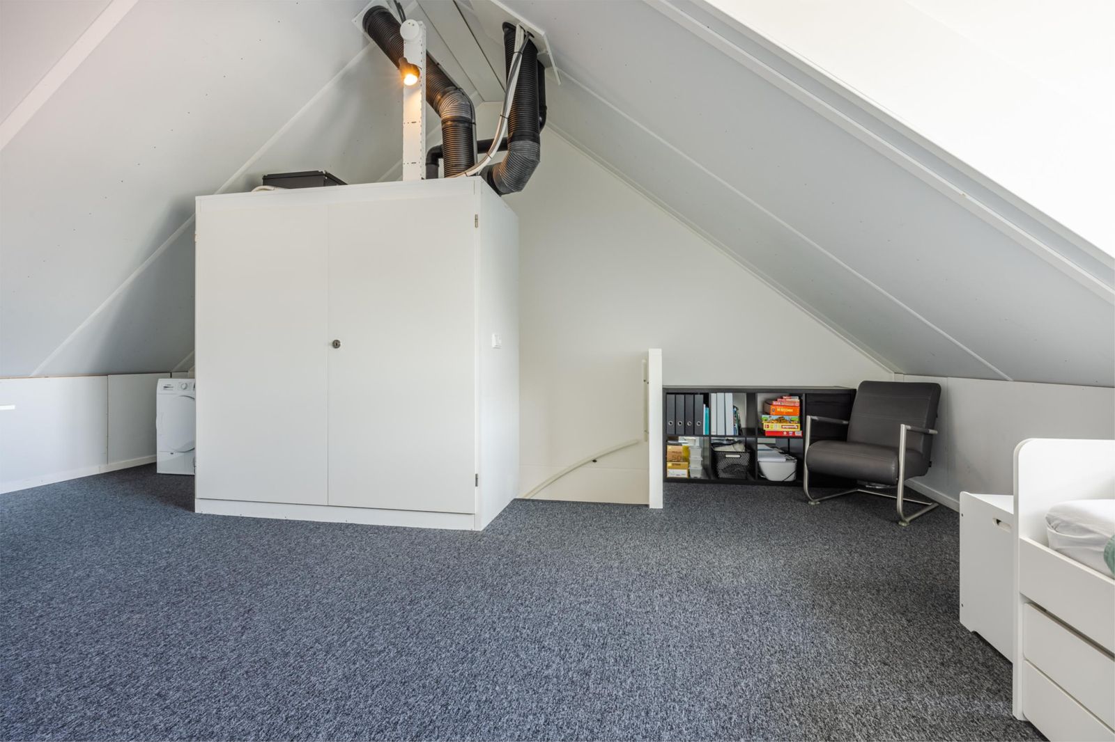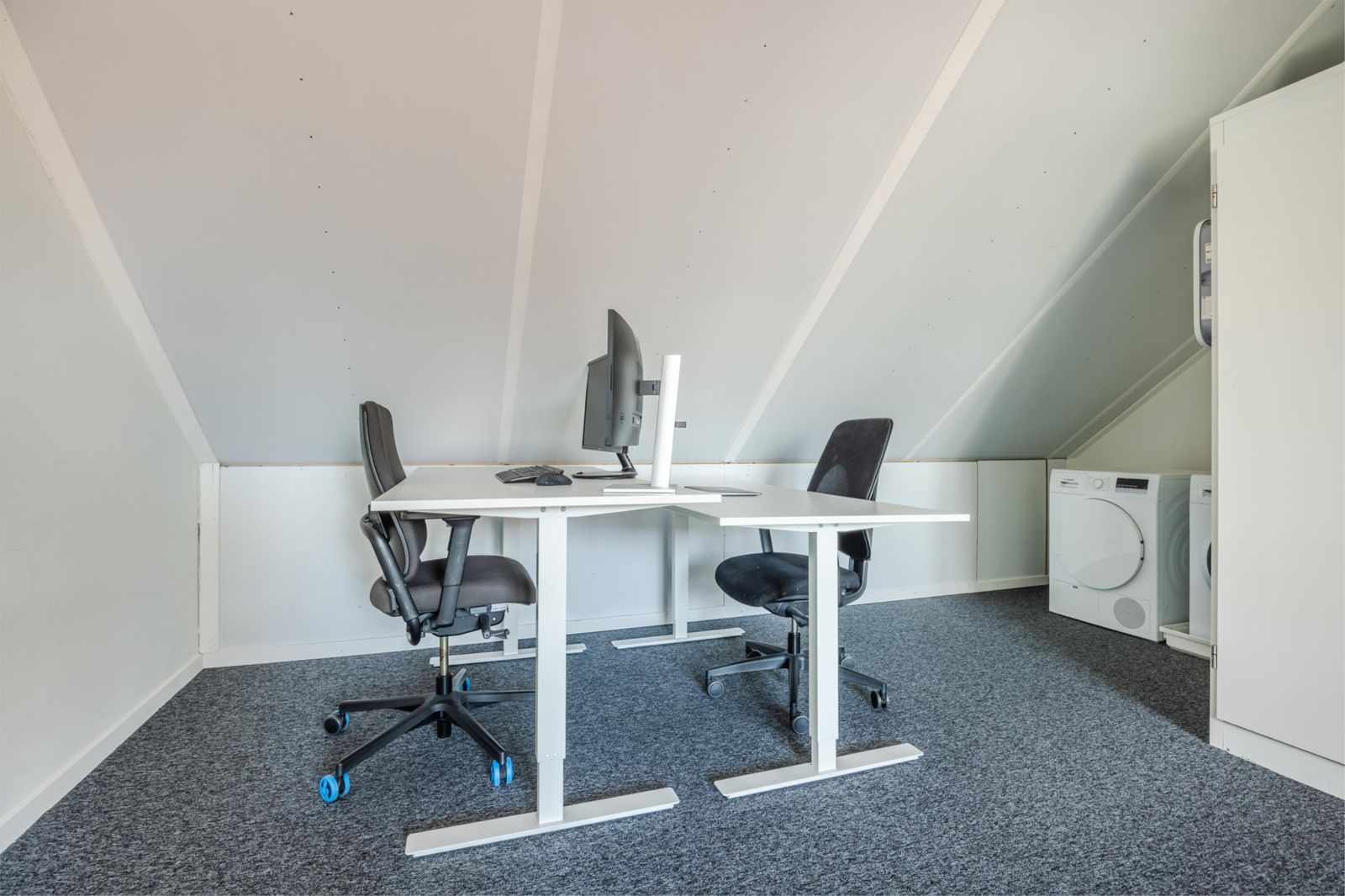 De tweede verdieping is een grote, vrij in te delen ruimte waarbij momenteel plaats is gemaakt voor een kantoorruimte en een logeerbed. Door het dakkapel aan de achterzijde is er extra ruimte en lichtinval gecreëerd. Indien gewenst is er ruimte om twee extra slaapkamers te creëren. Verder bevindt zich hier de wasruimte, een omvormer en een kast voorzien van een warmtepomp.