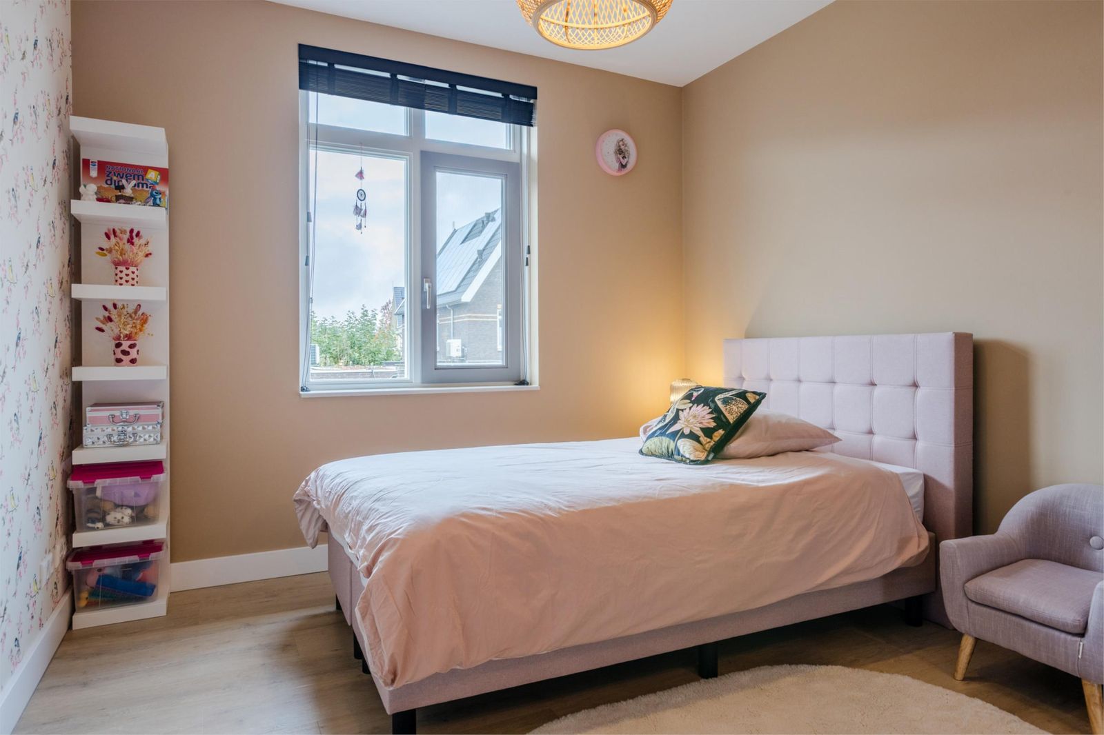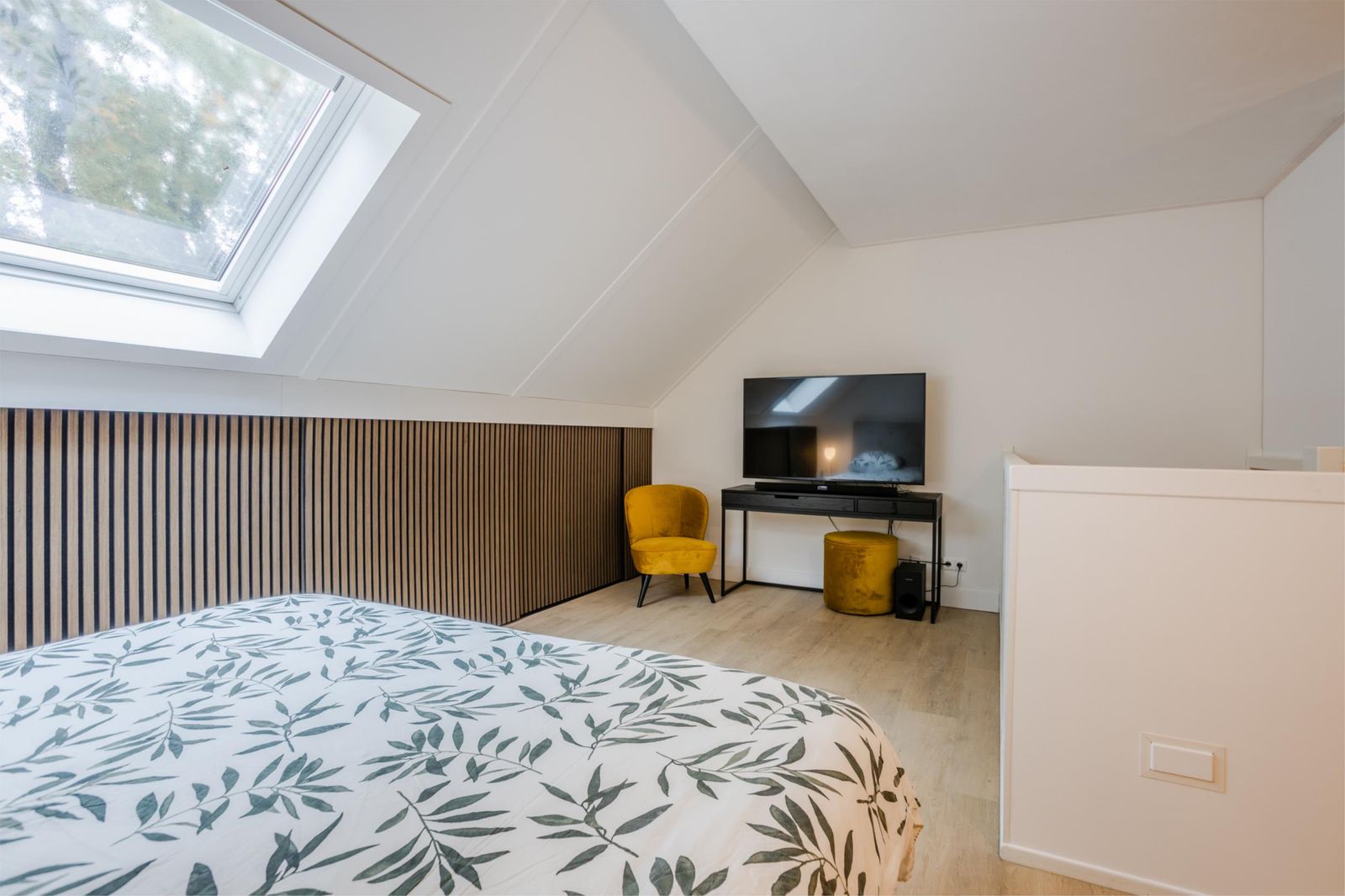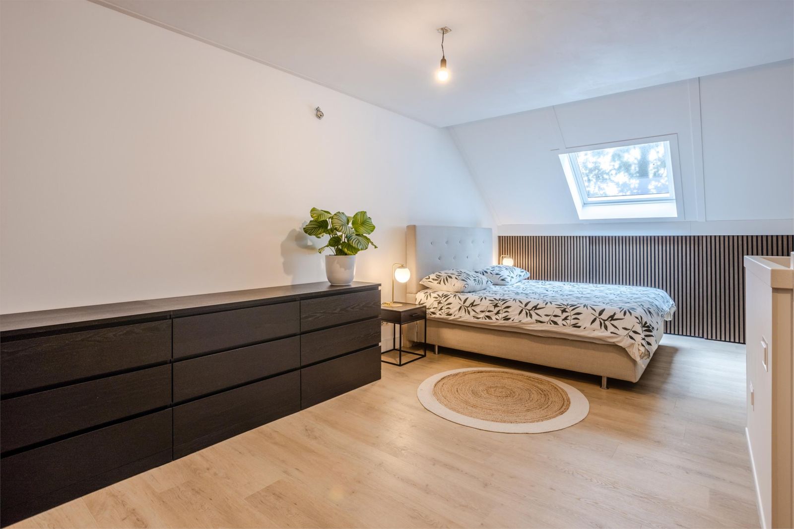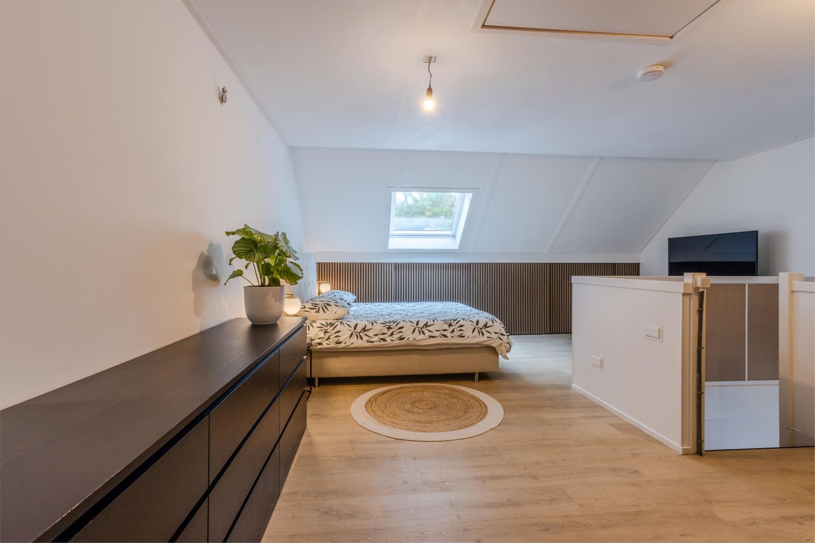 De zolderverdieping is ingericht als royale ouderslaapkamer met knieschotkasten, vliering en een nette, uit het zicht, technische ruimte met plek voor witgoed, omvormer, warmtepomp en wtw-unit.
