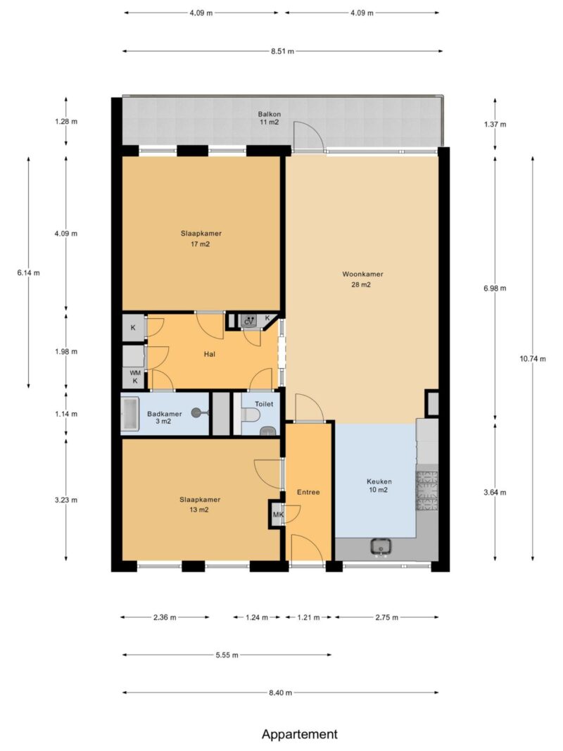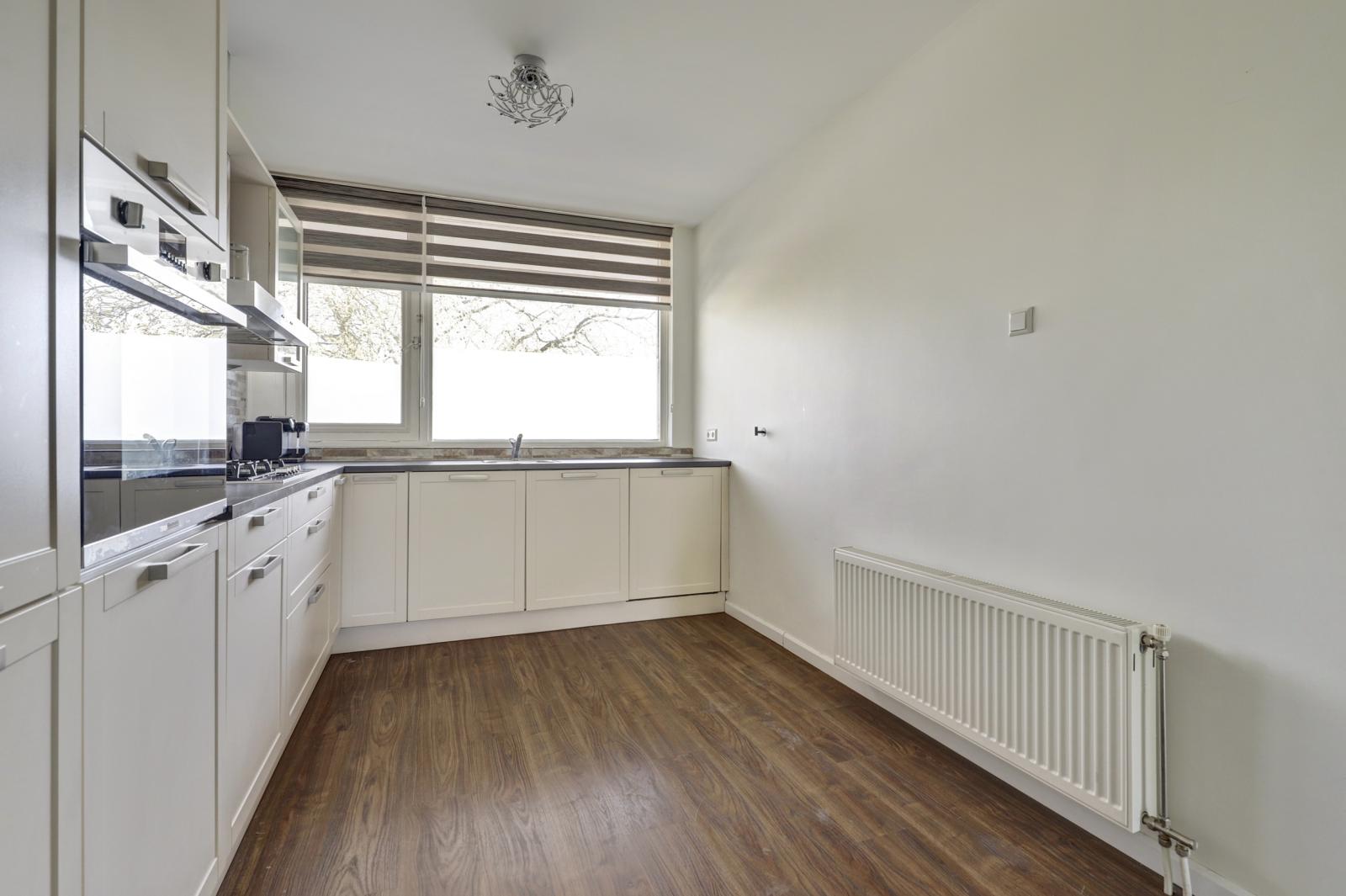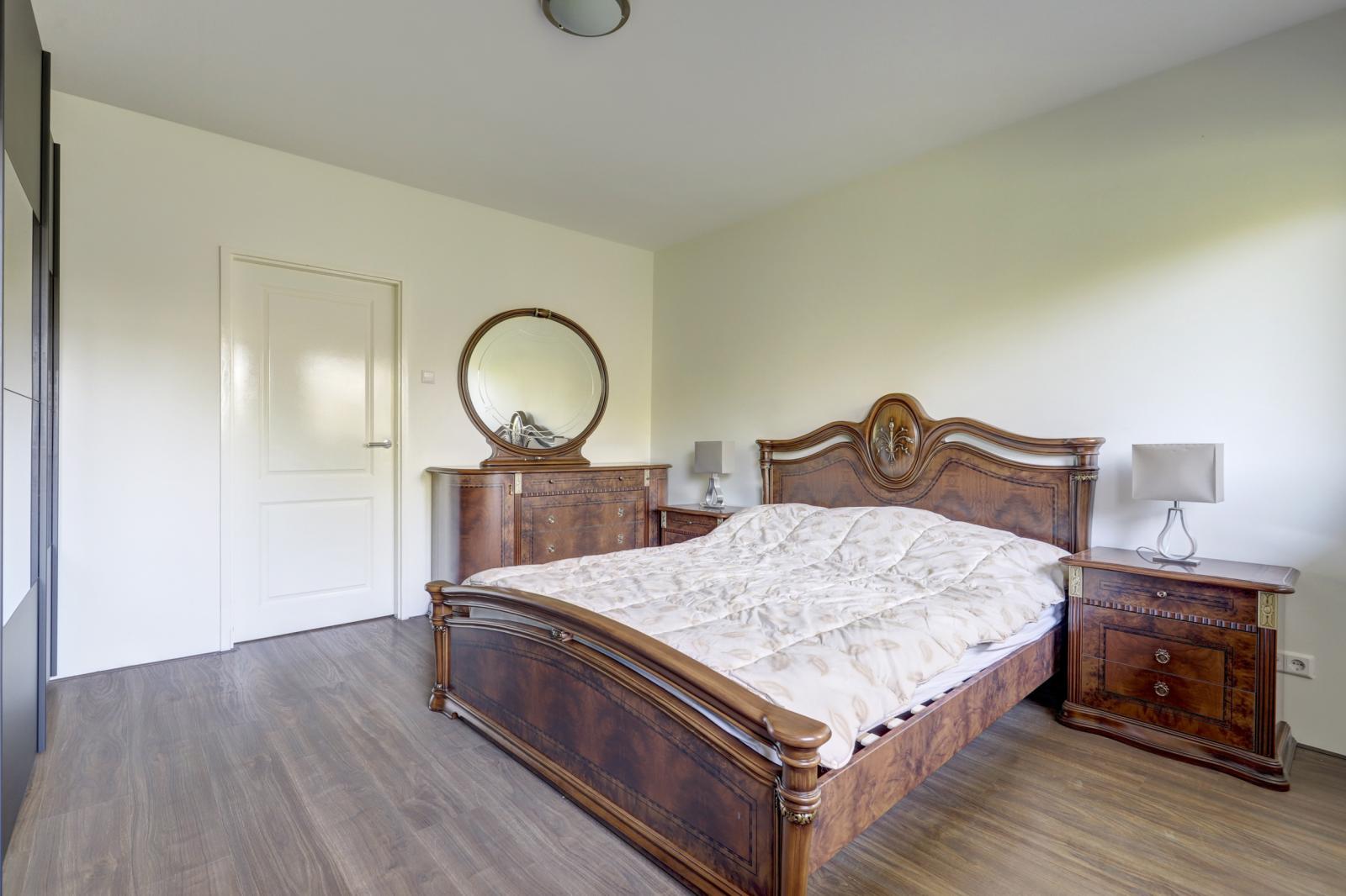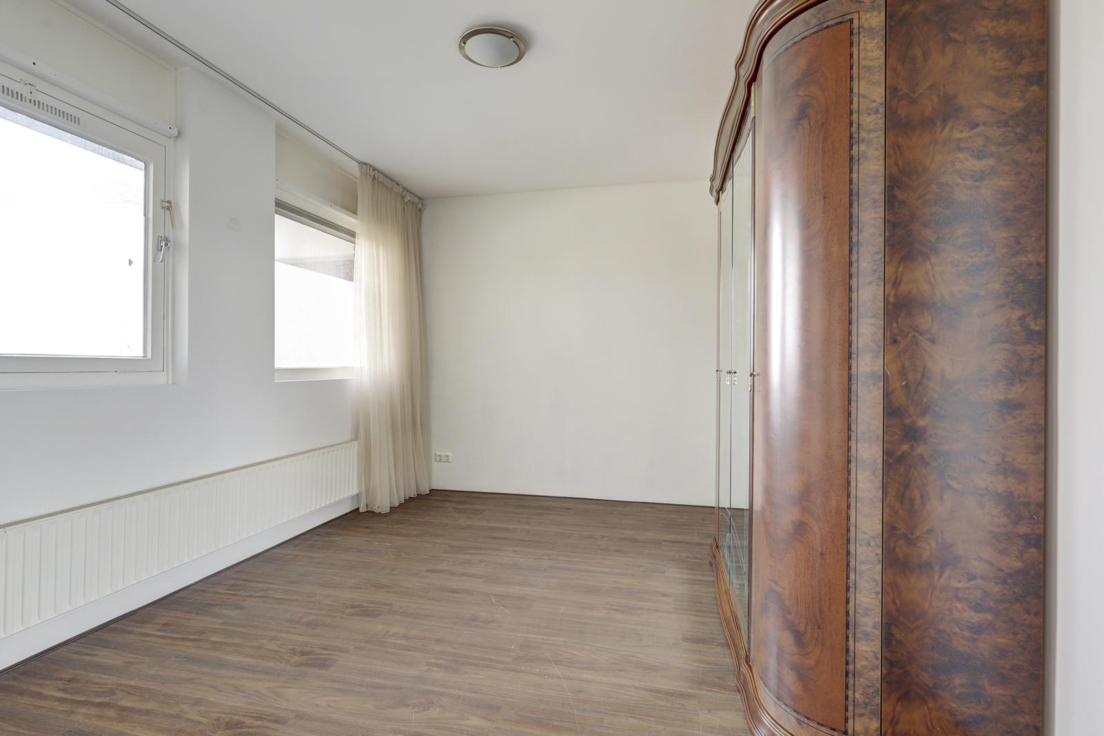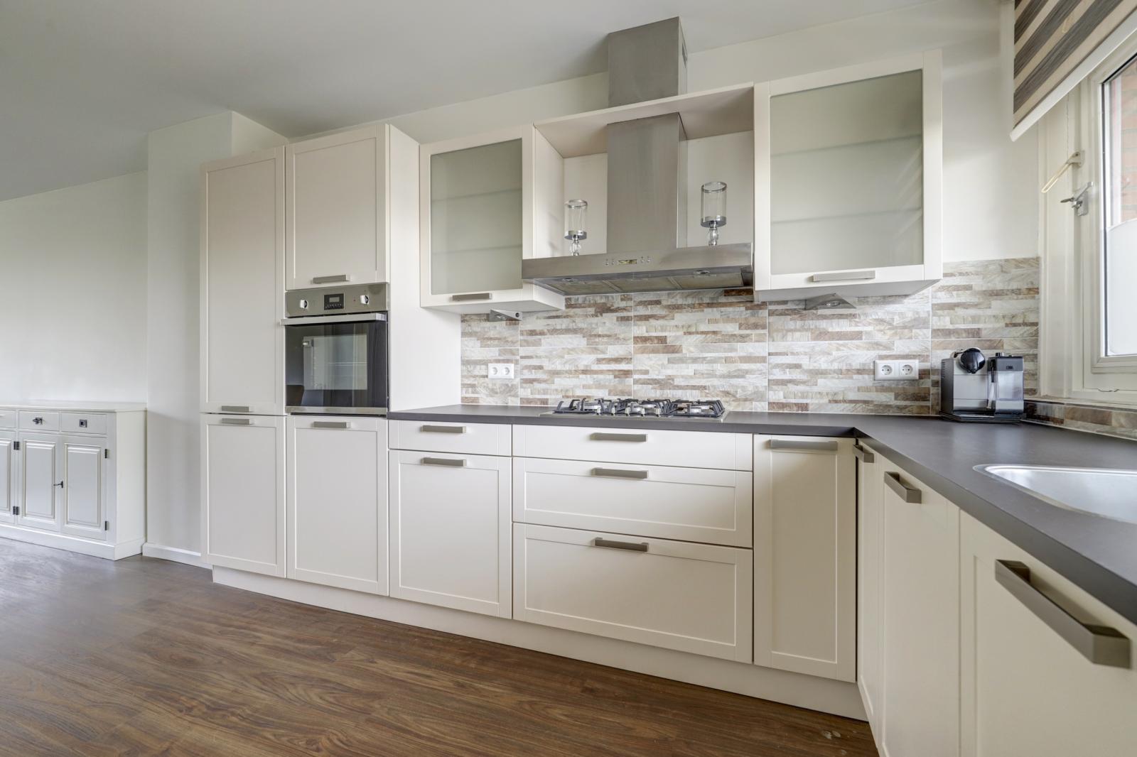 De woonkamer met open keuken strekt zich uit over de volledige dieping van het appartement en vormt het hart van de woning. Grote raampartijen zorgen voor een lichte en open sfeer en via de deur stap je het balkon op van 15 m². De halfopen moderne keuken, uitgevoerd in hoekopstelling en voorzien van diverse inbouwapparatuur, waaronder een 5-pits gasstel, koelkast, vriezer vaatwasser, oven en afzuigkap. Het appartement beschikt over twee ruime slaapkamers, waarvan de grootste aan de achterzijde ligt en voldoende ruimte biedt voor een bed en kledingkast. De andere slaapkamer ligt aan de voorzijde en is ook geschikt als werkkamer.