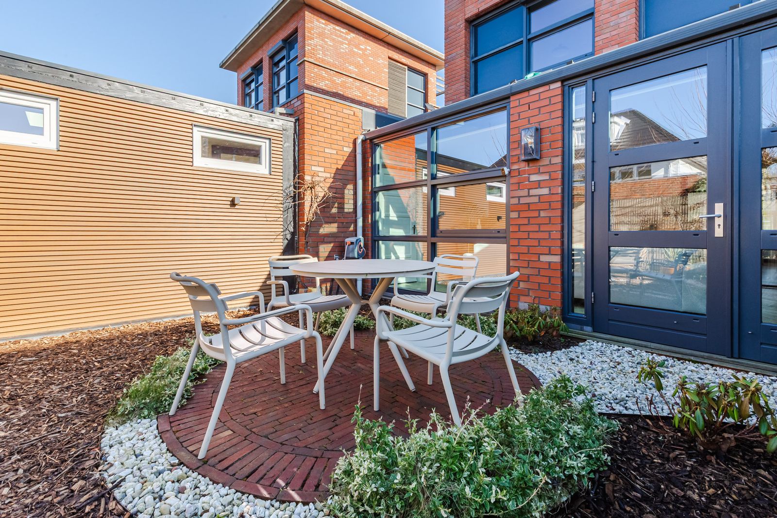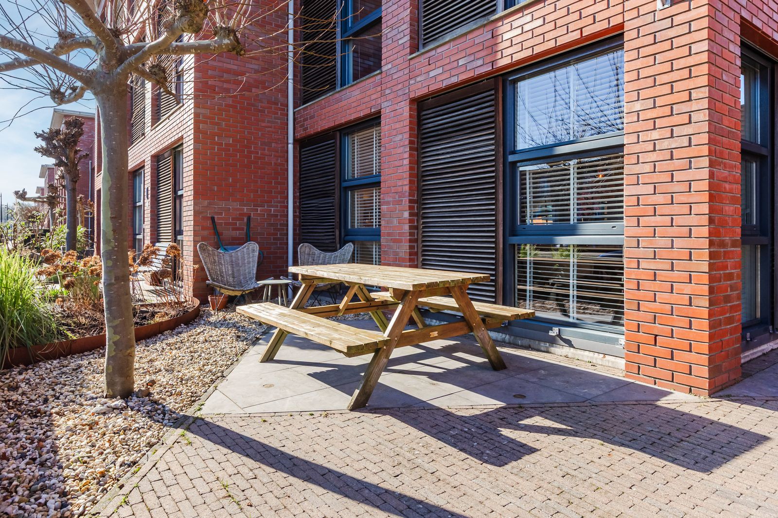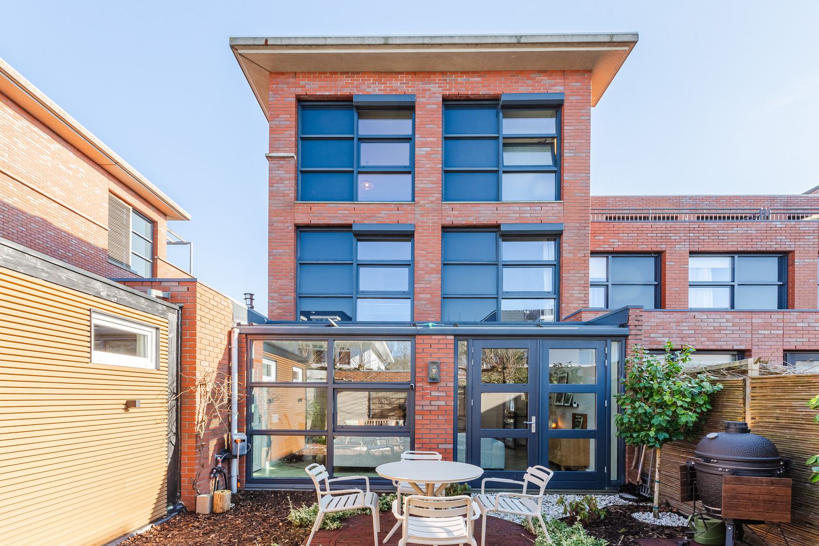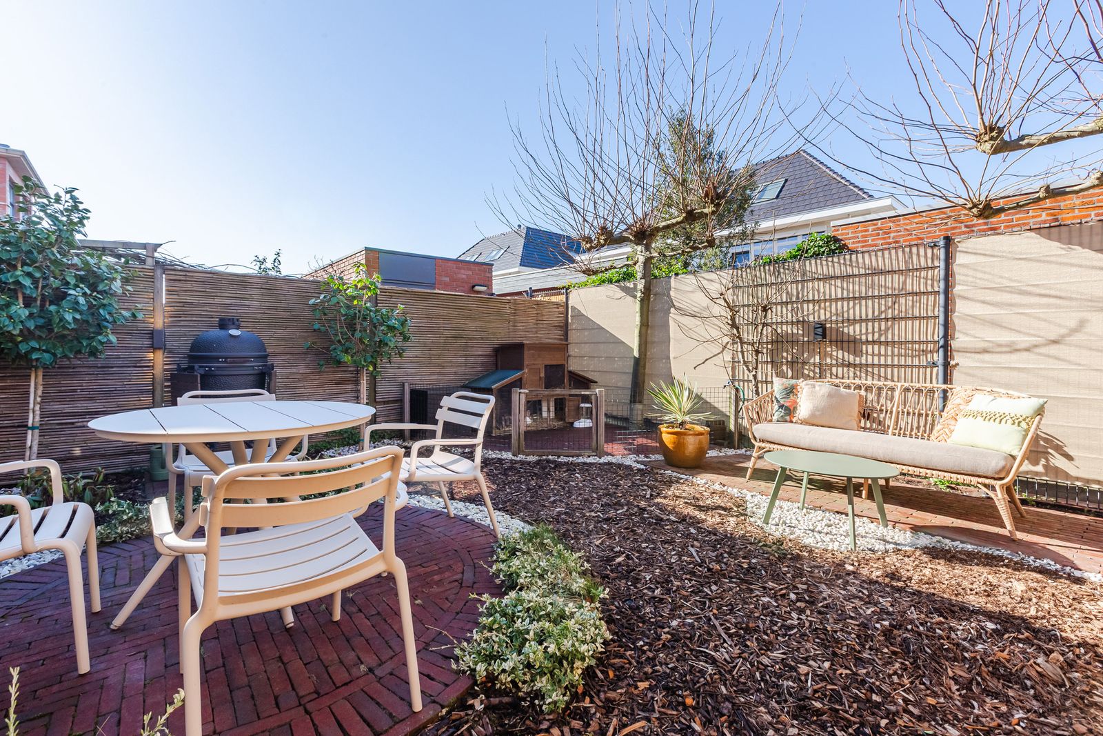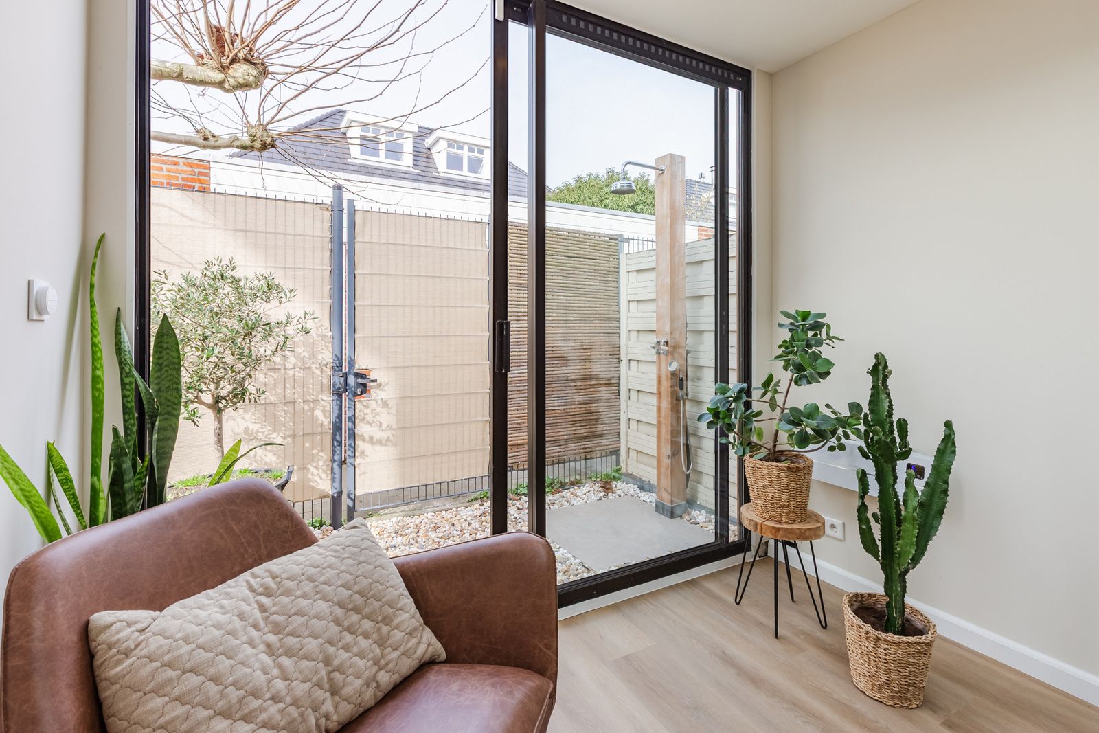 De voortuin en het dakterras aan de voorzijde bieden heerlijke ochtendzon. In de zomer zorgt de plataan voor natuurlijke schaduw.