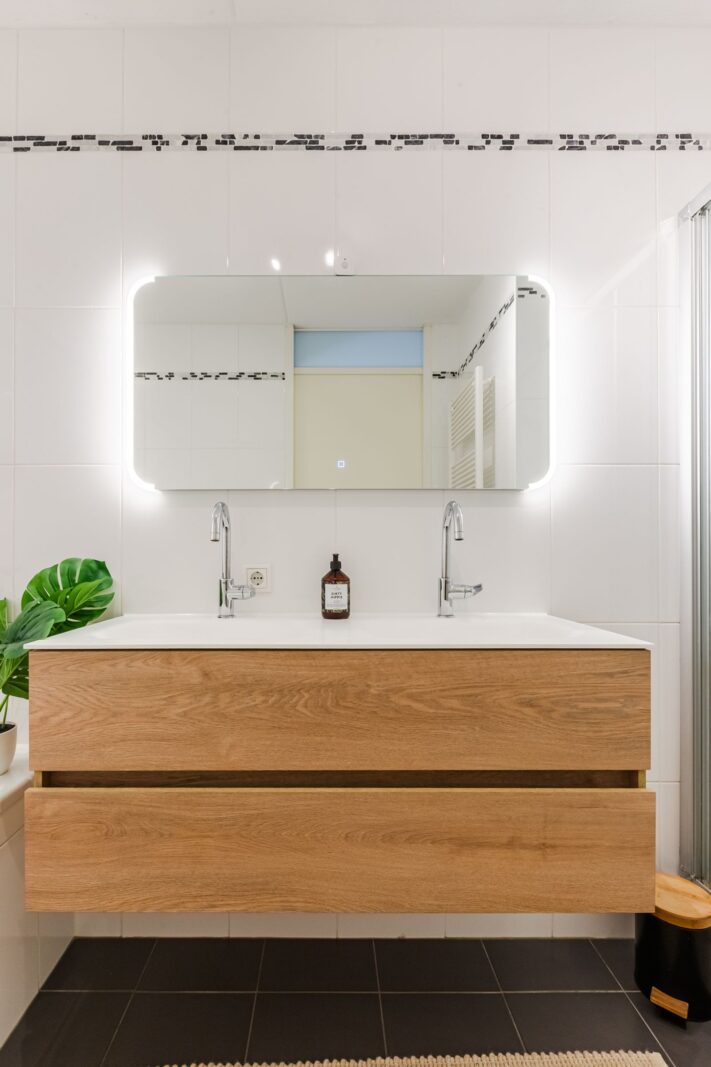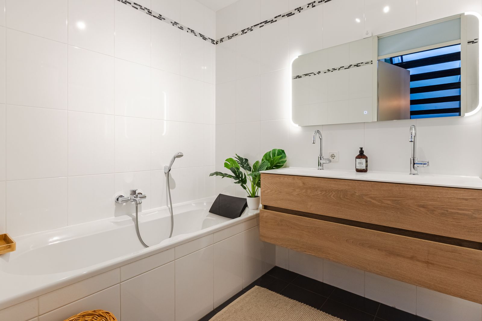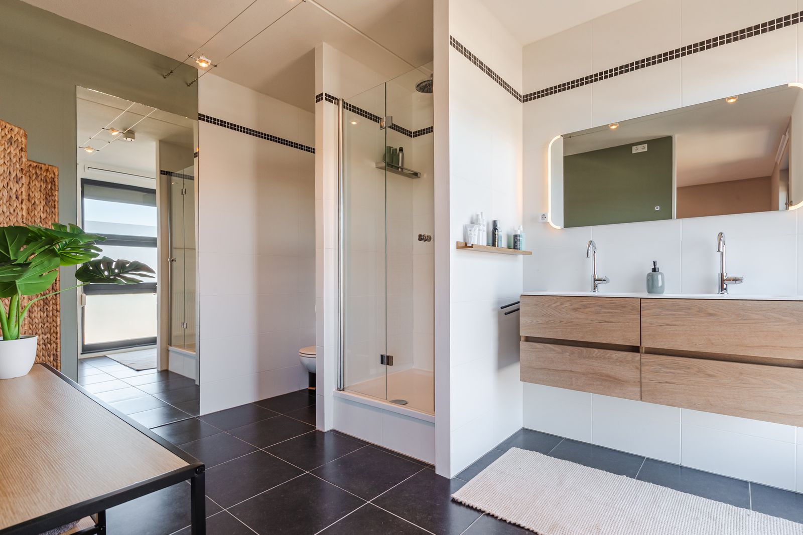 Daarnaast is er een apart toilet en een complete badkamer met ligbad, douche en dubbel wastafelmeubel.