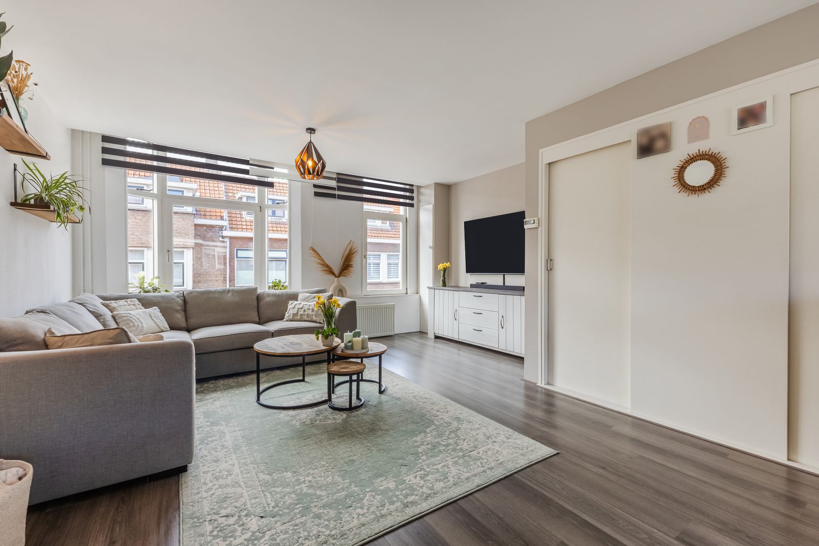 Ruime en lichte dubbele bovenwoning met drie slaapkamers, open keuken, een bar, luxe badkamer, zonnig dakterras en zonnepanelen in Schiedam West. Bovendien instapklaar; je woonplezier kan direct beginnen!