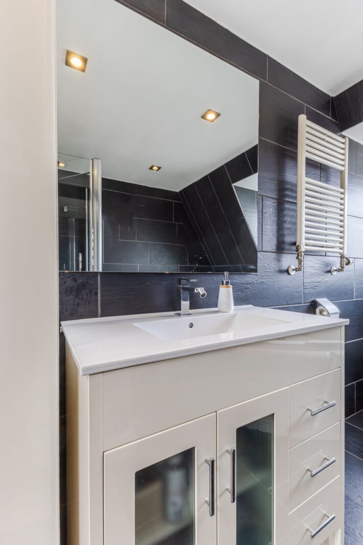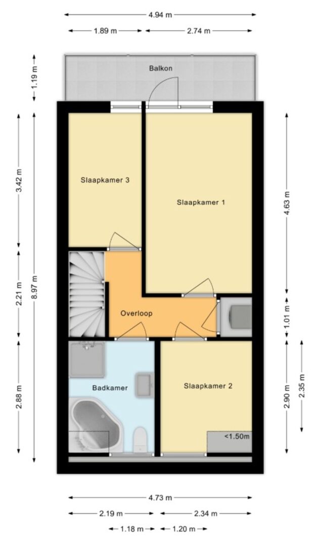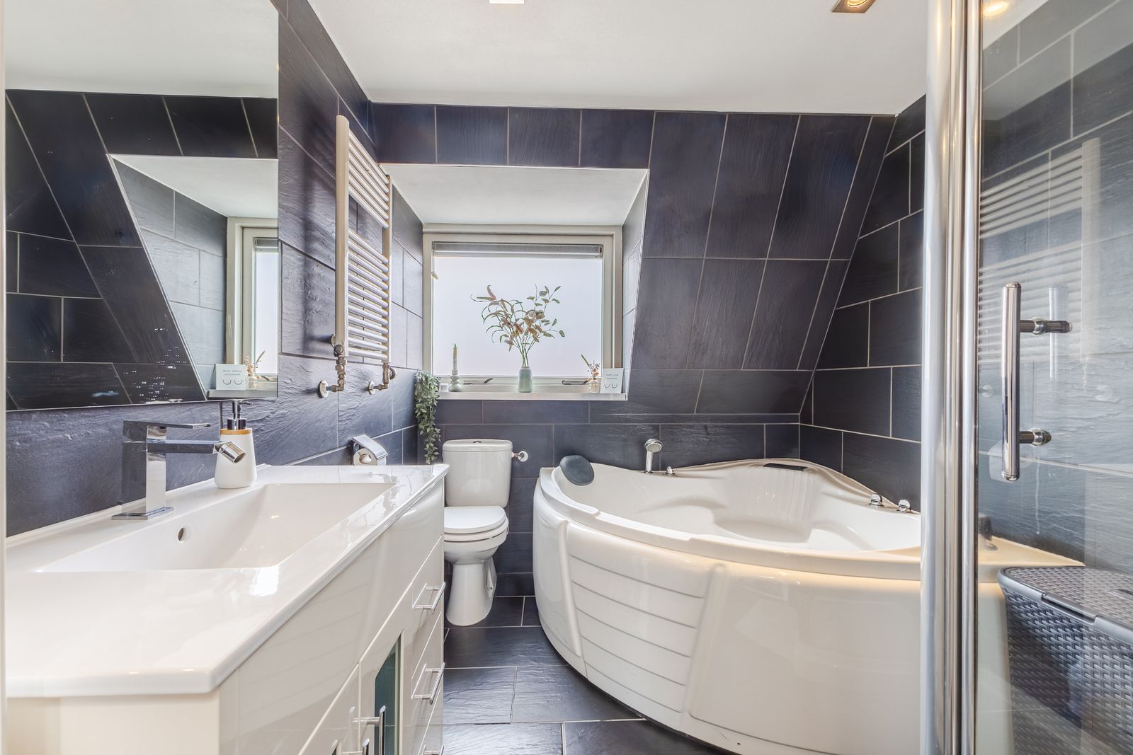 De handige indeling van de tweede etage zorgt voor optimaal gebruik van de ruimte. De hoofdslaapkamer is voorzien van airconditioning die de gehele etage zowel kan verkoelen als verwarmen. Vanuit de hoofdslaapkamer heb je toegang tot het balkon welke is bekleed met kunstgras. Verder nog twee slaapkamers waarvan één toegang geeft tot een vliering voor extra opbergruimte. De luxe badkamer met een extra groot ligbad zorgt voor ultieme ontspanning. De aparte kast met wateraansluiting zorgt ervoor dat de wasmachine en droger uit het zicht staan. De CV-ketel die de woning van warm water en verwarming voorziet, bevindt zich boven het trapgat welke netjes is afgewerkt in een kast.