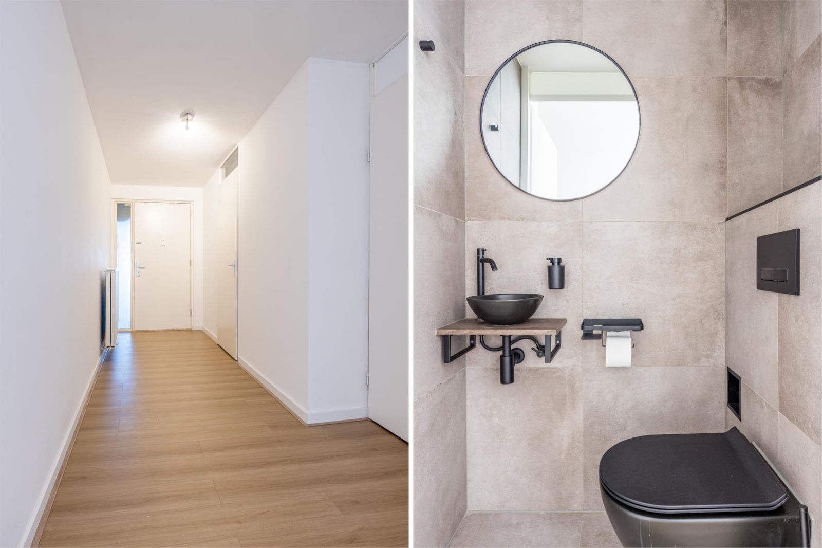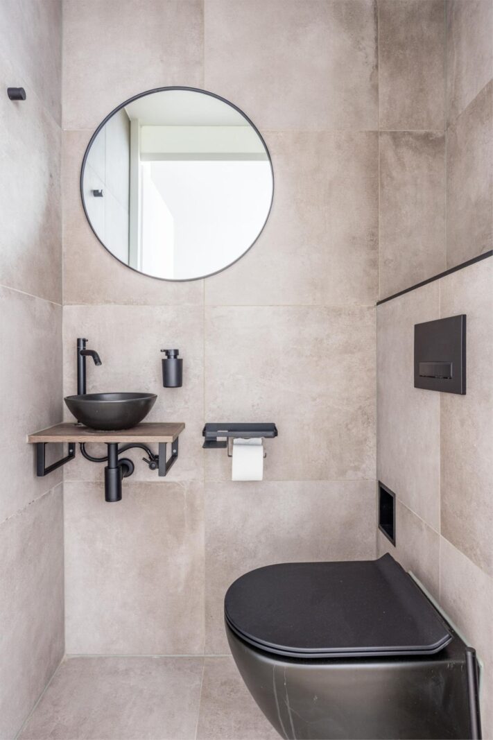 Het separate toilet is in dezelfde moderne stijl uitgevoerd.