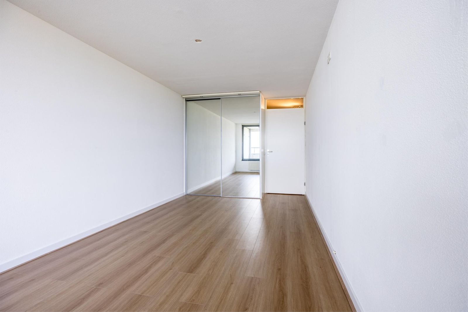 Het appartement beschikt over twee ruime slaapkamers, elk met grote raampartijen en een serene uitstraling.