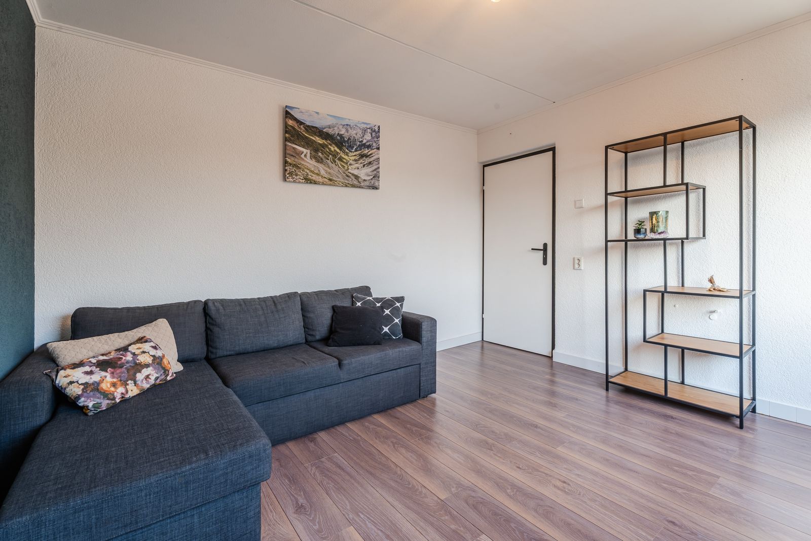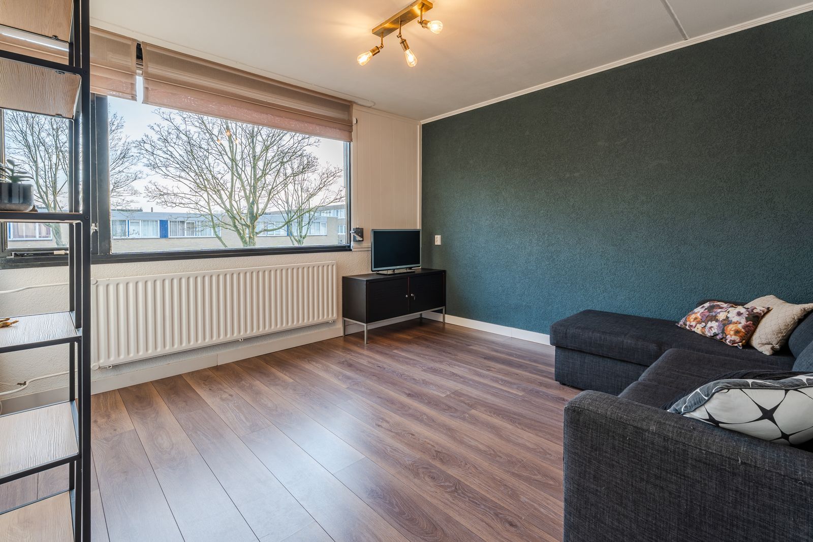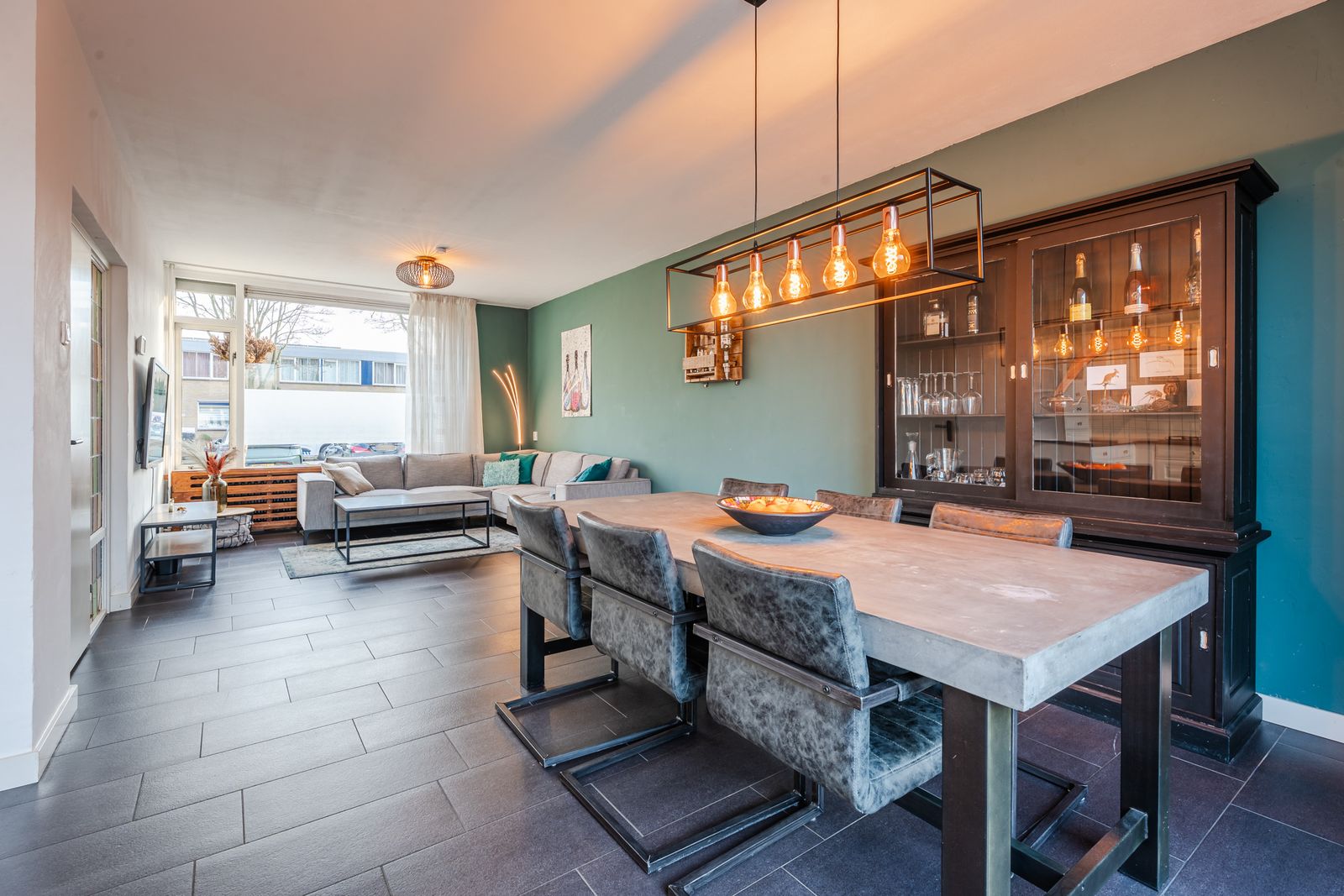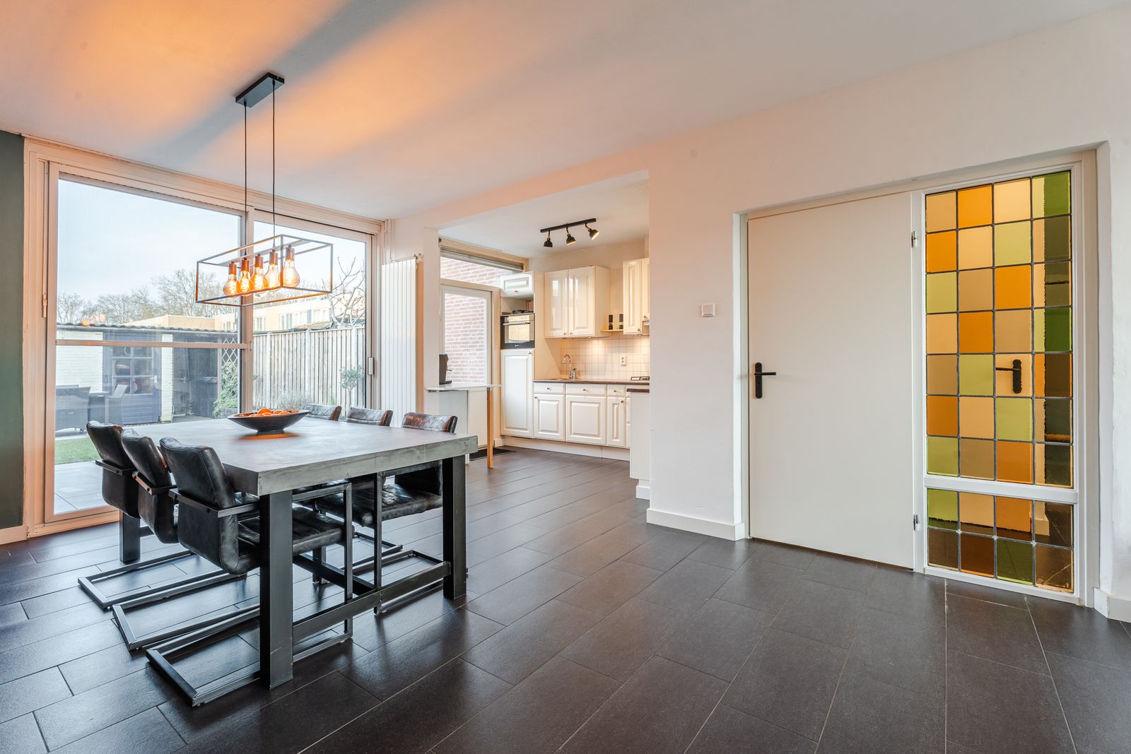 De lichte woonkamer biedt een prettige leefruimte met uitzicht op de tuin. De open keuken is praktisch ingedeeld en vormt een fijne plek om te koken en samen te komen.