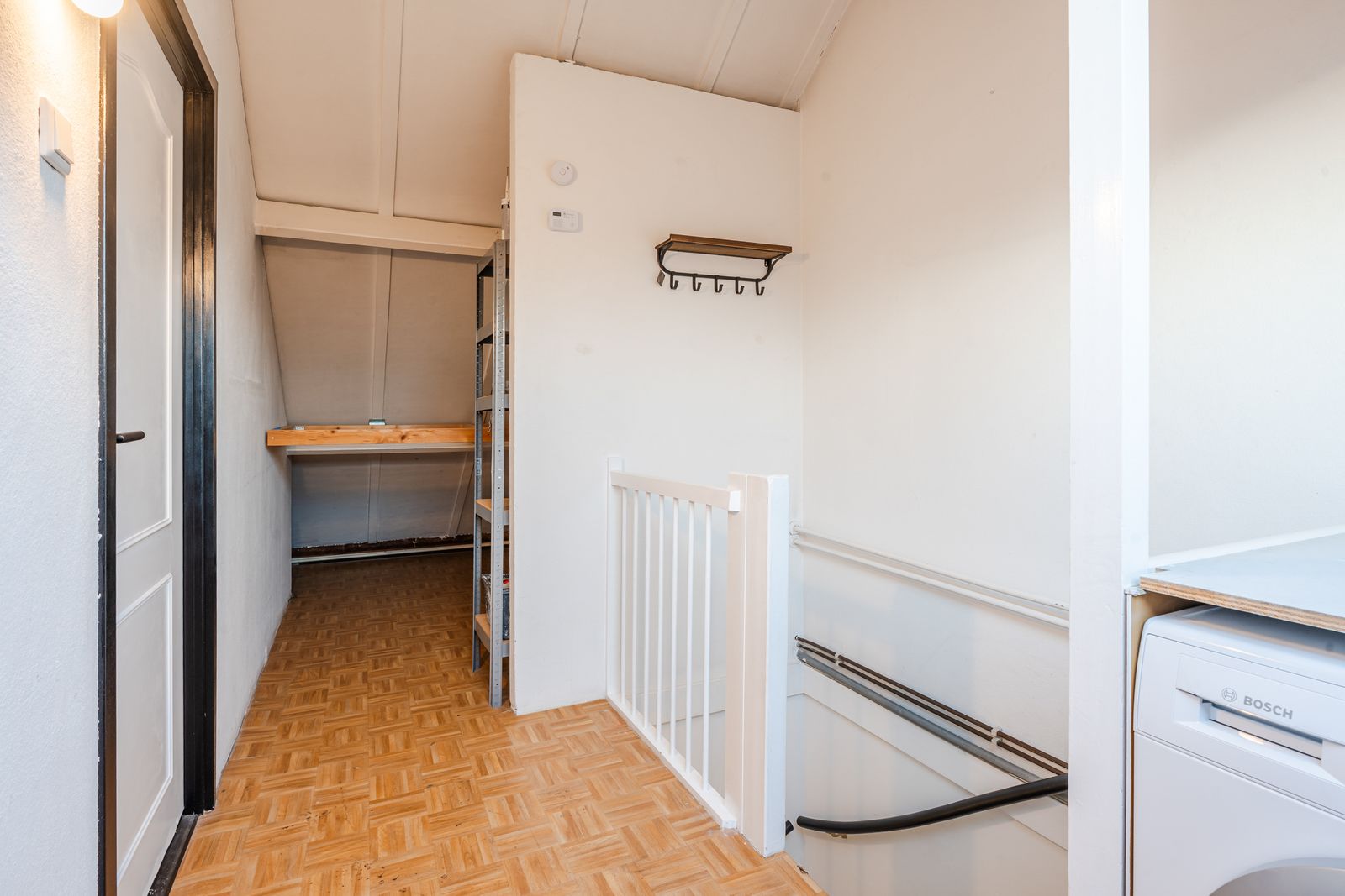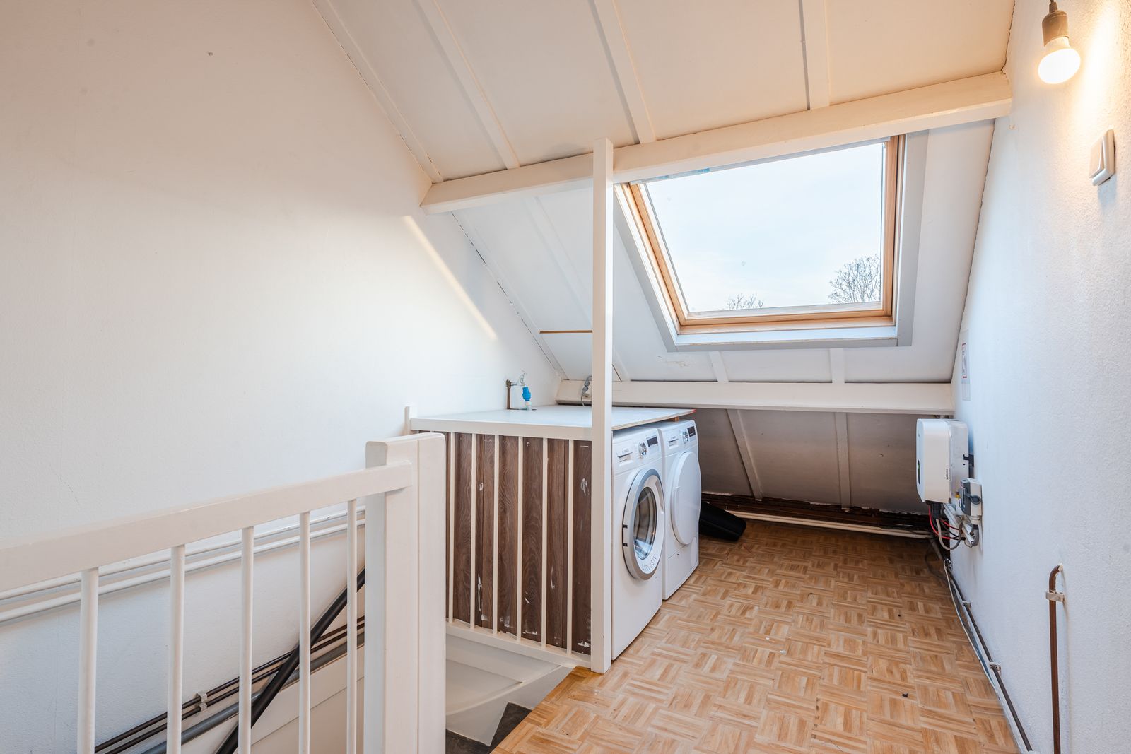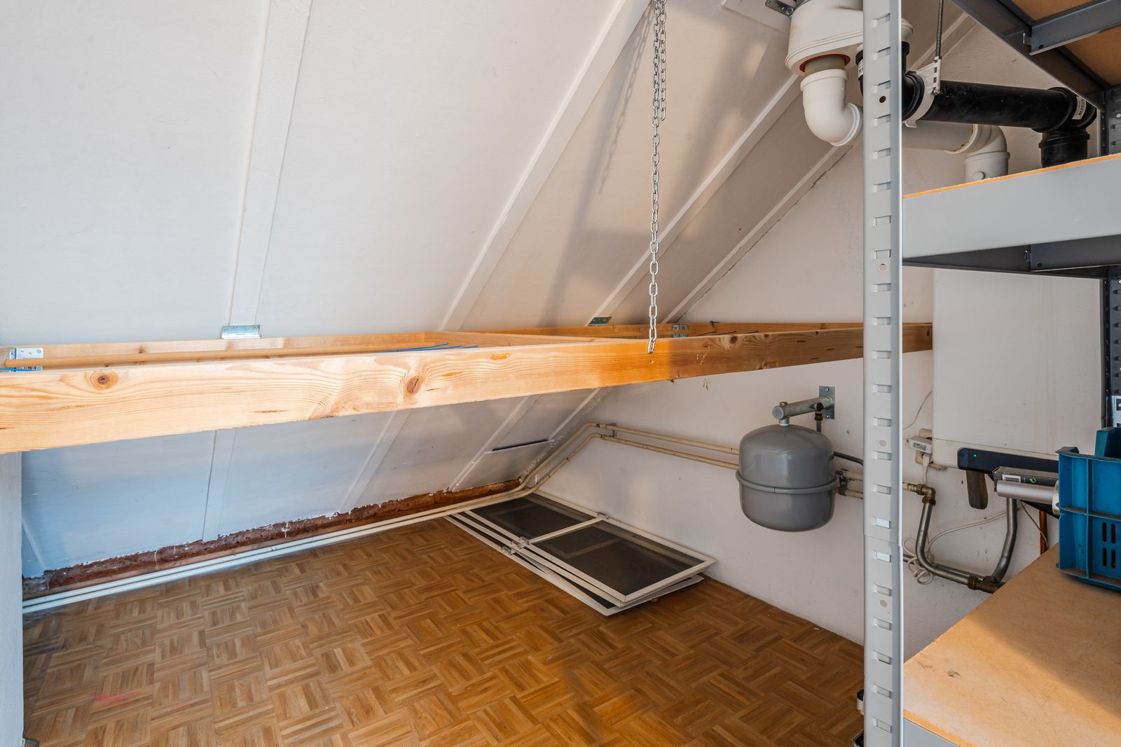 De zolderverdieping is ingericht als volwaardige vierde slaapkamer en beschikt over twee ingebouwde/inloopkasten en een wastafel. Daarnaast is er extra bergruimte achter de knieschotten, ideaal voor het opbergen van seizoensspullen.