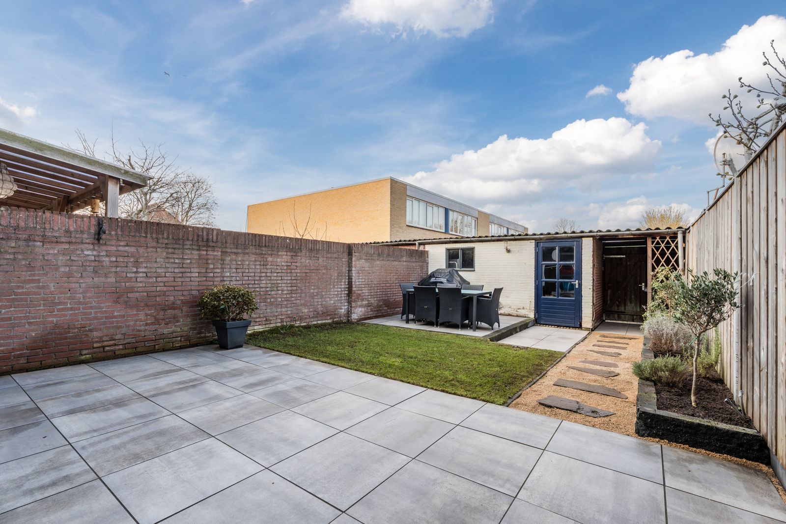 De achtertuin is een fijne plek om te ontspannen, te spelen of gezellig te barbecueën. In de zomer geniet je hier heerlijk van de zon in de middag en avond. De tuin is bovendien ook via een achterom bereikbaar. Achter in de tuin staat een praktische berging, ideaal voor fietsen en tuingereedschap.
