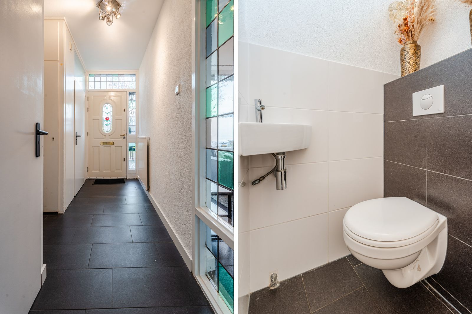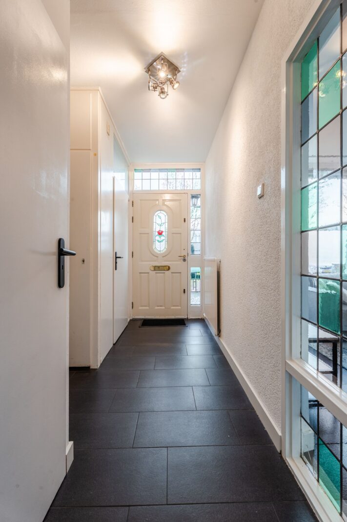 Via de entree kom je in de hal met toilet, bergkast en toegang tot de woonkamer en keuken.