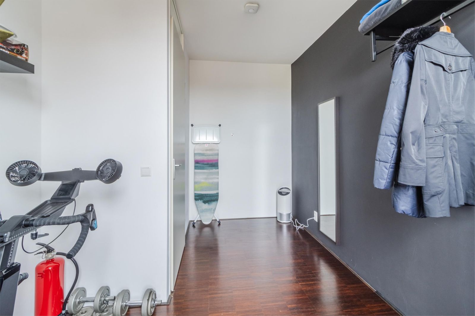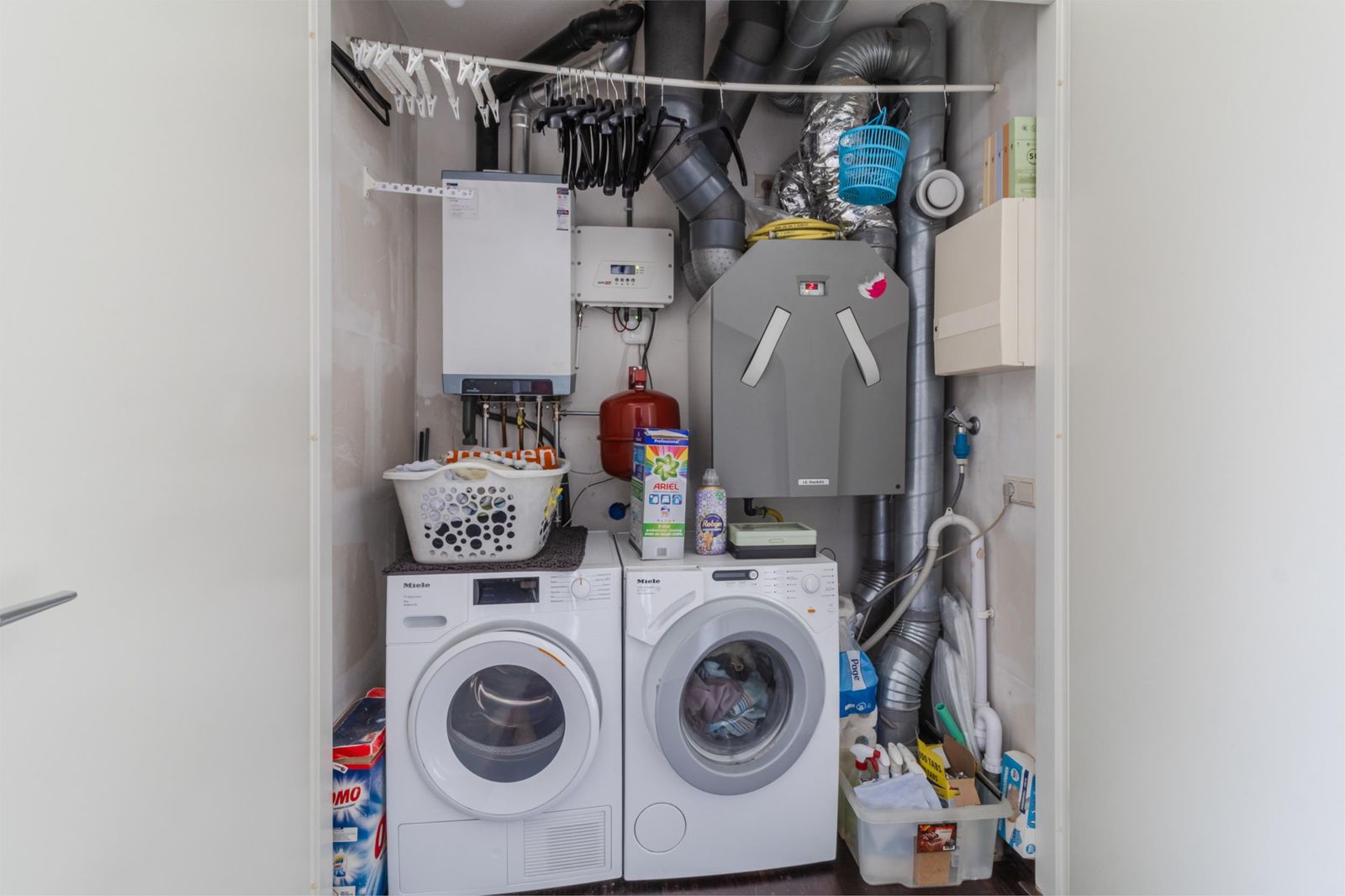 Overloop met toegang tot de badkamer en de 2 slaapkamers, beide voorzien van airconditioning, welke nu dienen als kantoor en sportkamer. Ook is er een afgeschermde ruimte met opstelling van de wasapparatuur, cv-combiketel (Intergas uit 2008), de WTW-unit en omvormer van de zonnepanelen.