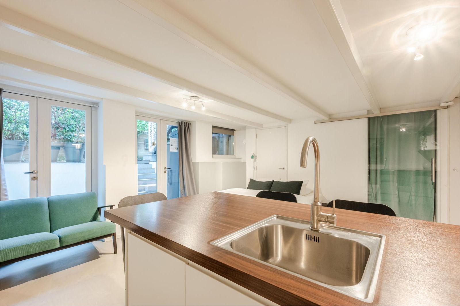 - Ruimte & Licht: Hoge plafonds (tot 3,80 m) en grote ramen zorgen voor een open en rustige sfeer.