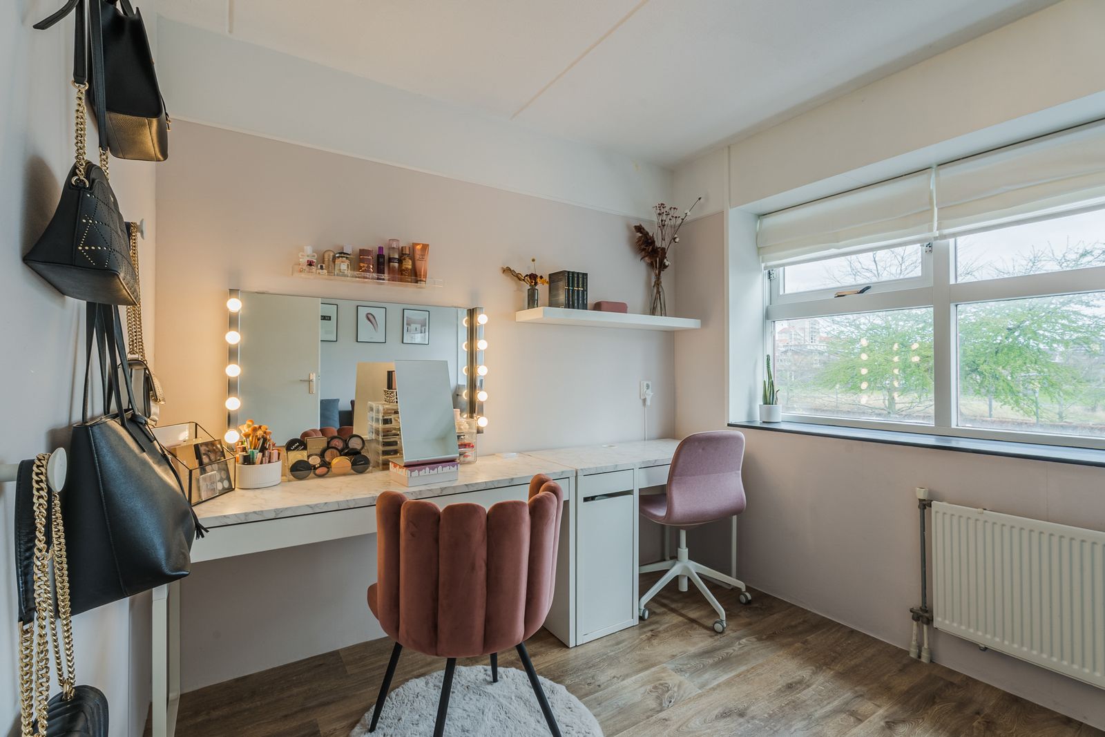 Op de eerste verdieping bevinden zich twee slaapkamers. De kleinere slaapkamer ligt aan de voorzijde, de ruime hoofdslaapkamer aan de tuinzijde. De hoofdslaapkamer is groot genoeg om te splitsen, waardoor je eenvoudig een extra vierde slaapkamer creëert.