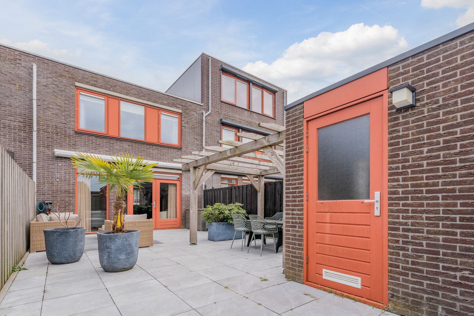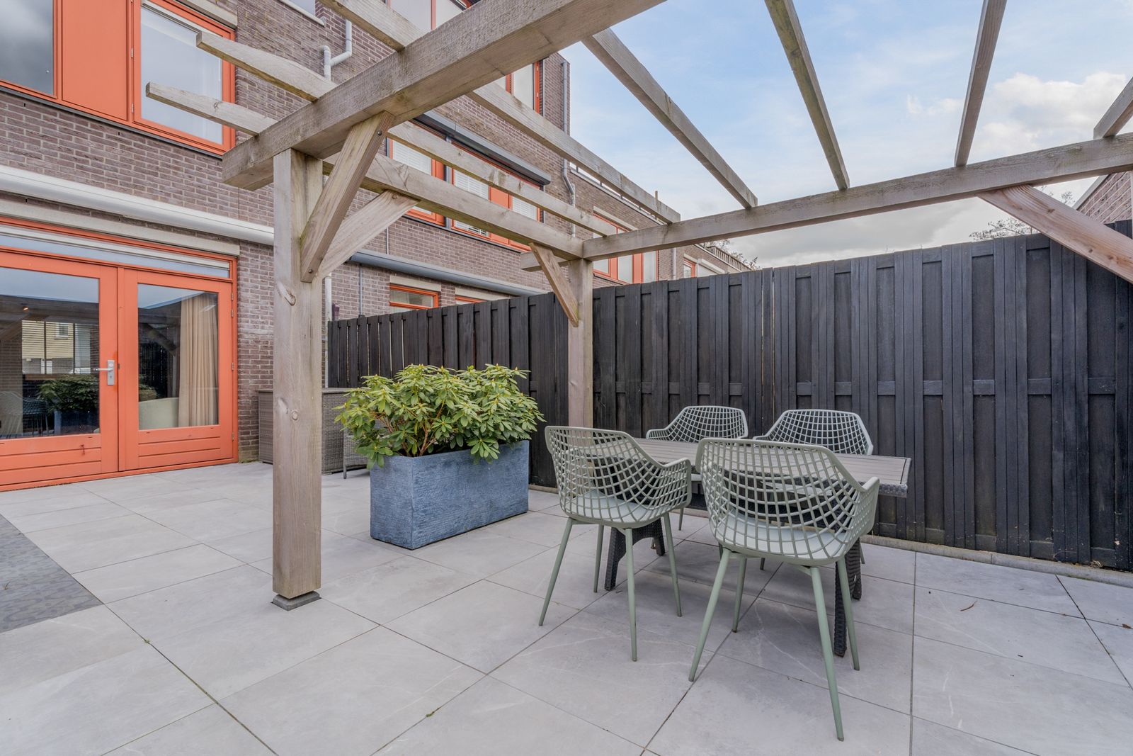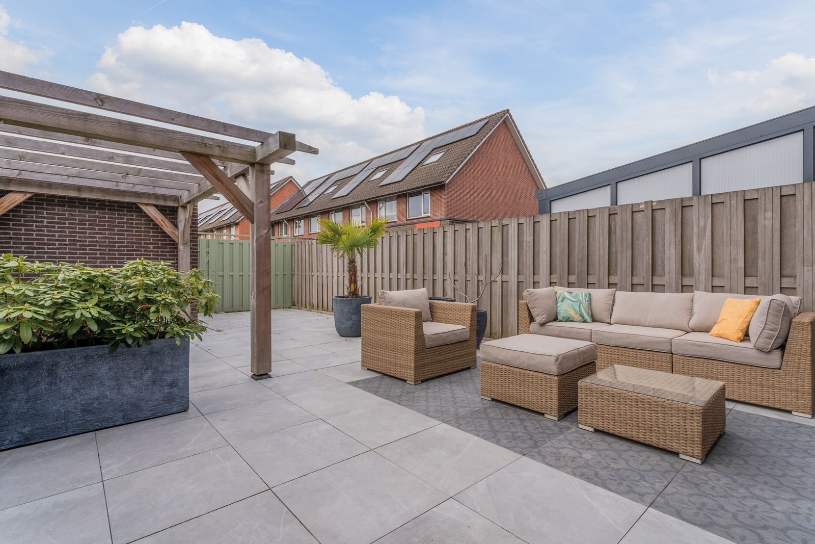 De achtertuin van 64 m² ligt op het noordwesten en is ruim en verzorgd aangelegd. In 2023 is de tuin volledig opnieuw betegeld. Achterin staat een stenen berging met elektra en via de achterom is de tuin goed bereikbaar.