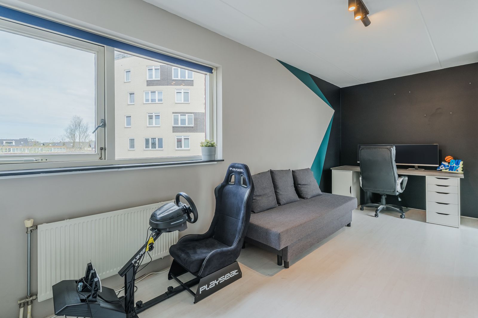 Op de tweede verdieping ligt de derde slaapkamer. Hier bevinden zich ook de aansluitingen voor de wasmachine, wat deze verdieping extra praktisch maakt. Er is hier ook een mogelijkheid om een dakterras aan te leggen.