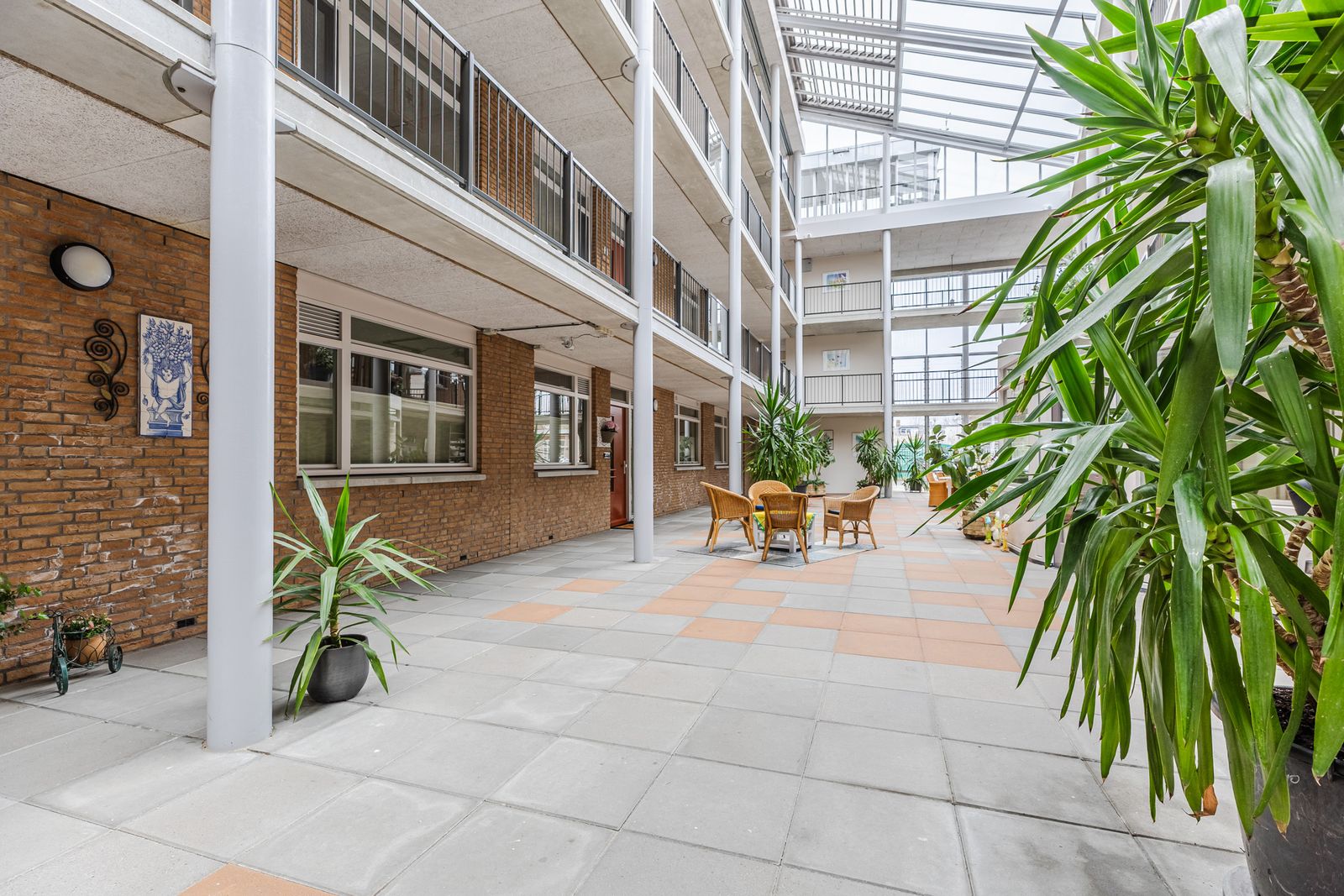 Als u het gebouw benadert treft u naast de centrale entree het bellentableau en de brievenbussen. In de afgesloten hal vind u de lift, het trappenportaal en de toegang naar het Atrium.