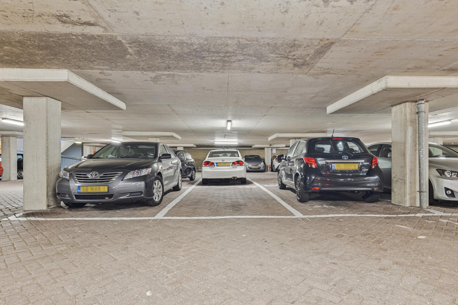 Het appartement beschikt over een eigen parkeerplaats in de afgesloten parkeergarage. Daarnaast is er een separate berging aanwezig in de onderbouw, ideaal voor het stallen van fietsen en extra opslag.