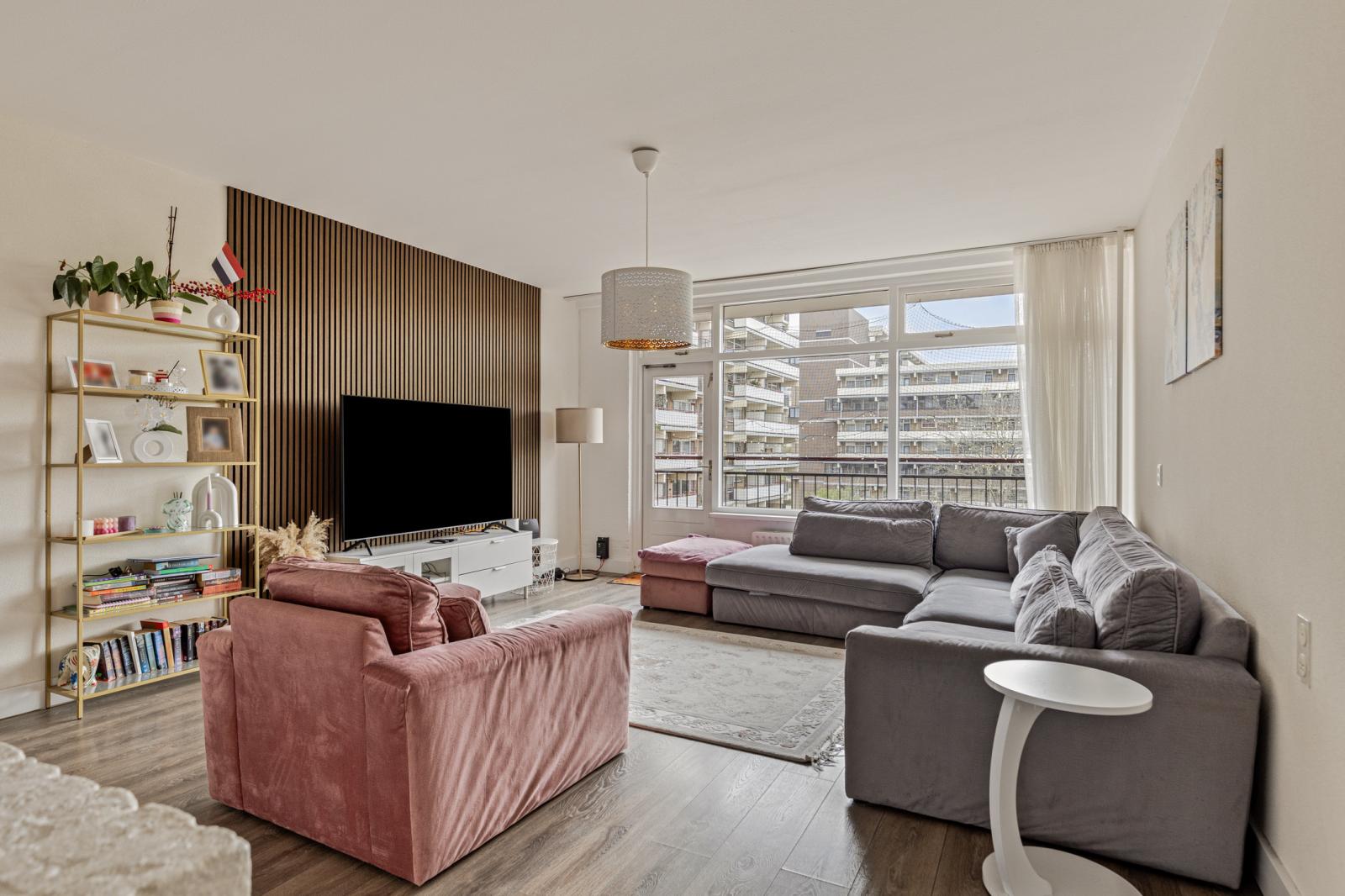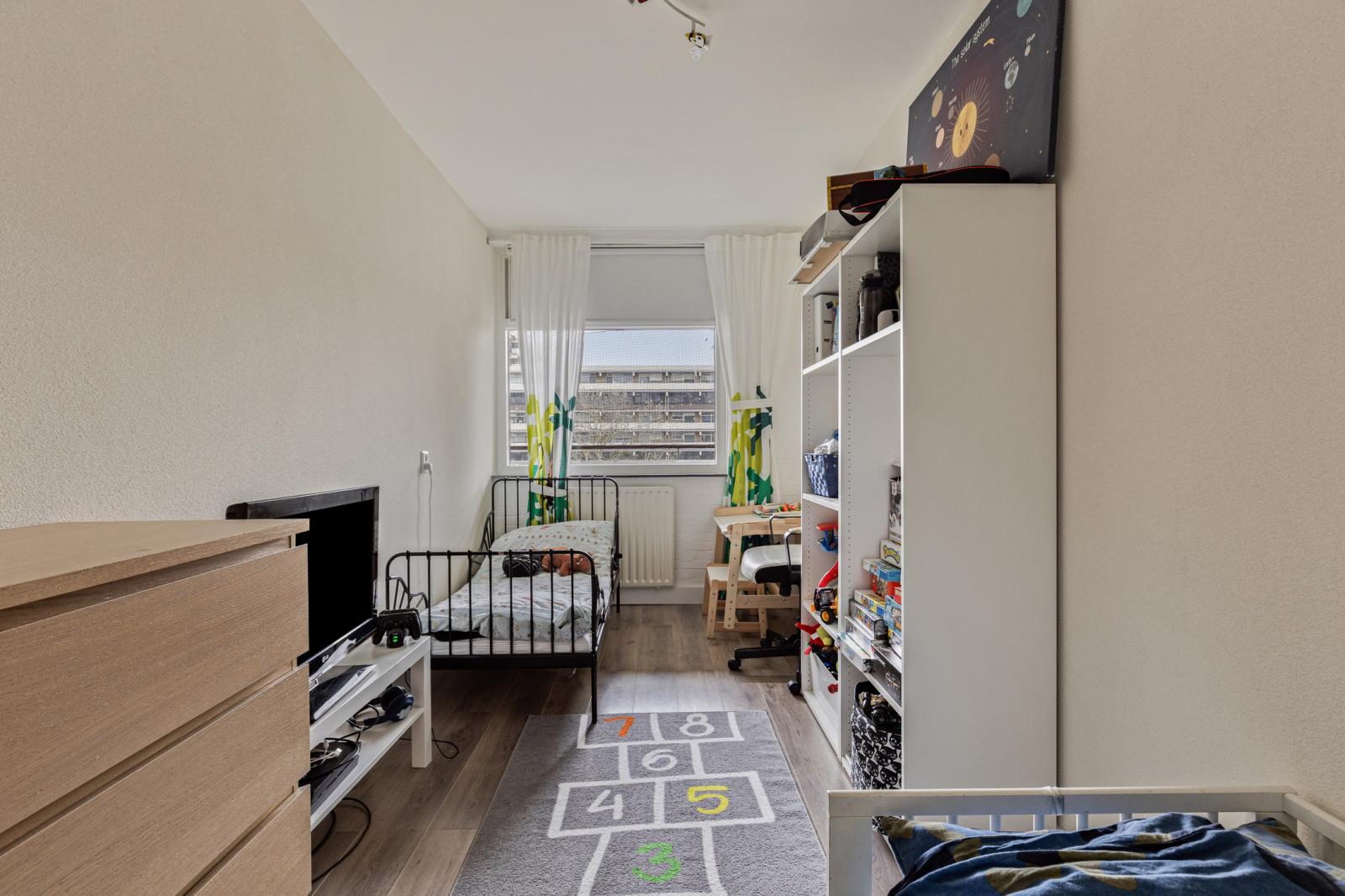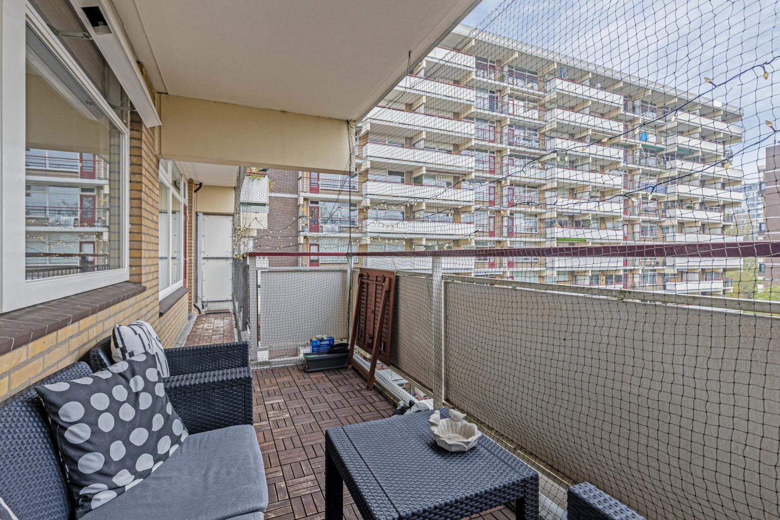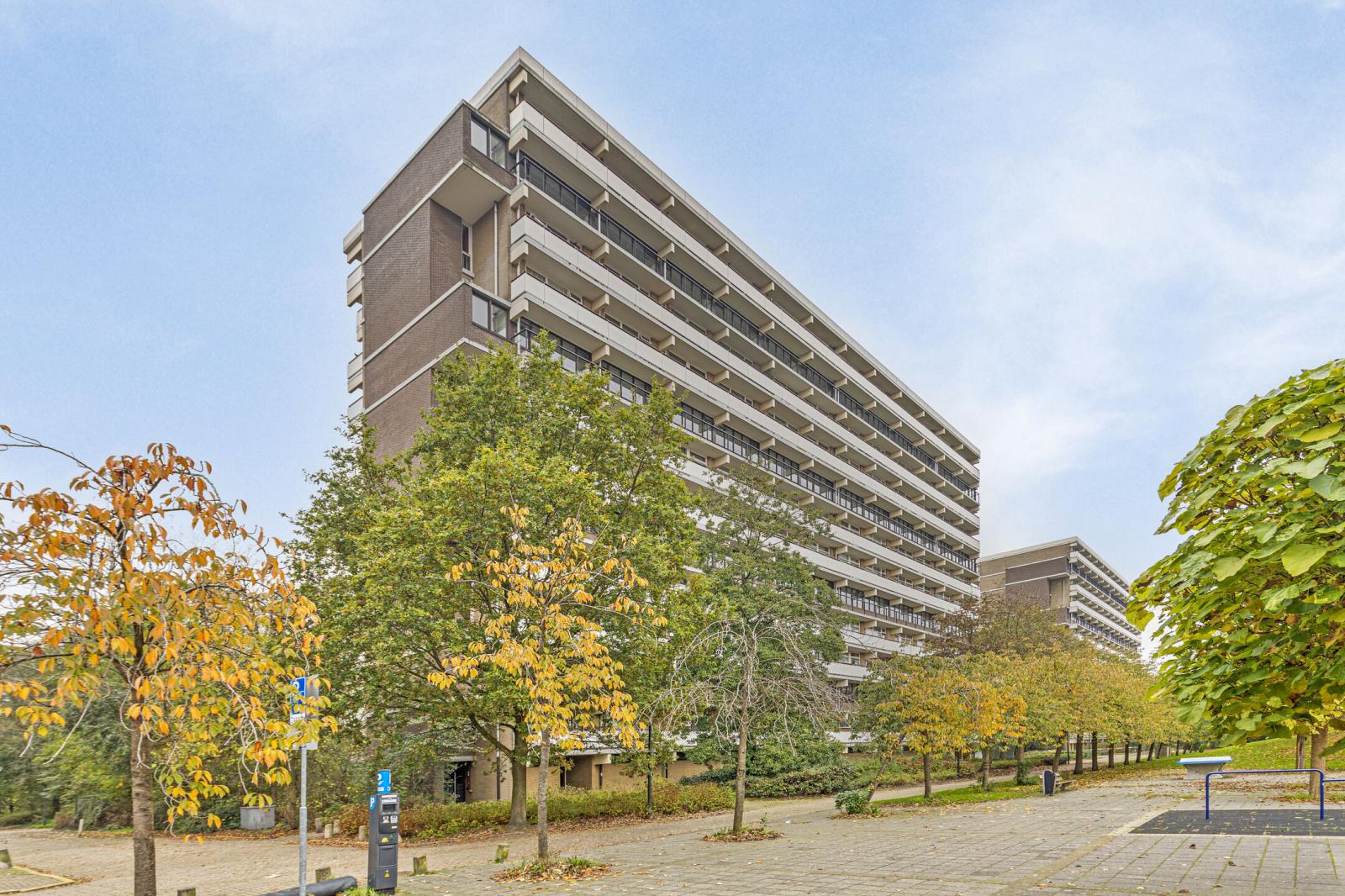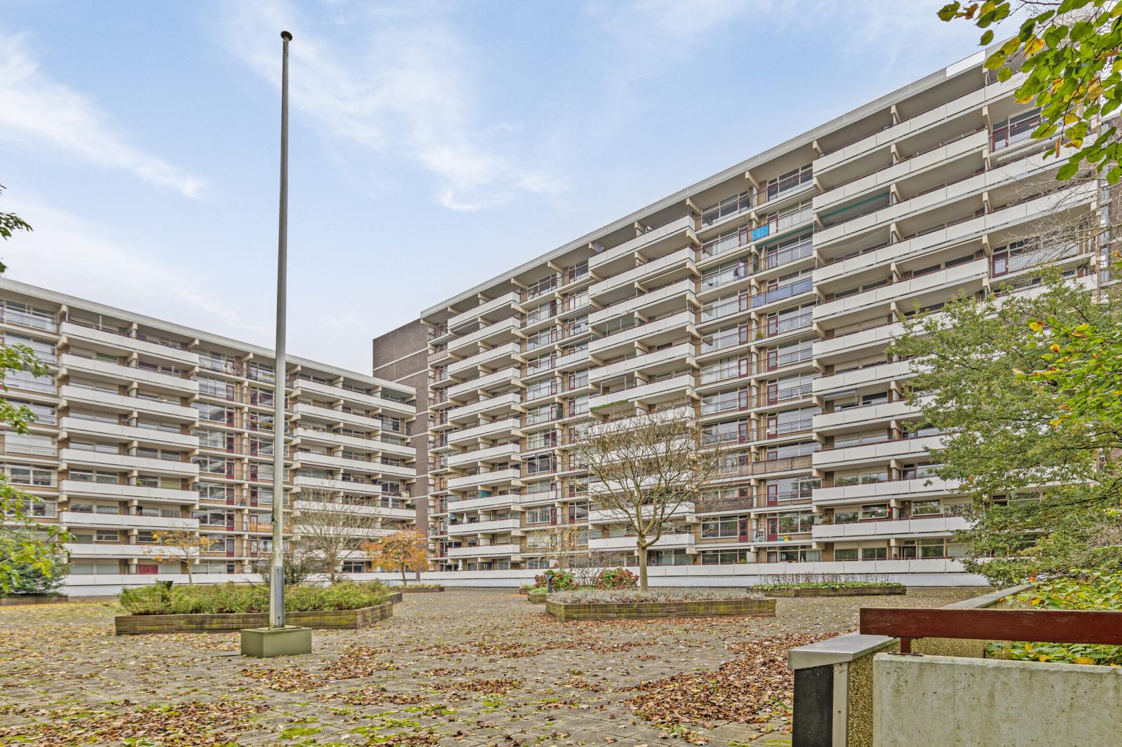 Comfortabel en licht 4-kamerappartement verdeeld over twee woonlagen, met entree op de 5e verdieping en de woonverdieping op de 6e verdieping. De woning beschikt over drie slaapkamers, twee zonnige balkons (zuidwest en noordoost), een eigen parkeerplaats en een separate berging.