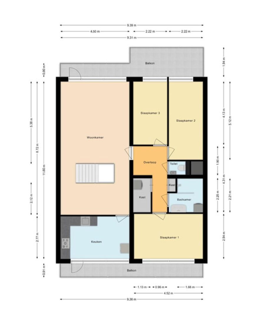 - Twee balkons (zuidwest en noordoost)