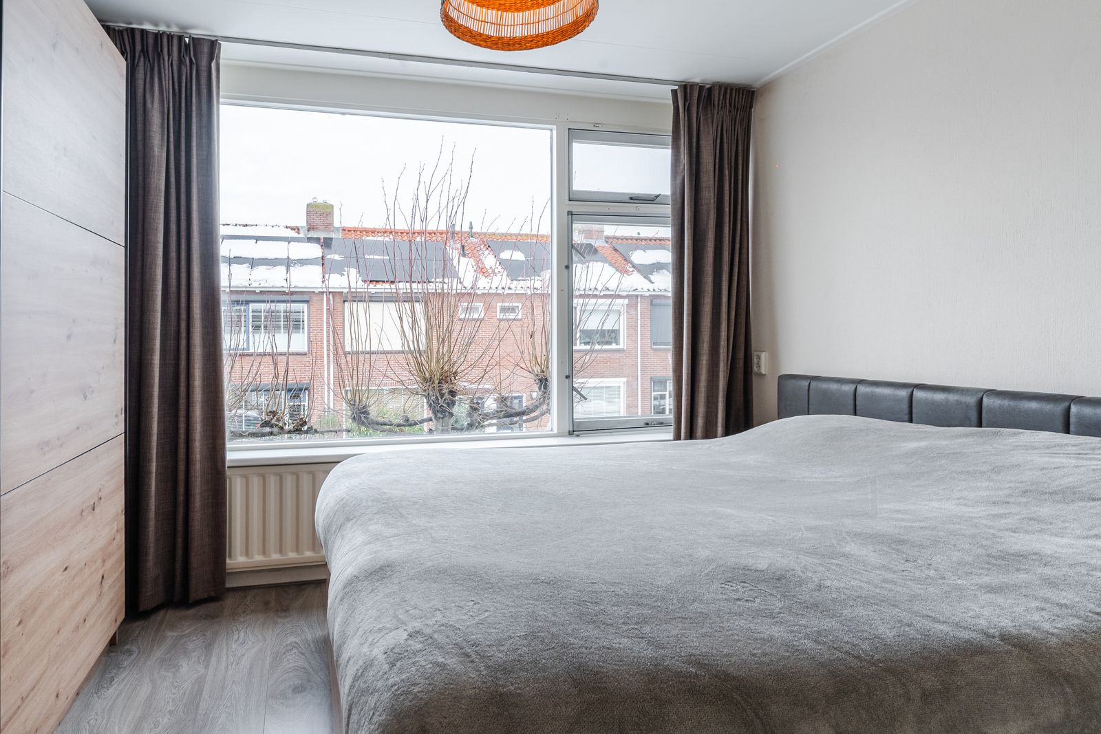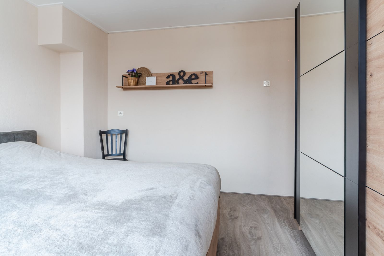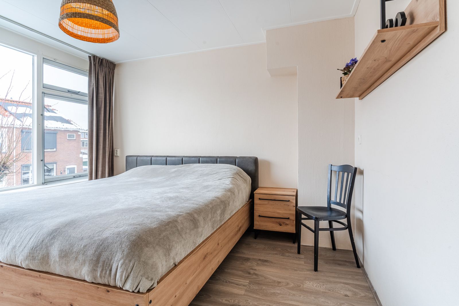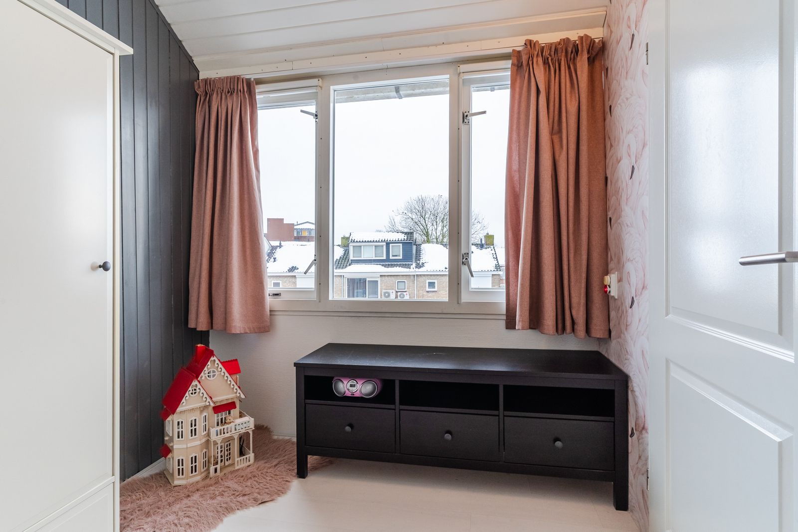Een tweede vaste trap brengt ons naar de bovenverdieping waar ruimte is voor een kantoor met ruim uitzicht vanuit de dakkapel over de huizen. Op deze verdieping bevindt zich nog een mooie ruime slaapkamer. Achter de schotten, over de hele linkerkant van de zolder, is veel opbergruimte. De CV zit ook netjes verwerkt achter een schot op de slaapkamer.