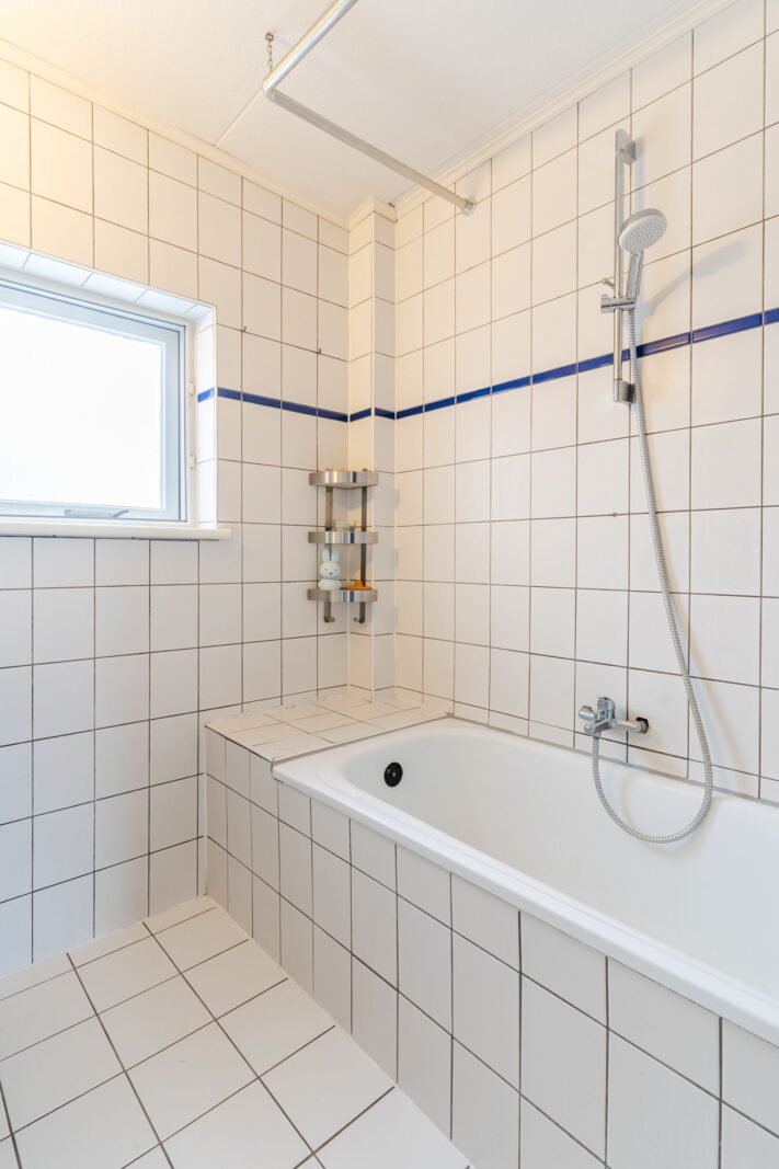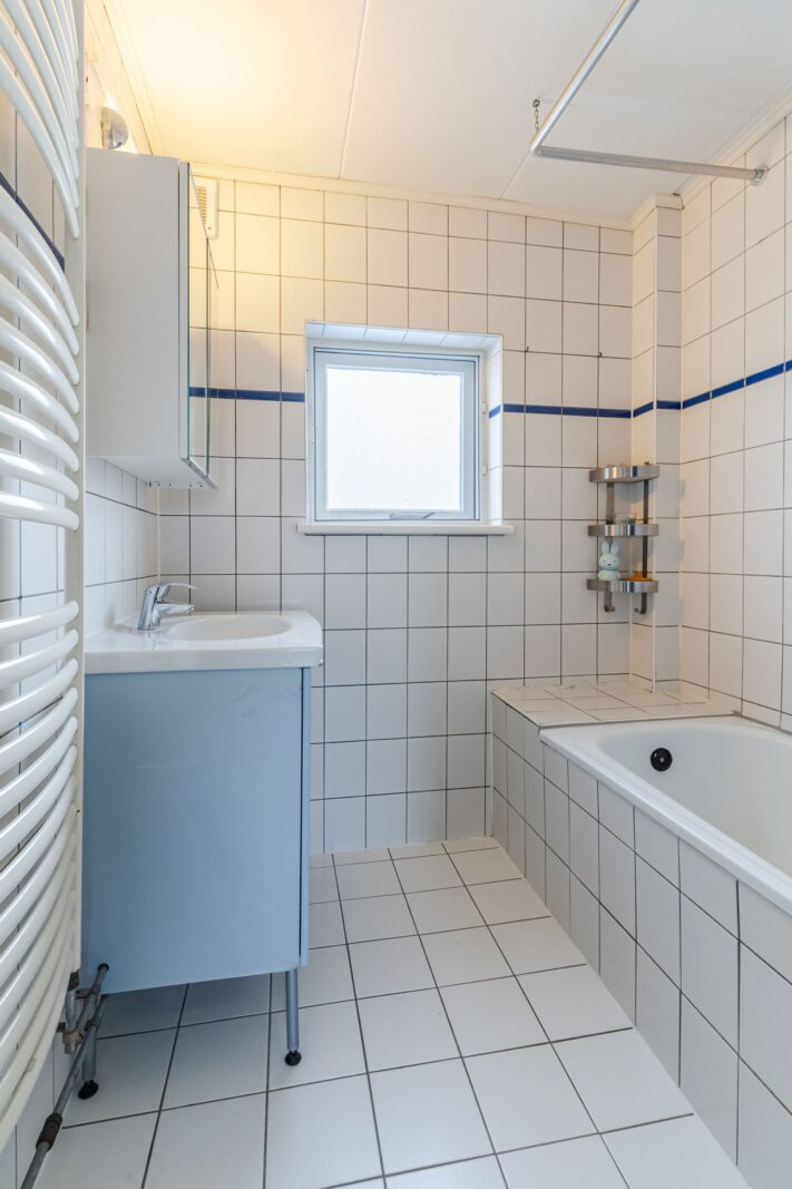 Via de vaste trap gaan we naar boven waar we terecht komen op de overloop die toegang geeft aan 3 slaapkamers en de badkamer. In de kleinste slaapkamer zitten leidingen zodat hier de mogelijkheid is om een waskamer te maken. De badkamer is voorzien van een wastafel en een ligbad / douchecombi.