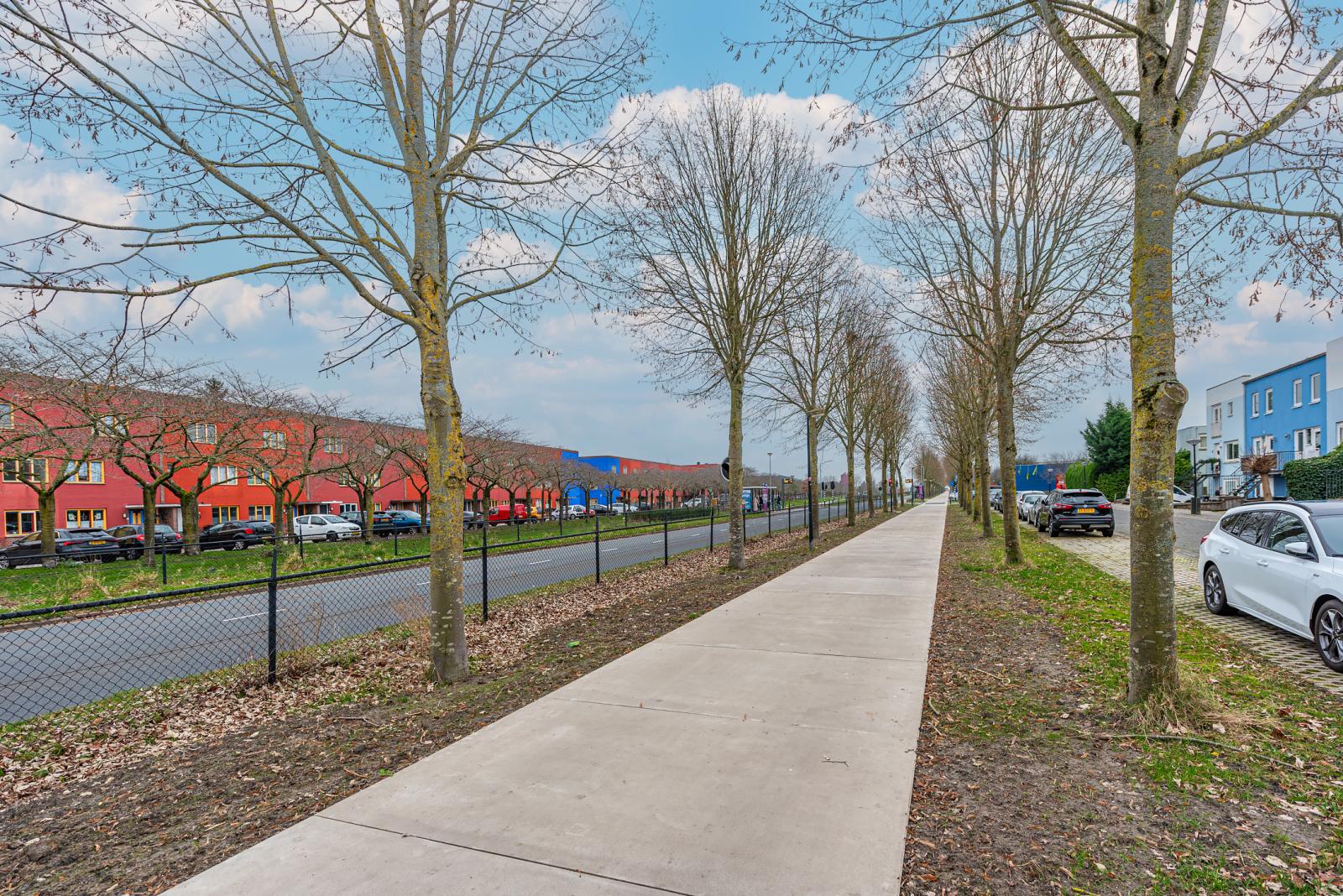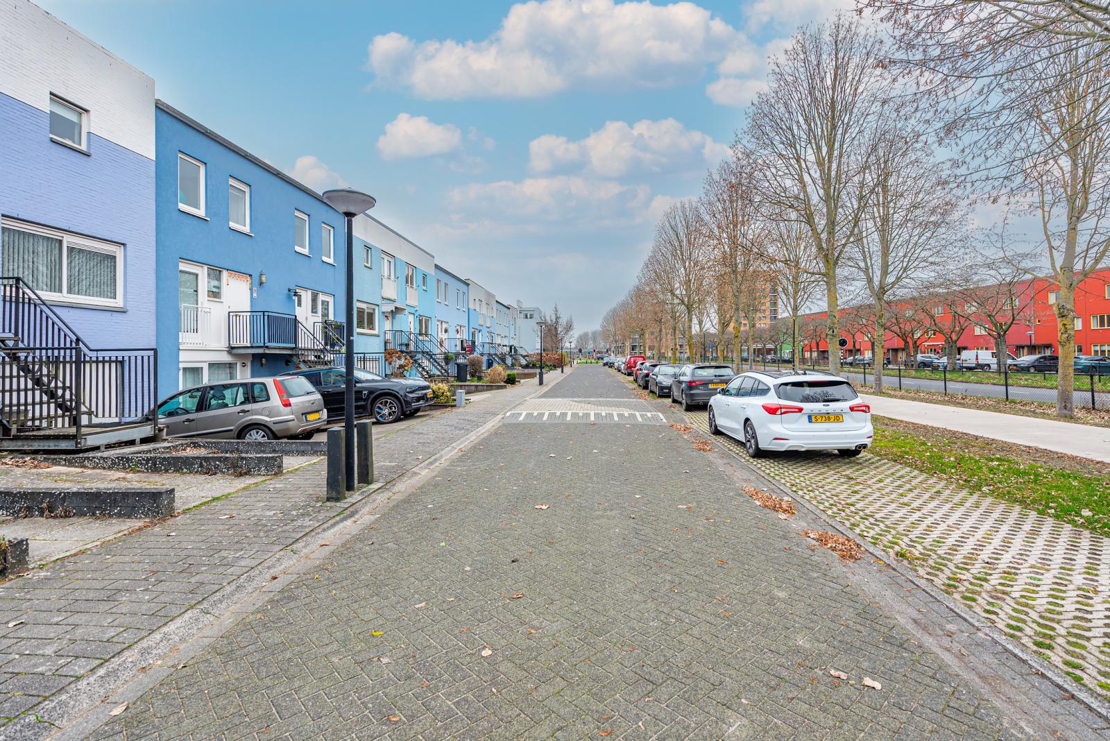 Alle dagelijkse voorzieningen zoals winkels, scholen, sportfaciliteiten en openbaar vervoer zijn op korte afstand aanwezig. Daarnaast ben je met de auto of bus binnen enkele minuten in Almere Centrum of op de A6 richting Amsterdam. Ook diverse natuurgebieden bevinden zich in de nabije omgeving. De Regenboogbuurt staat bekend om haar kleurrijke en speelse architectuur, geïnspireerd door de beroemde architect Bruno Taut. Om deze bijzondere woonwijk te beschermen heeft de gemeente Almere de Regenboogbuurt tot beschermd stadsgezicht uitgeroepen. Iedere bewoner dient zich aan de door de architect bepaalde kleuren te houden. Voor meer informatie kunt u terecht bij de gemeente Almere. Project 'Rhapsody in Blue' is onderdeel van de 'Regenboogbuurt'; de kleurrijkste buurt van Almere. Kenmerkend voor dit project is het gezamenlijke pompsysteem om wateroverlast te voorkomen, een binnentuin met speelterrein en groenvoorzieningen. Voor het beheer van het pompsysteem is er een VvE opgericht. De jaarlijkse bijdrage per eigenaar bedraagt € 80,00.