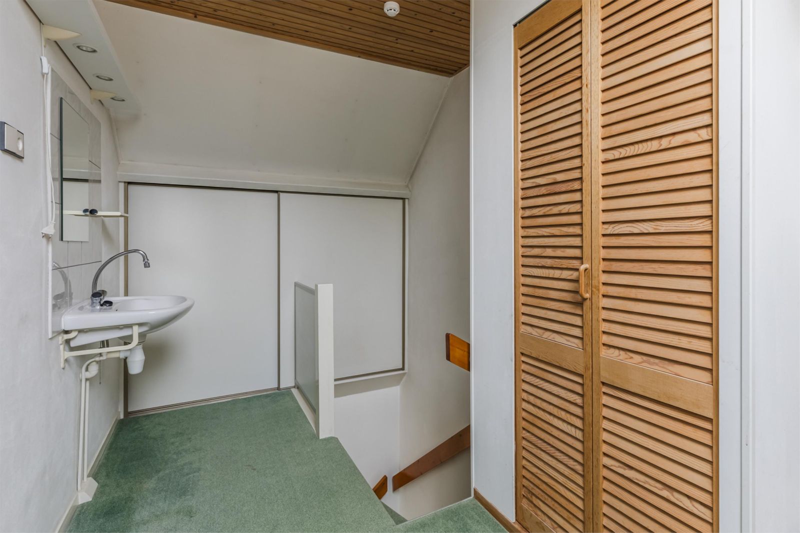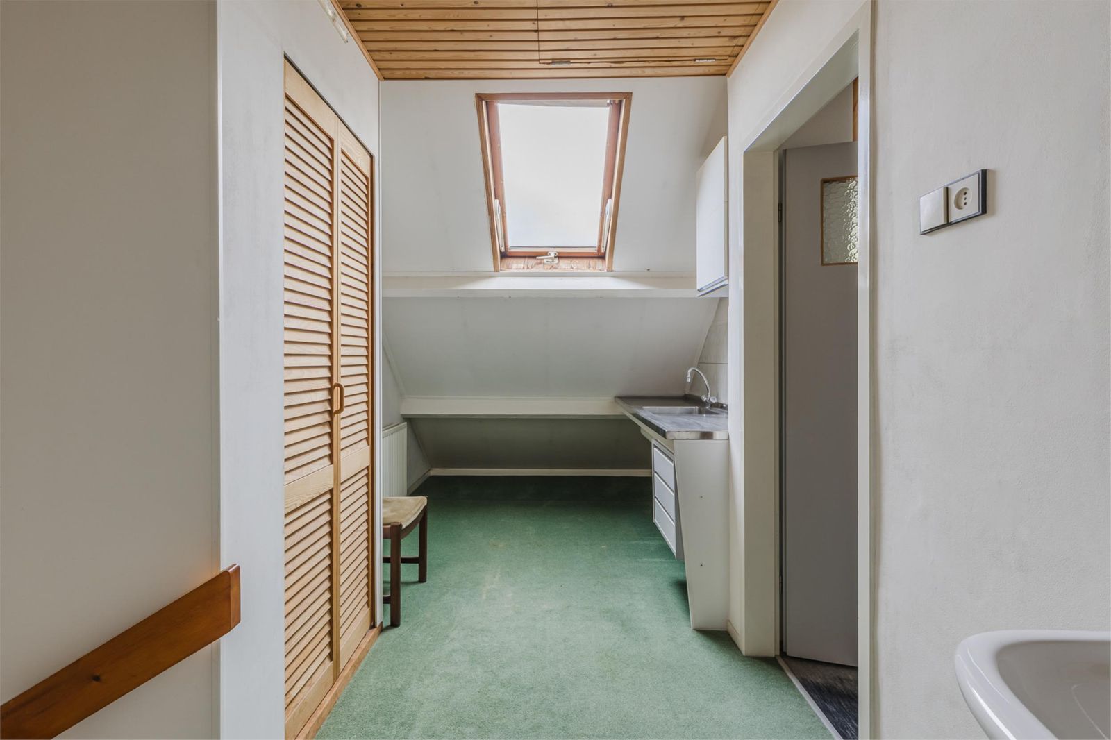 Riante zolderverdieping met veel bergruimte, een wastafel en een royale vierde slaapkamer met een dakkapel.