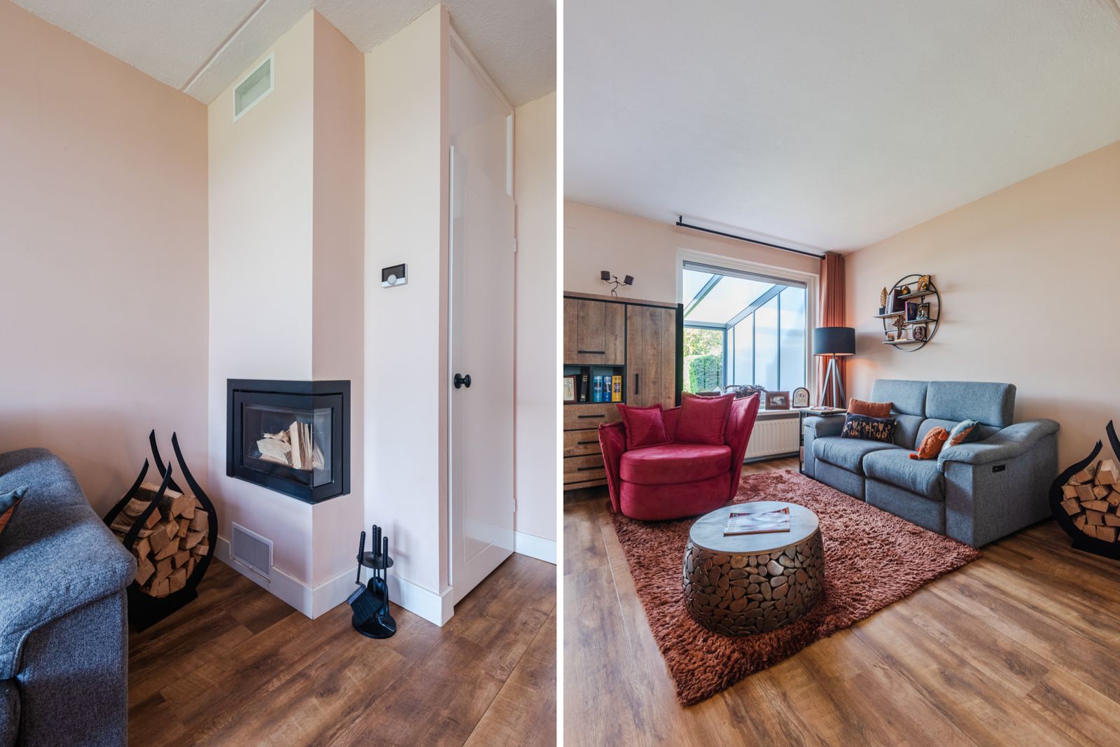 •Sfeervolle woonkamer met houtkachel