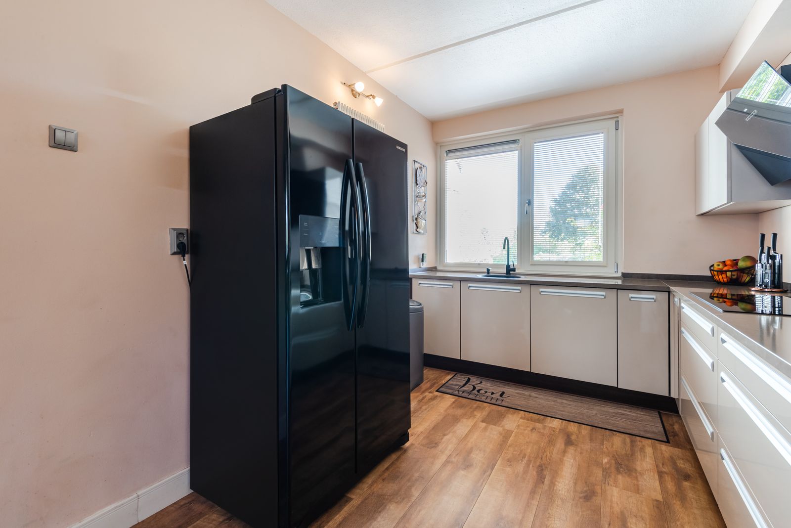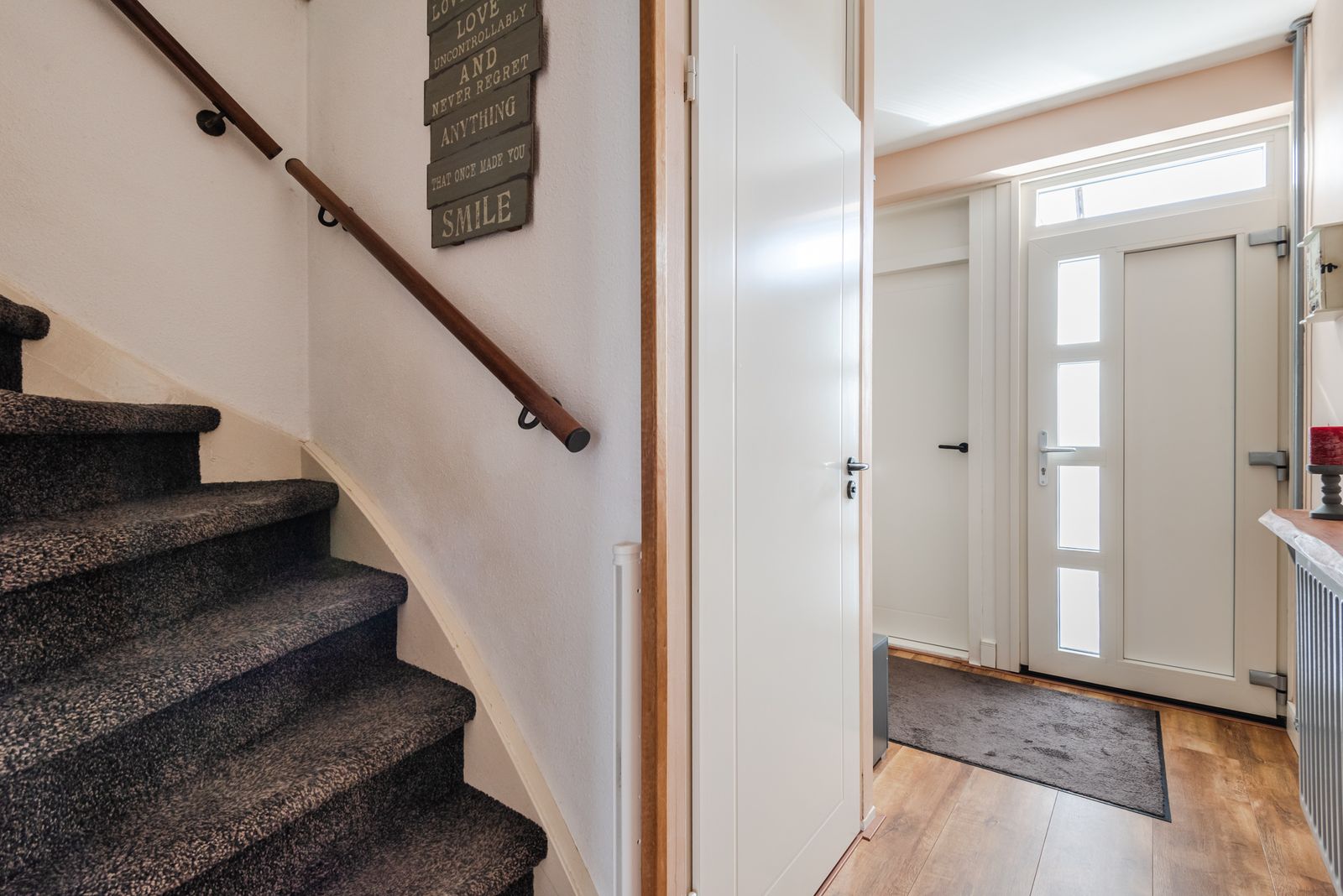 De gehele begane grond is voorzien van een nette laminaatvloer en strak gestuukte wanden.
