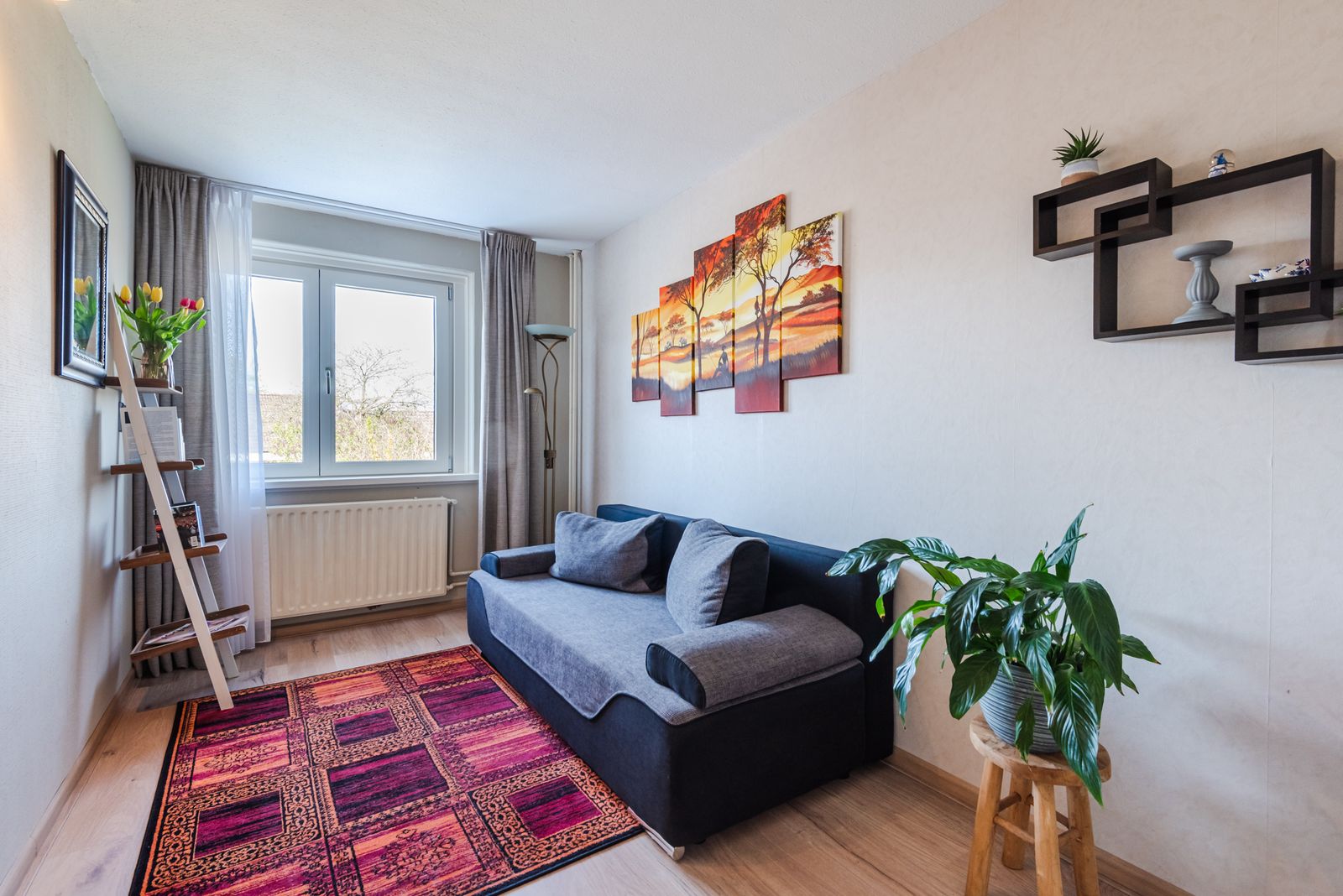 Dankzij het grote raam profiteert deze ruimte van veel natuurlijk licht.