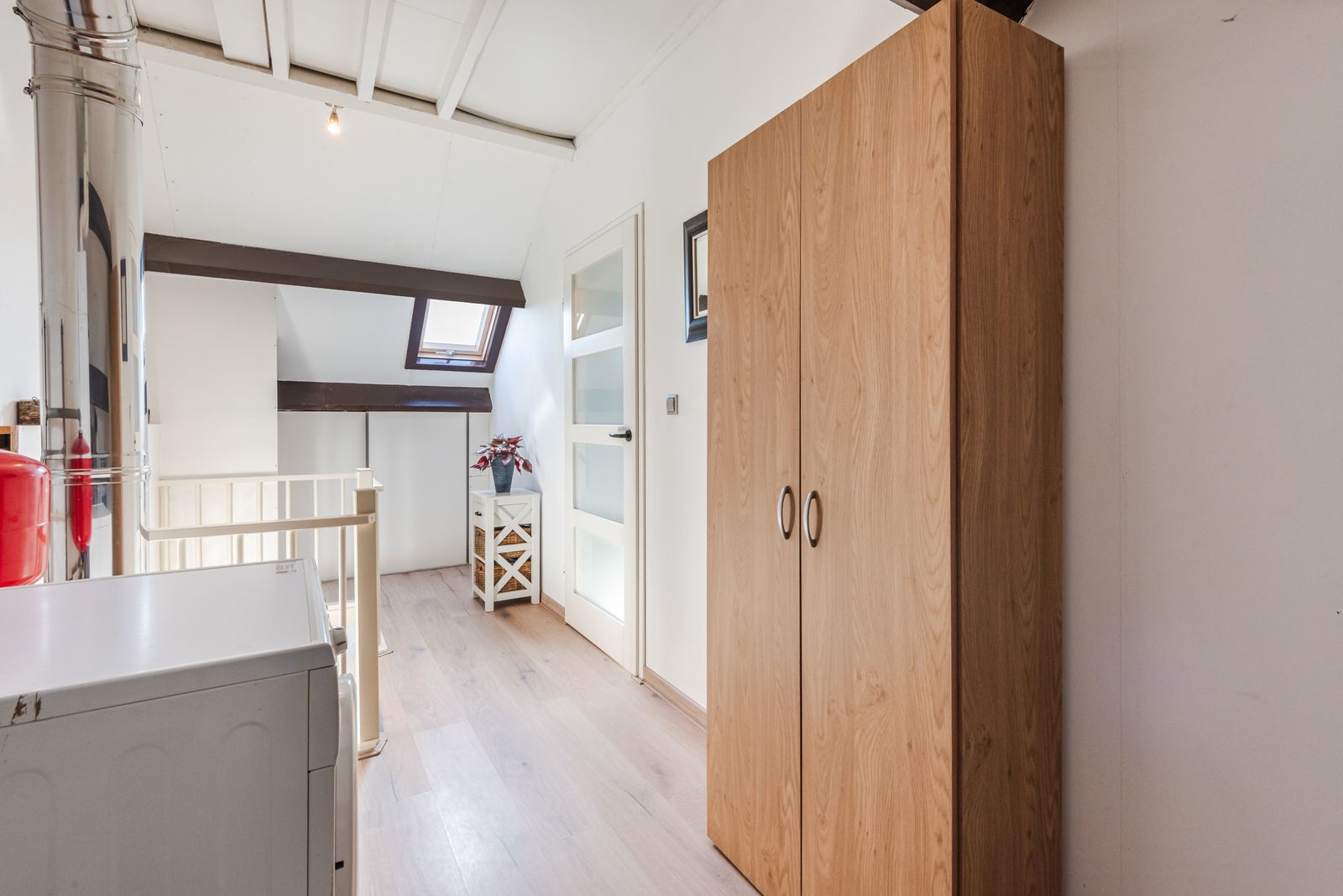 Daarnaast bereikt u hier de ruime vierde slaapkamer, voorzien van twee dakramen waardoor deze kamer heerlijk licht is. Tevens is extra bergruimte boven de slaapkamer gerealiseerd, ideaal voor het opbergen van seizoensspullen.