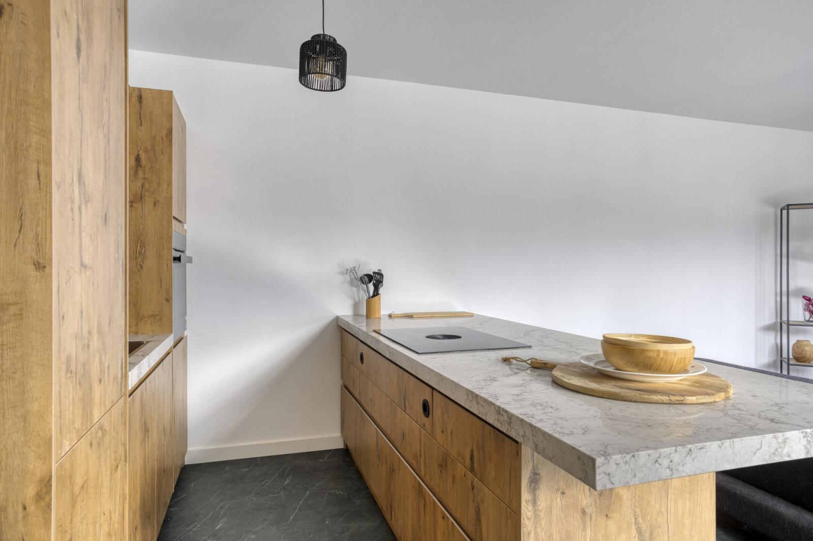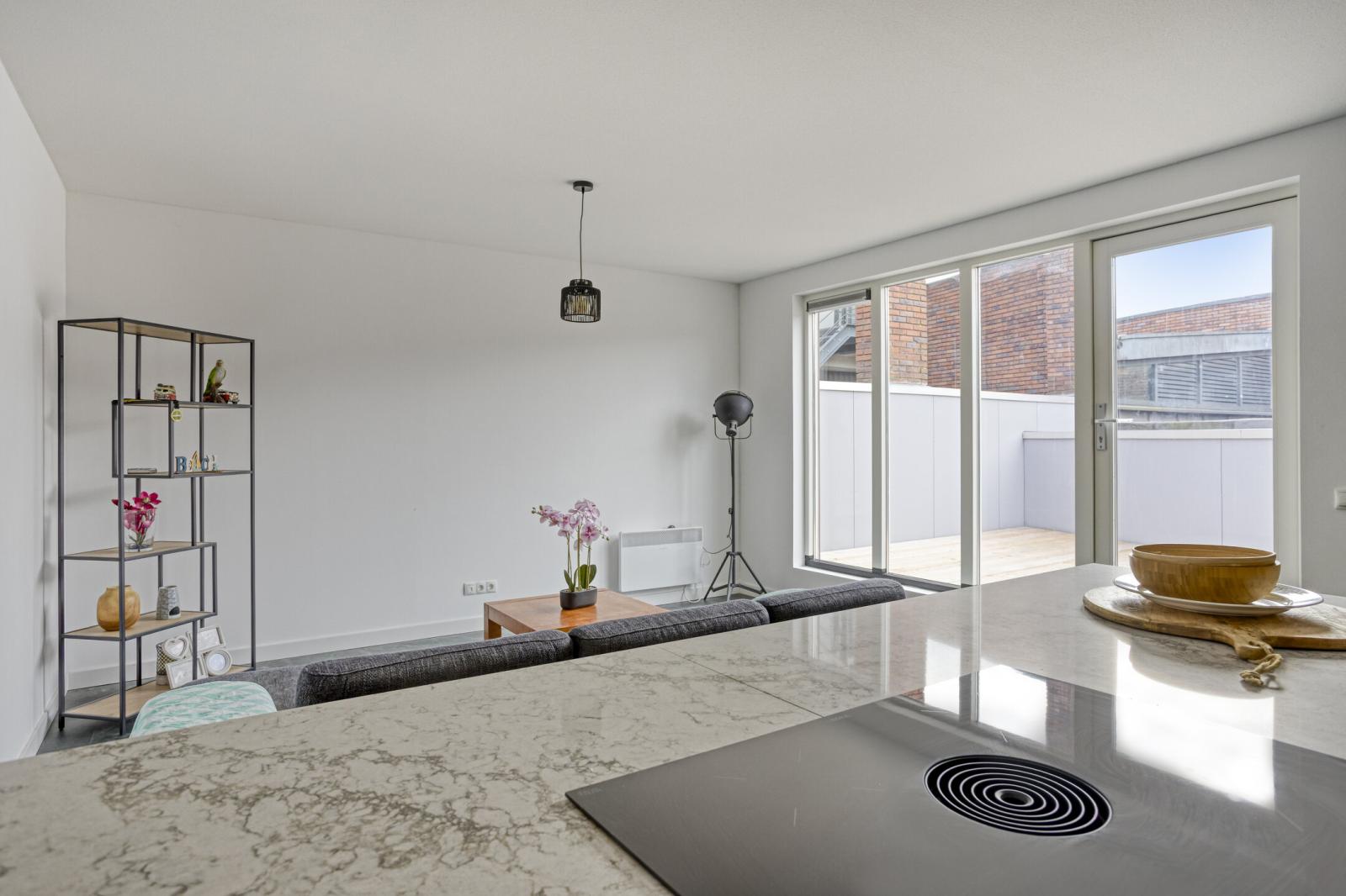 De indeling van het appartement is bijzonder aantrekkelijk. De open woonkamer geeft toegang tot een fantastisch groot dakterras van 23 m², perfect voor het genieten van de buitenlucht, een gezellig samenzijn of gewoon een plek om te ontspannen met een goed boek. De moderne afwerking en het gebruik van hoogwaardige materialen zorgen ervoor dat je hier direct kunt intrekken zonder zorgen over verbouwingen of renovaties.