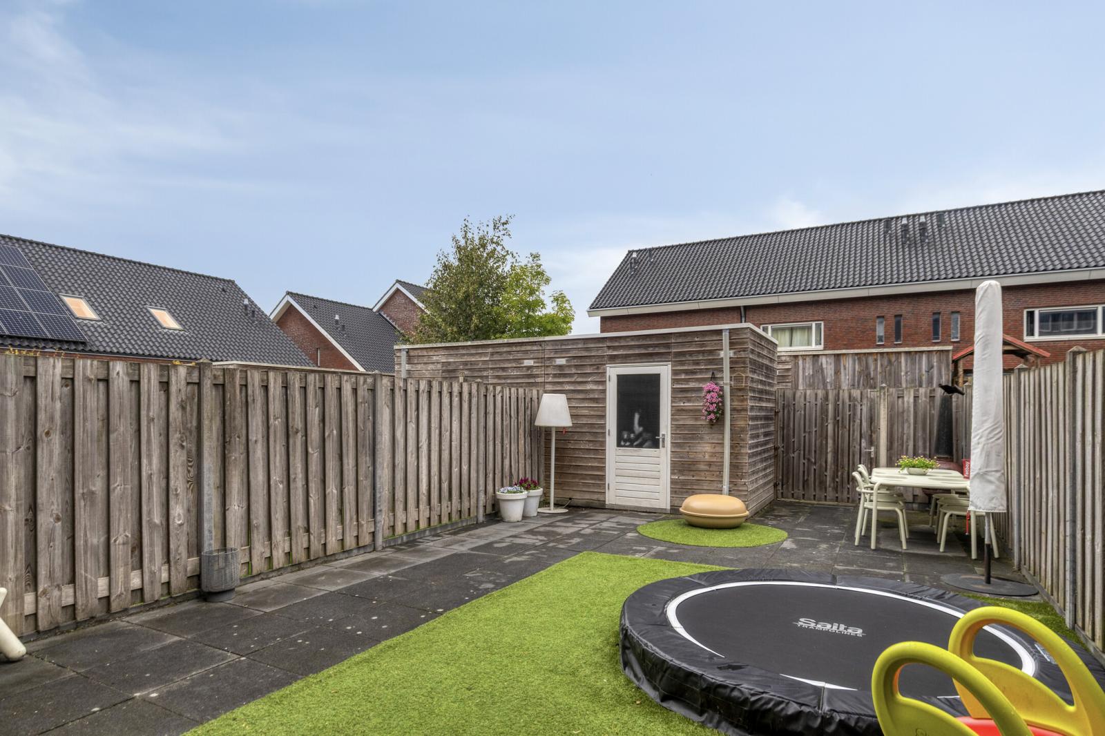De achtertuin is op het noordoosten gelegen, fraai en onderhoudsvriendelijk aangelegd en voorzien van een berging achterin de tuin. Hier geniet u in alle rust van de ochtendzon.