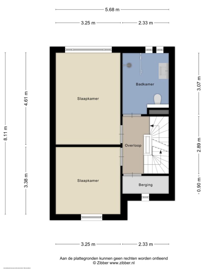 Via een vaste trap bereikt u de tweede verdieping met nog eens twee slaapkamers en een technische ruimte. Hier bevinden zich ook de witgoedaansluitingen en de cv-installatie. De slaapkamers zijn circa 10 m2 en 7 m2.