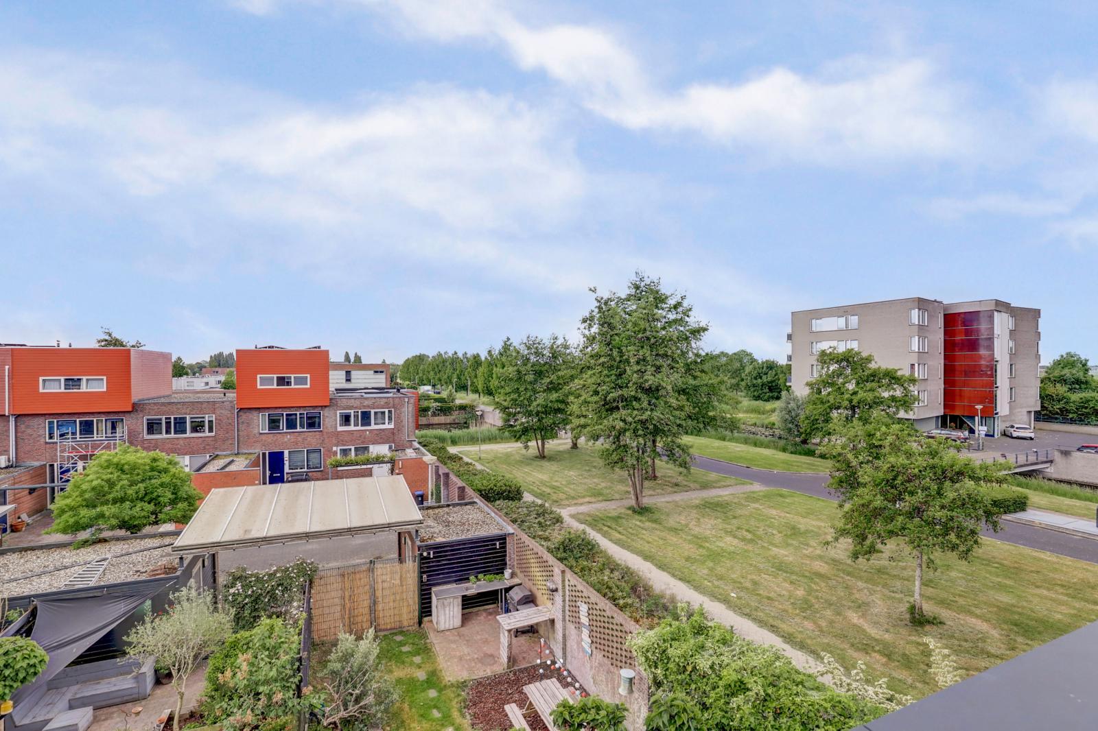 De woning ligt aan een rustige straat met uitzicht op een brede groenstrook, wandelpad en waterpartij. In de directe omgeving zijn alle voorzieningen aanwezig: basisscholen, kinderopvang, supermarkt, eetgelegenheden, een gezondheidscentrum _ alles op loop- of fietsafstand. Voor recreatie kun je terecht in het Veldhuizerpark of het Kloosterpark, of maak een mooie (fiets) tocht richting het Maximapark of het historische Kasteel De Haar. En wat dacht je van suppen op de Leidsche Rijn!